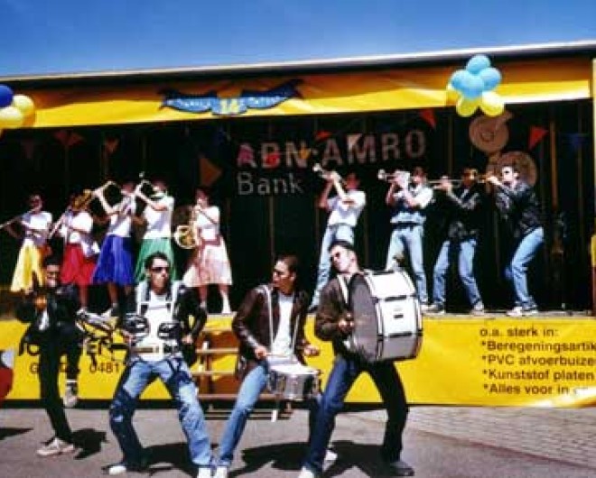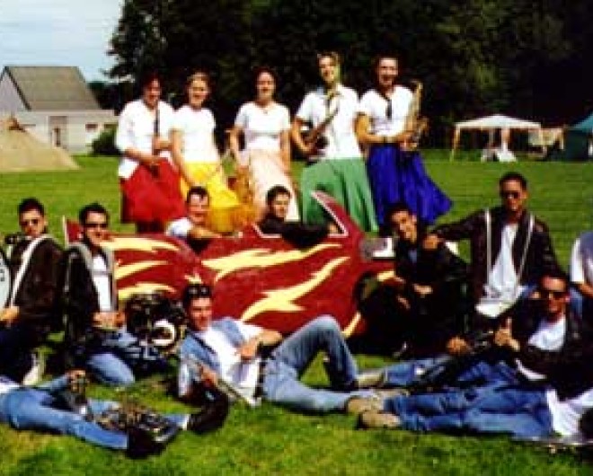 In 2000 werd voor het eerst een ‘show’ ingestudeerd: Grease. Doordat er inmiddels ook een trombone en een bariton waren durfden we het aan om mee te doen aan de wedstrijdklasse. We eindigden in het rechterrijtje om in voetbaltermen te spreken, maar de juryrapporten waren vol lof dat we dit door moesten zetten voor de toekomst.