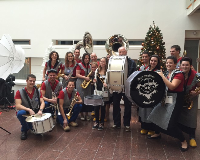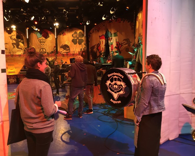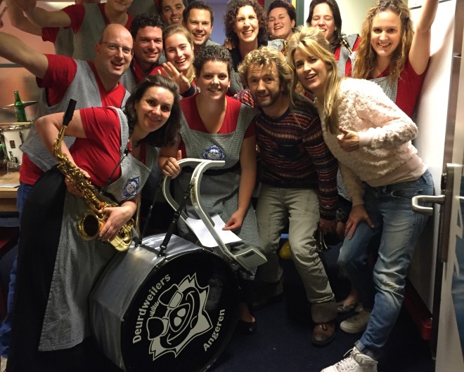 En Alles kan in de BZT Show! Zelfs een Dweilorkest! Wij waren opgetrommeld omdat Mijke een wens had ingestuurd voor Opa Rob. Die had als grote wens om eens op een grote trom te slaan. En laten wij nou net heel toevallig twee grote trommen bij ons hebben!