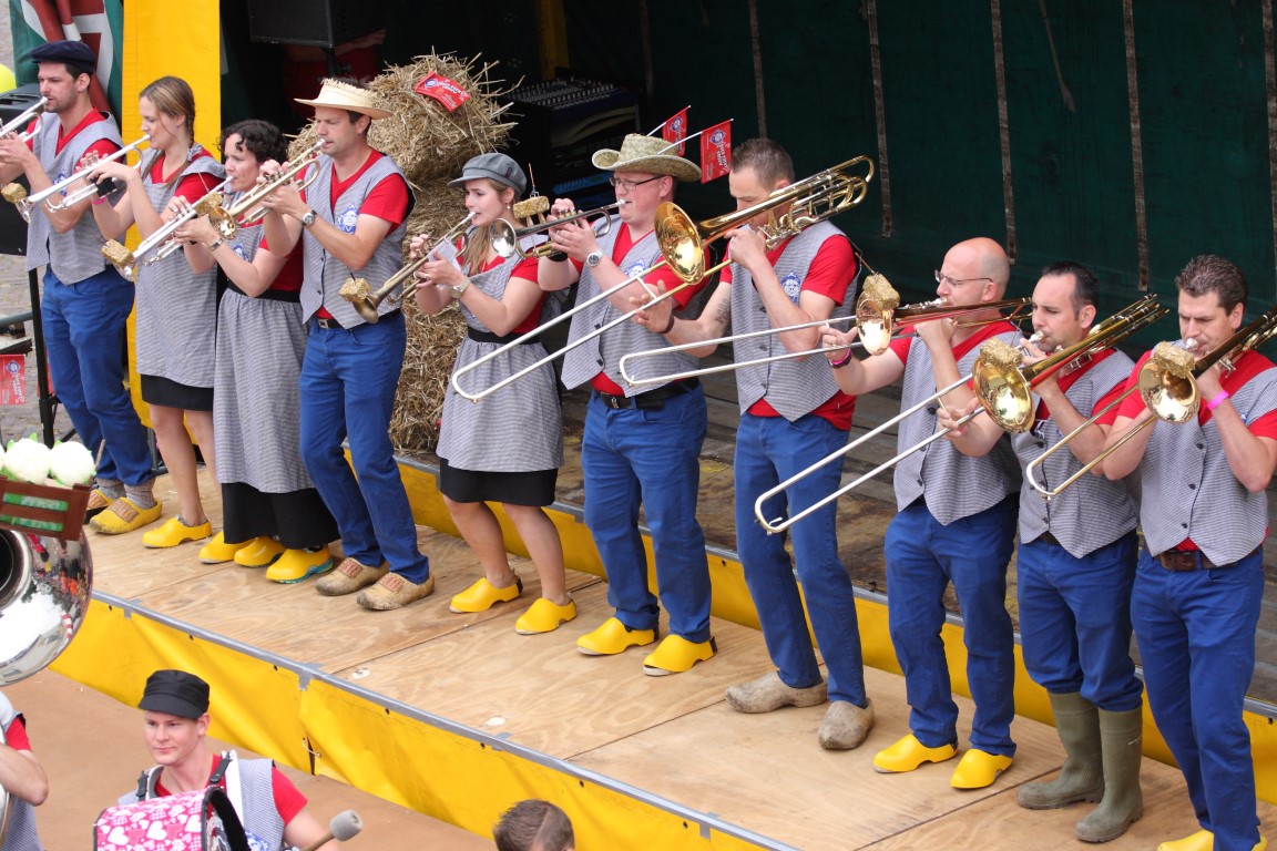 Daar gingen we dan. Gewapend met een platte kar vol hooibalen, confetticanonnen en geluidsapparatuur op naar ons eerste optreden. Om 12.15 werden onze boeren voor de eerste keer voorgesteld door onze eigen Lizan als Yvonne Jaspers. Boer Jaap bleek de meeste brieven te hebben en ging door voor de date met de vrouwen.