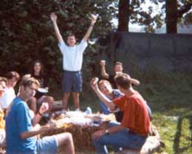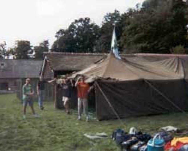 Na het leuke optreden in 1998 waren we wederom gevraagd voor het Ballonfiesta in Barneveld, maar nu voor meerdere avonden. In overleg met de organisatie mochten we onze legertent opzetten vlakbij het terrein. Wat hebben we gelachen!