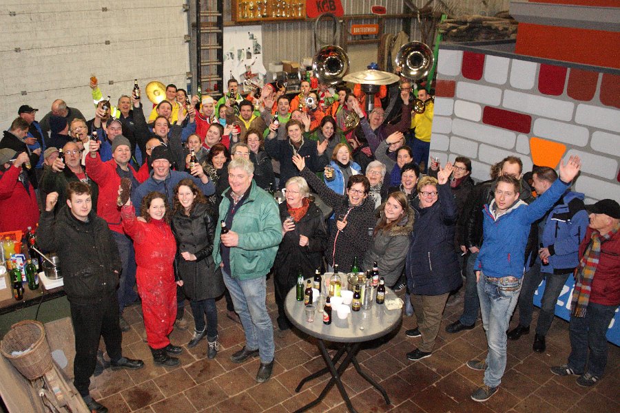 Na een klein dutje, een douchebeurt of gewoon een keer voedzaam eten was iedereen ’s avonds weer verzameld in het Dorpshuis om samen met de Narrenpoel af te sluiten. Er waren veel bouwgroepen aanwezig om te horen wie de publieksprijs zou winnen en ook de carnavalsverenigingen uit Doornenburg en Valburg (whohohohoho!) waren er.