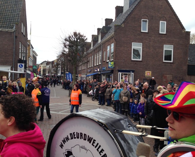 Rond 13 uur werden de auto’s volgeladen en reden we naar Wageningen. Gelukkig hadden ze dit jaar wel het sleuteltje van de ‘paaltjes’ zodat we met de hele stoet weer door het centrum konden lopen. Zoals elk jaar lekker druk langs de kant en lekker gespeeld.