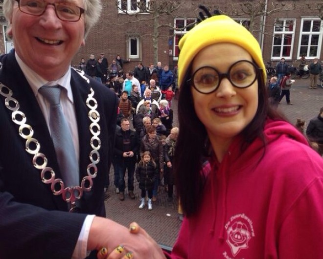 Na het woordje van de burgemeester die de sleutel overdroeg aan de stadsprint even wat gedronken in het gemeentehuis en daarna nog wat stemmingsmuziek gespeeld. Daarna weer snel naar huis om te eten en richting het bouwersbal te gaan (voor de meesten dan)
