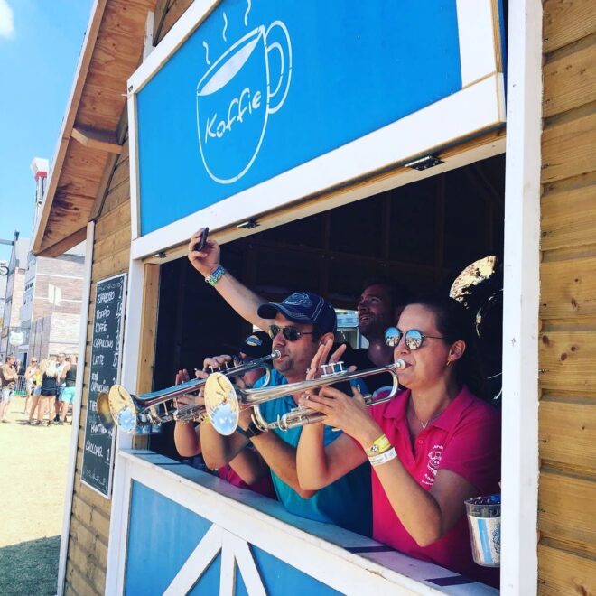 Hoogtepunt? Will and the People in een rijdende vrachtwagen over het campingterrein! Je weet wel, van “lion in the morning sun”.