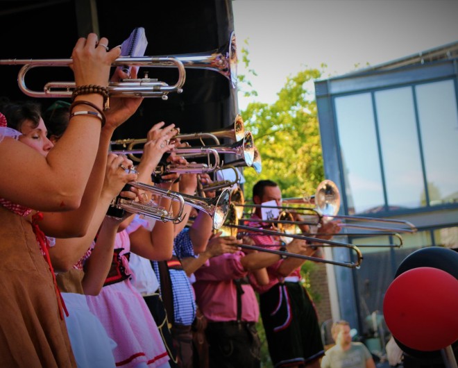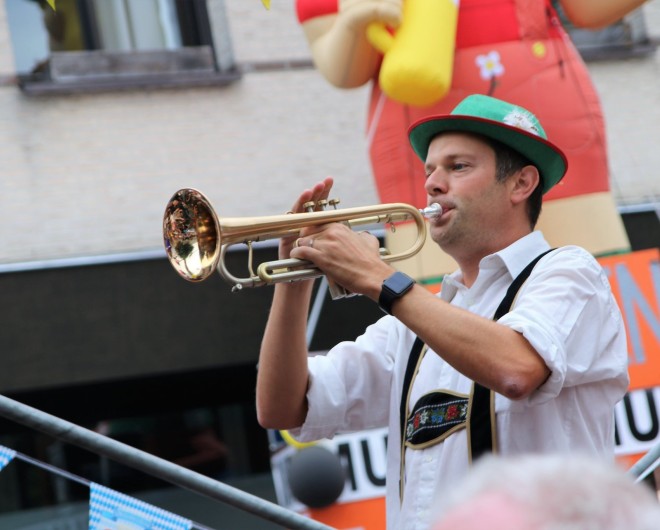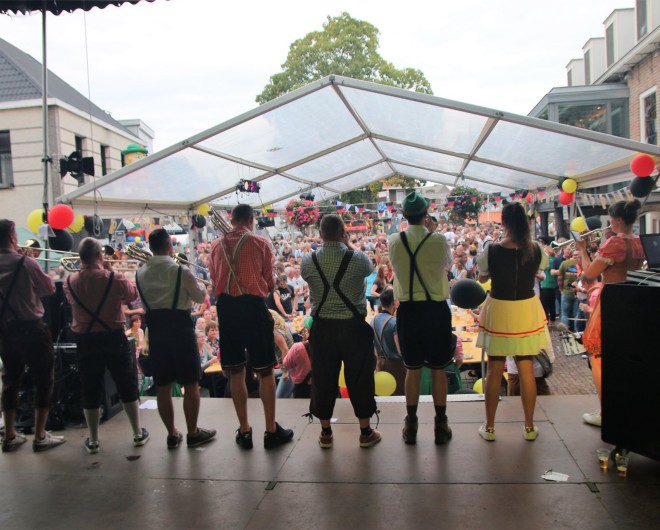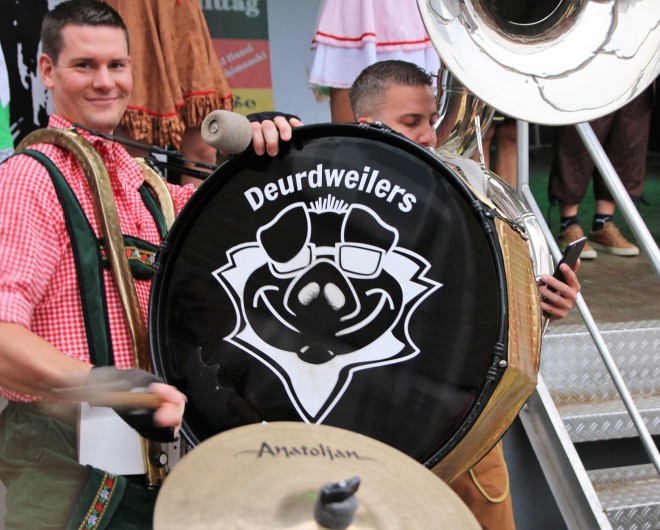 Het is de vijftiende editie van de Deutsche Mittag, maar de eerste voor De Deurdweilers. Het personeel van De Buitenpoort heeft zich in Duitse klederdracht gehuld. De feesttent is versierd met bloemen, Duitse vlaggetjes en trio’s van ballonnen in de kleuren van de Duitse vlag. Bij het karretje waar je broodjes worst met Sauerkraut kunt kopen staan De Deurdweilers te popelen om het podium te betreden.