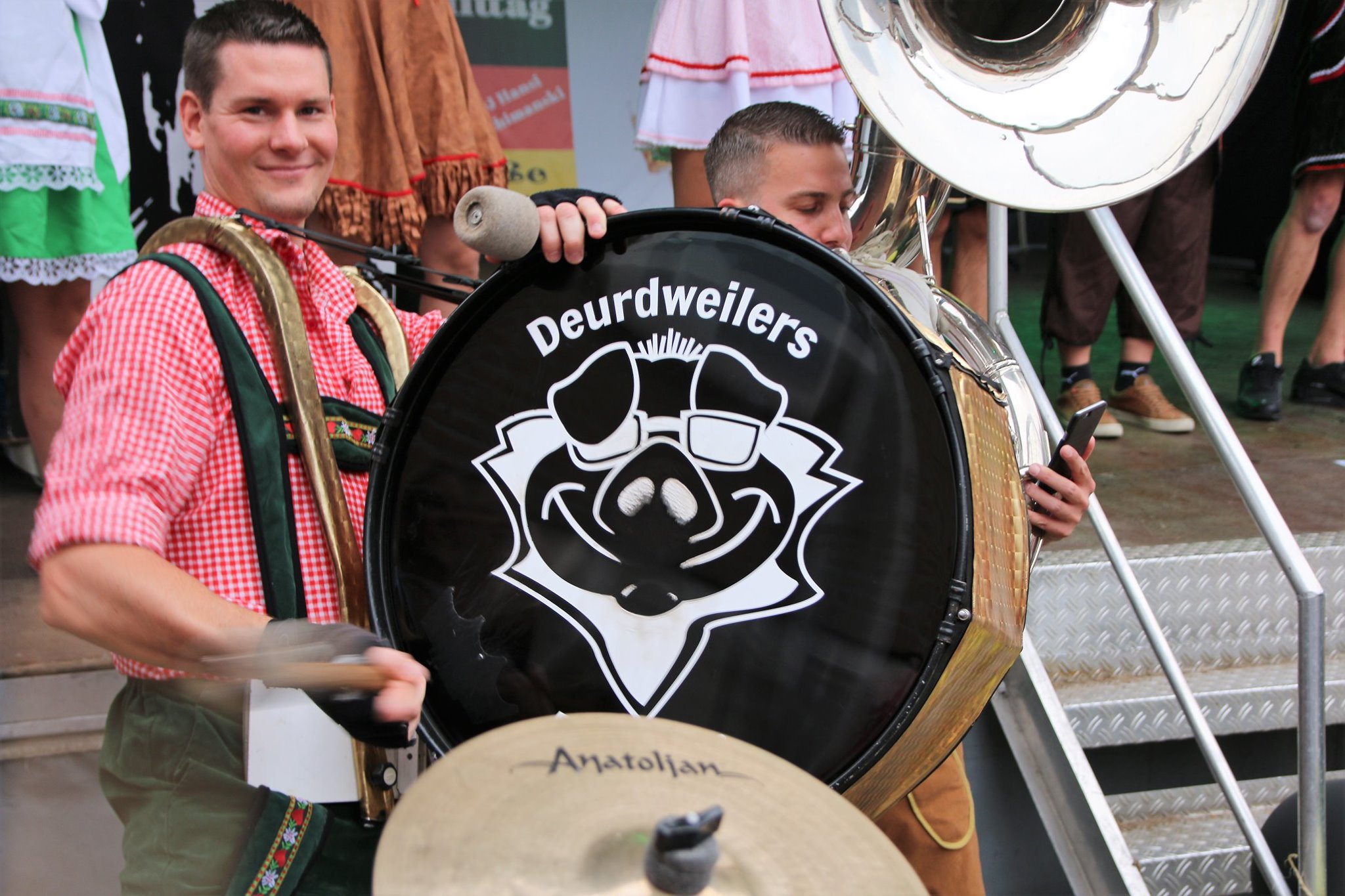 Het is de vijftiende editie van de Deutsche Mittag, maar de eerste voor De Deurdweilers. Het personeel van De Buitenpoort heeft zich in Duitse klederdracht gehuld. De feesttent is versierd met bloemen, Duitse vlaggetjes en trio’s van ballonnen in de kleuren van de Duitse vlag. Bij het karretje waar je broodjes worst met Sauerkraut kunt kopen staan De Deurdweilers te popelen om het podium te betreden.
