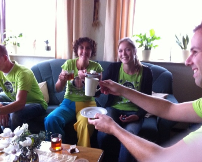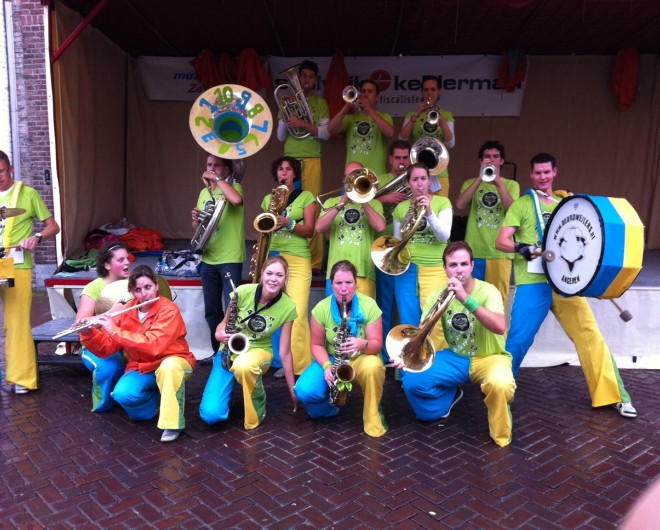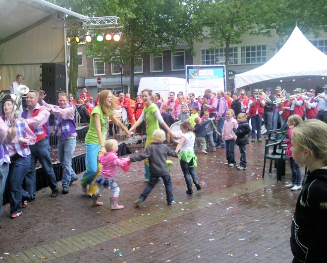 Ondanks de regen was het nog best een leuk dagje. En zoals we al eerder vermelden was het erg plezierig dat de dag droog eindigde. Na ons laatste optreden speelden we nog Nee Nee Geen Arreslee samen met de Retteketet Showband wat ook erg leuk was. Noortje was vandaag jarig en dat heeft ze geweten. Ze werd hoofdgast en mocht in een stoel op het podium zitten. Nog bedankt voor de lekkere cake met slagroom Noortje!