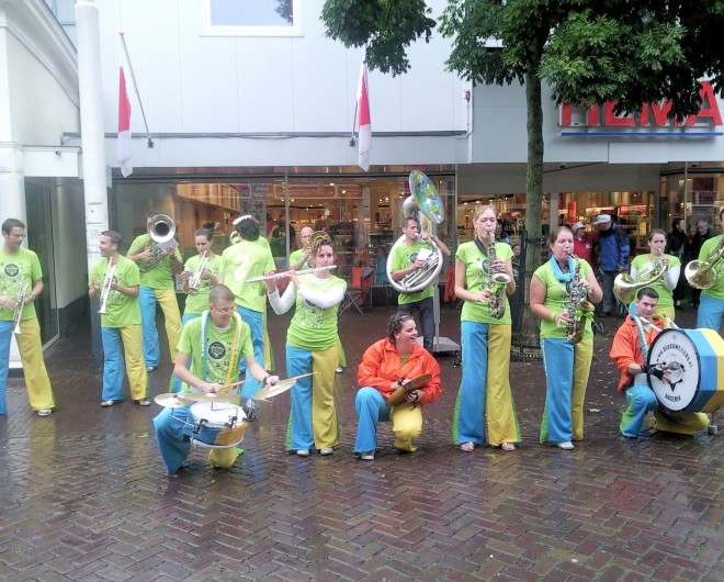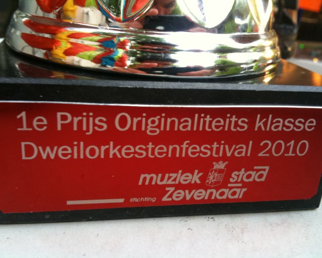 Vandaag naar Zevenaar geweest voor een dweildag. We komen hier al vaker en deze dweildag staat meestal garant voor bomvolle terrassen en een lekker zonnetje. Behalve vandaag. Het was een regenachtig dagje. Gelukkig was het bij 3 van de 4 optredens nog redelijk droog. De dag eindigde gelukkig met een klein zonnetje na het optreden op het hoofdpodium. En we gingen ook nog eens naar huis met de originaliteitsprijs.