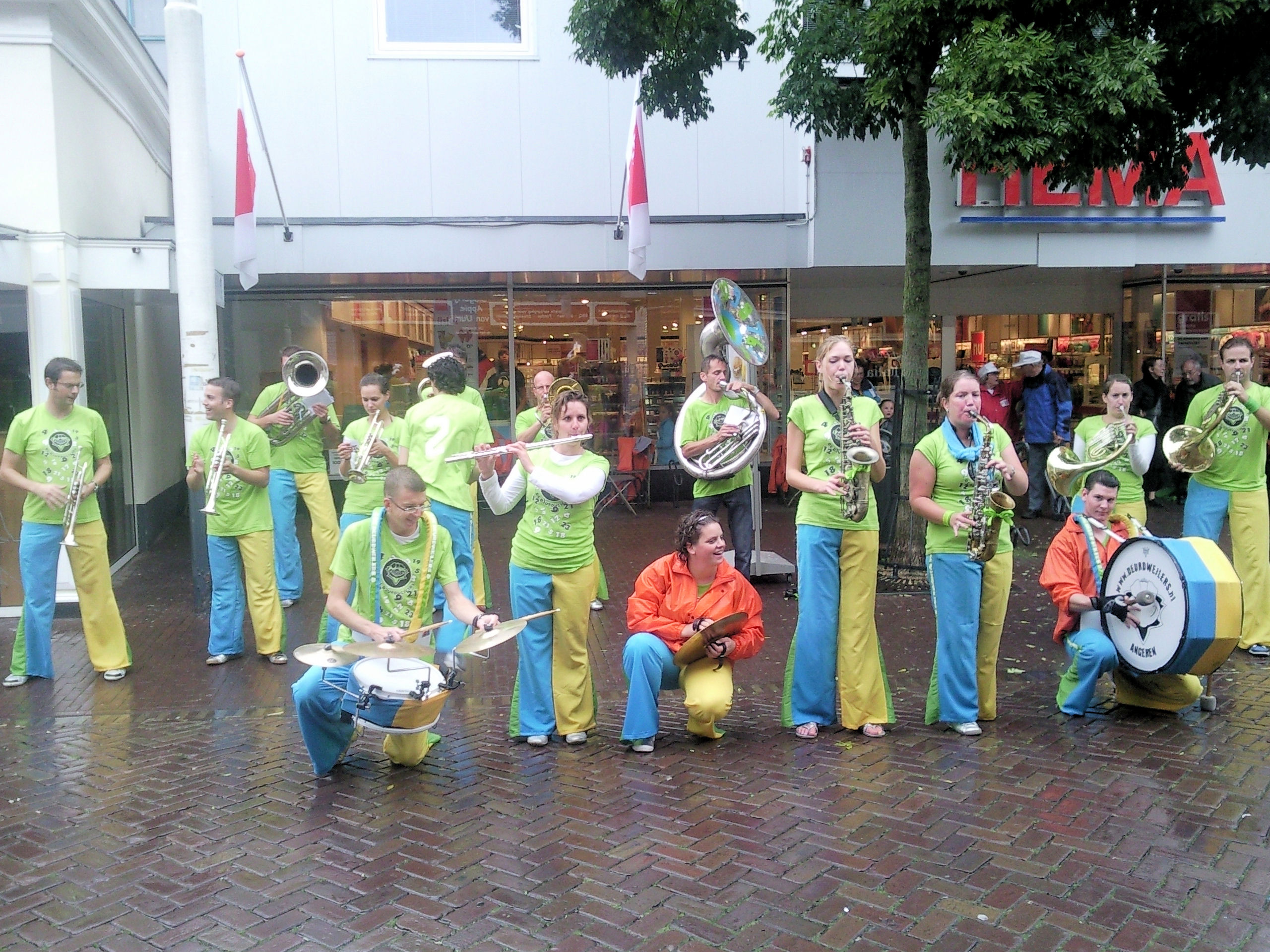 Vandaag naar Zevenaar geweest voor een dweildag. We komen hier al vaker en deze dweildag staat meestal garant voor bomvolle terrassen en een lekker zonnetje. Behalve vandaag. Het was een regenachtig dagje. Gelukkig was het bij 3 van de 4 optredens nog redelijk droog. De dag eindigde gelukkig met een klein zonnetje na het optreden op het hoofdpodium. En we gingen ook nog eens naar huis met de originaliteitsprijs.