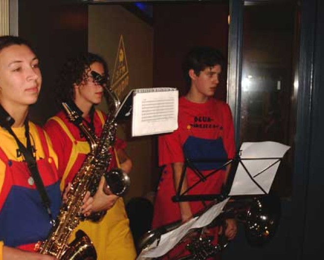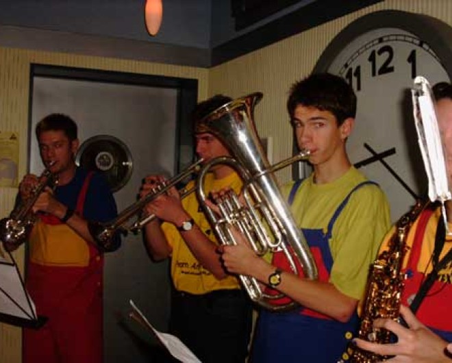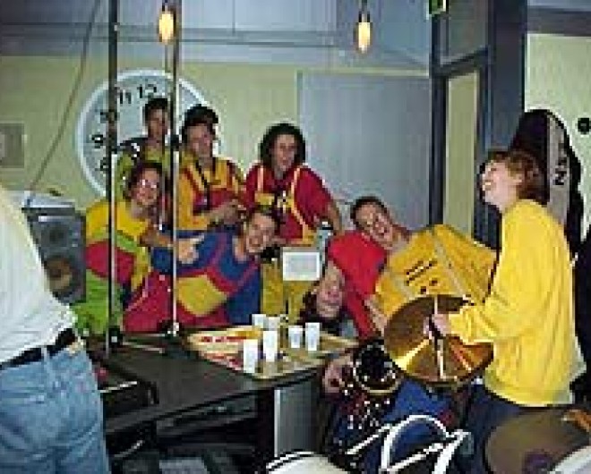 Het eerste radiodebuut van dit dweilorkest was op 19 oktober 2000. LIVE in de Radio3 studiospeelde ze in het populaire programma “Stenders Vroeg” waar dagelijks meer dan een half miljoen mensen naar luisterden. Hier hebben ze een zelfgeschreven polonaiseversie van de nummer 1 hit van Krezip “I Would Stay” gespeeld. Daarna was het een gekkenhuis.
