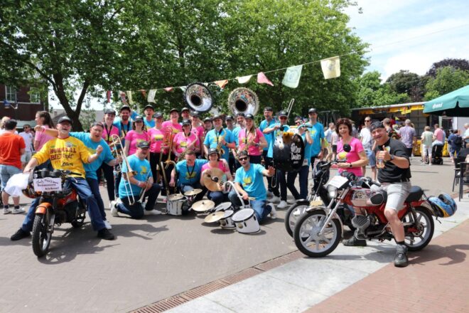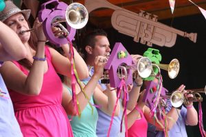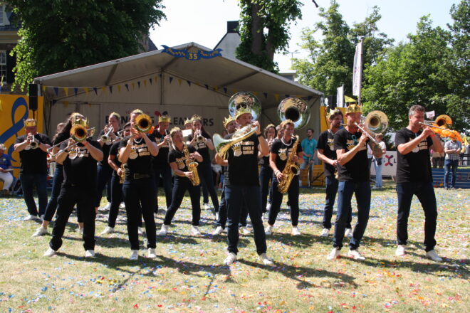 Jaarlijks trekt de bonte stoet aan wandelaars van de Nijmeegse Vierdaagse door onze gemeente en aangezien Nijmegen op een steenworp afstand ligt is menig Deurdweiler daar op de Vierdaagsefeesten te vinden. 100 jaar Vierdaagse vormde een mooie aanleiding voor het thema van 2016. Compleet met gladiolen, wandelschoenen, lange sokken en een rugtasje liep het orkest in formatie door Bemmel heen en marcheerde onder “De Vierdaagsemars” het podium op om vervolgens een medley van “De Wandelclub”, “Walking on Sunshine”, “Bloed Zweet en Blaren” en natuurlijk lekkere meezingers. We eindigden met het kippenvel-arrangement van You’ll never Walk Alone.