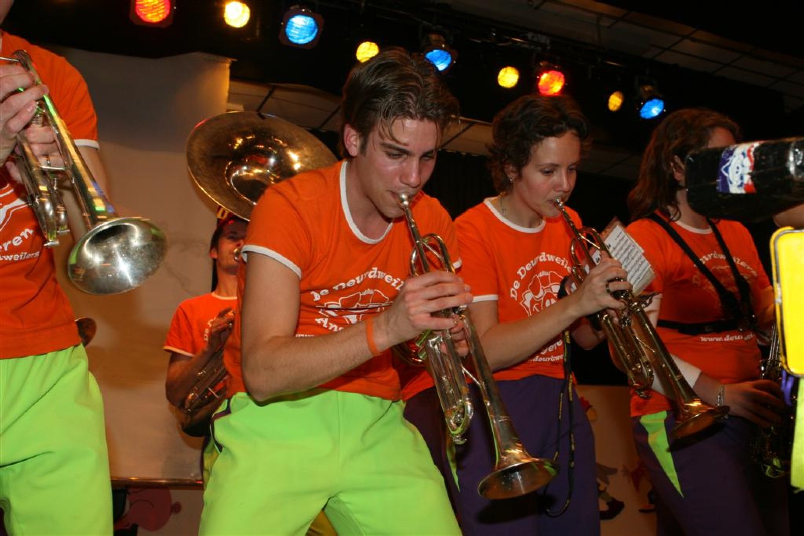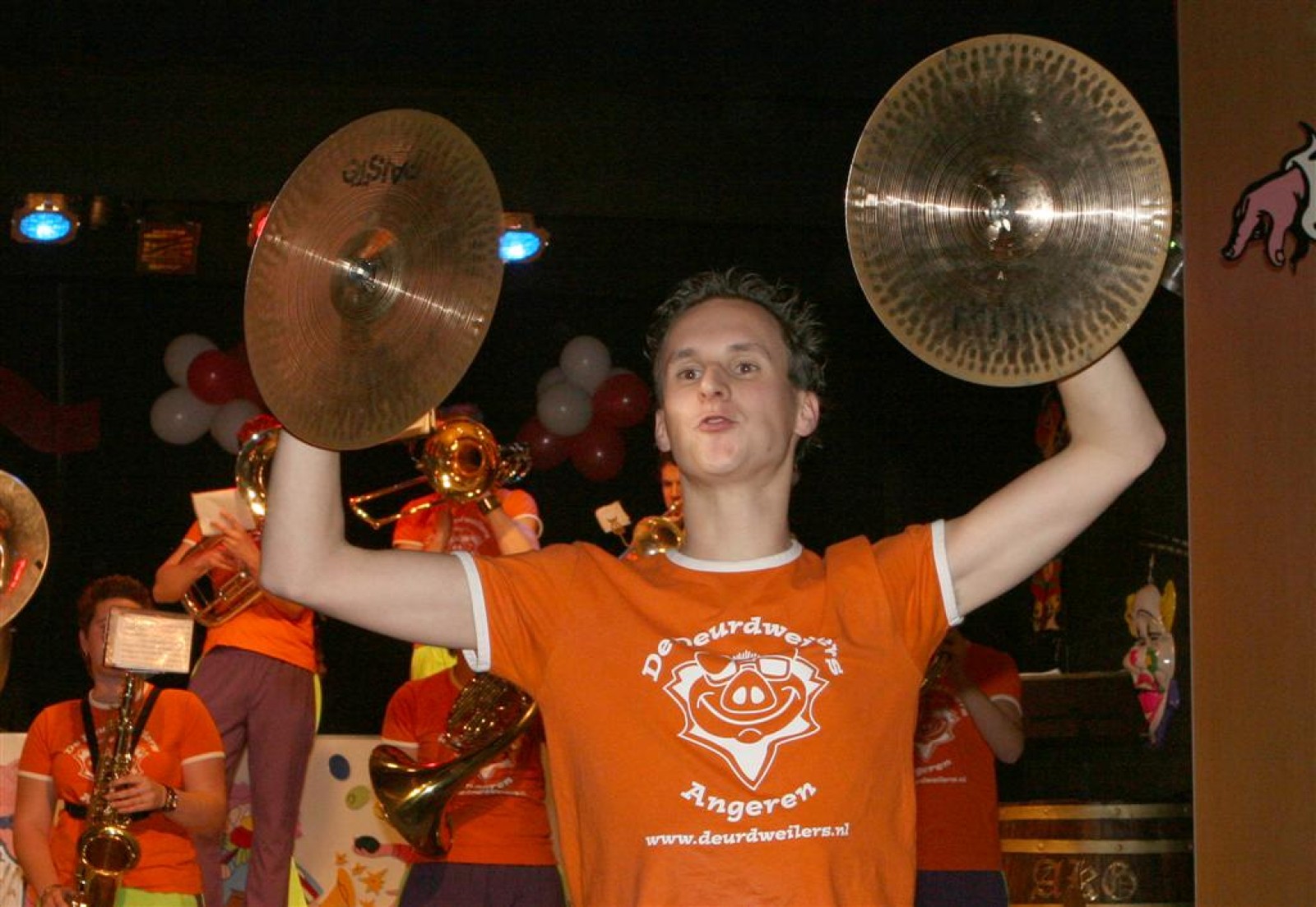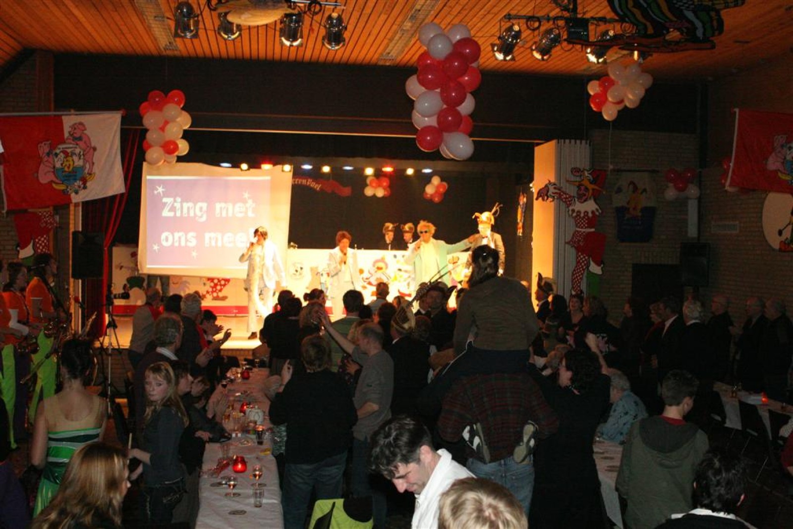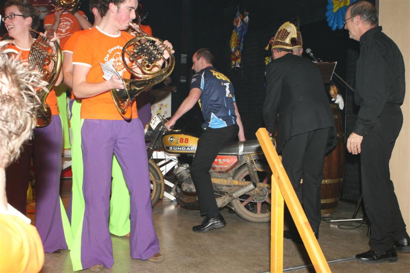 Natuurlijk deden we ook een show-optreden dat ook lekker liep. Allemaal nieuwe nummers en bij het laatste nummer (Brommers Kieken) kwam Marcel Molthoff uit de zaal met zijn Zundapp.