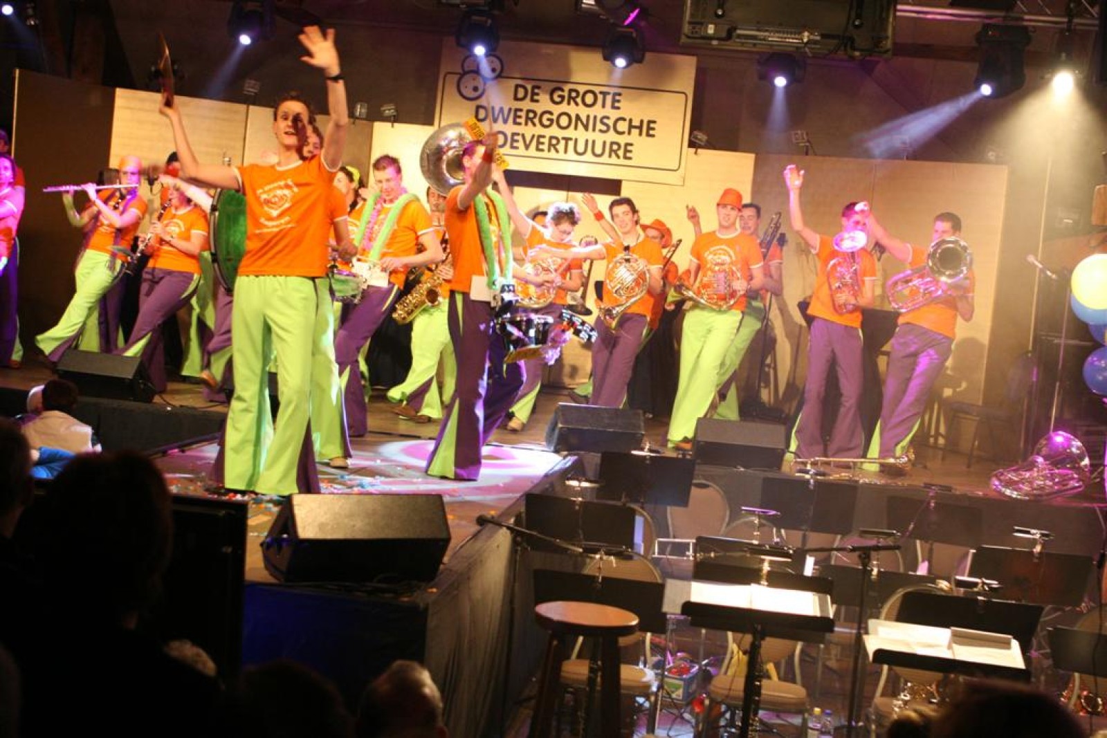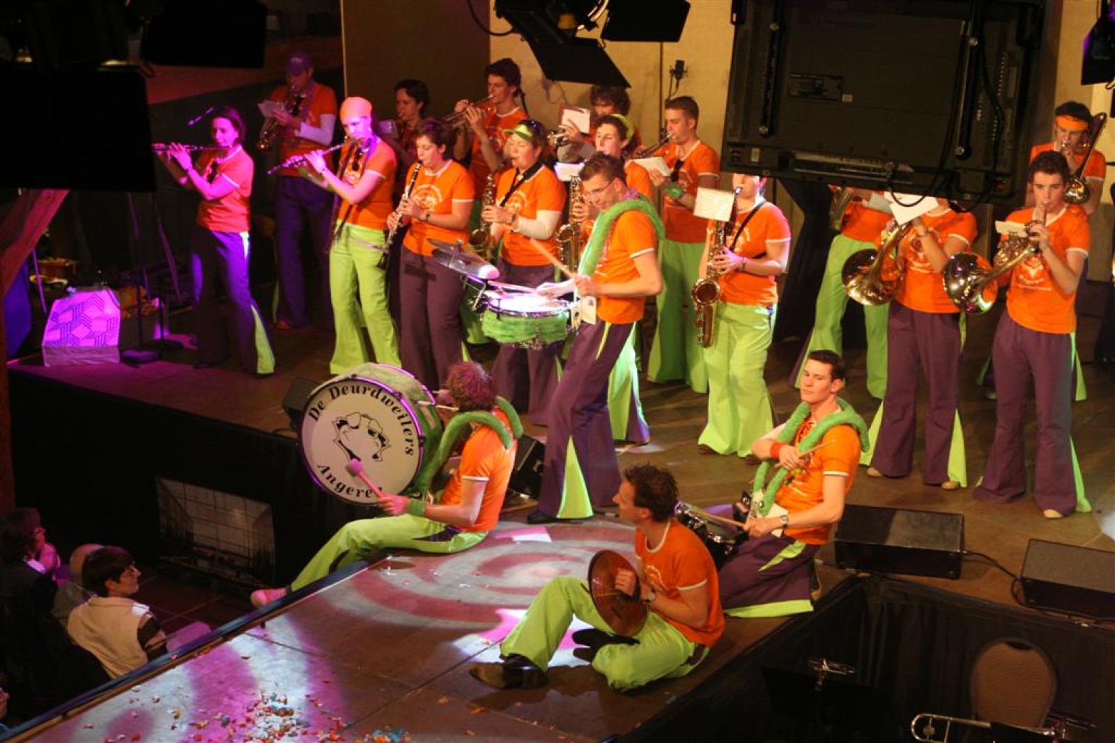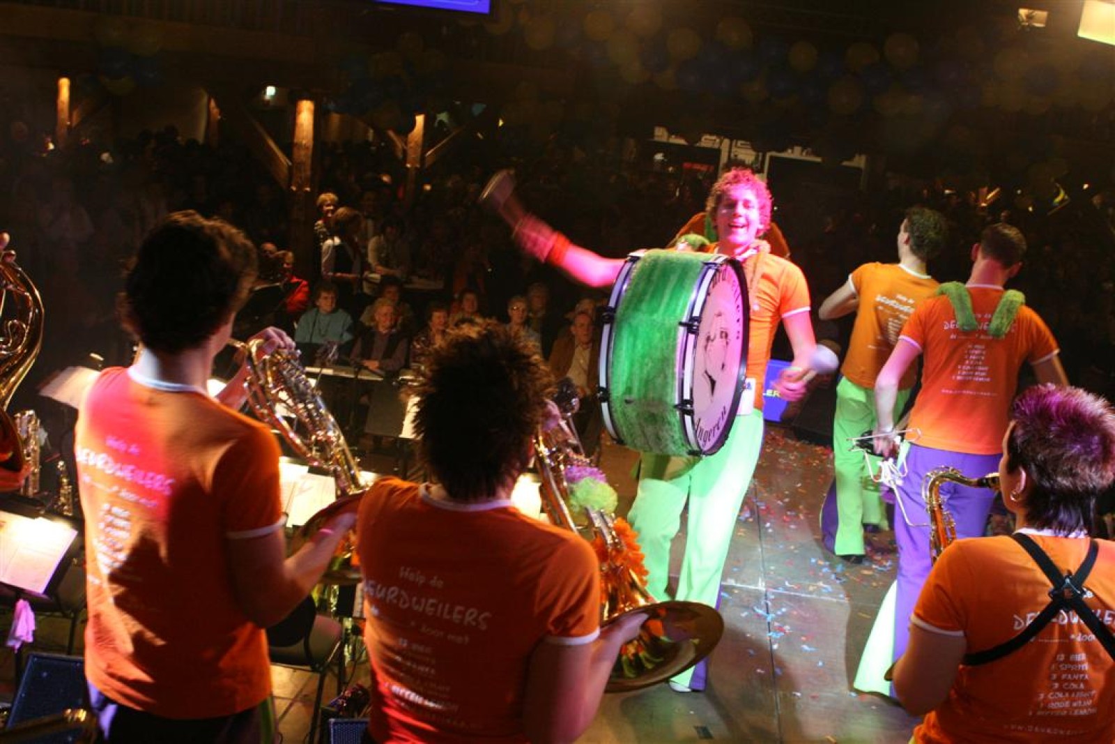 Wat is dat dan? Die Oevertuure? Nou, een groot meezing festijn voor jong en vooral oud waarin alle Nederlandstalige krakers voorbij komen. Met 1100 bezoekers in de zaal een uitverkocht huis….DUS De Deurdweilers waren ingehuurd als opwarmorkest en dat opwarmen is zeker gelukt! Een enorme wave ging door de zaal, de stembanden werden opgewarmd en ook de polonaise werd al gelopen! En dat terwijl de avond op het moment dat wij op de buhne stonden nog errug jong was…