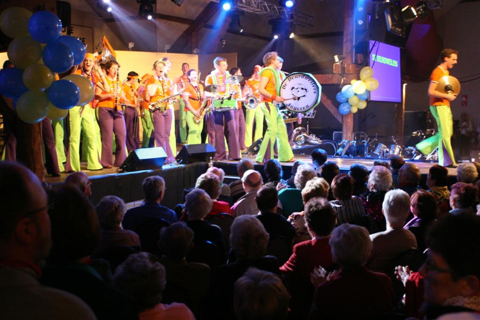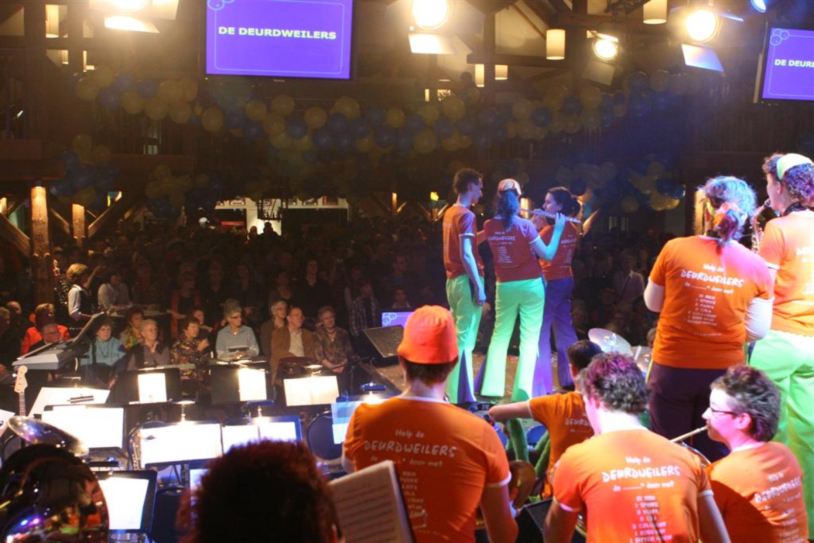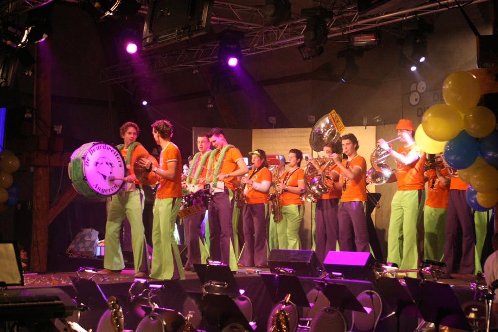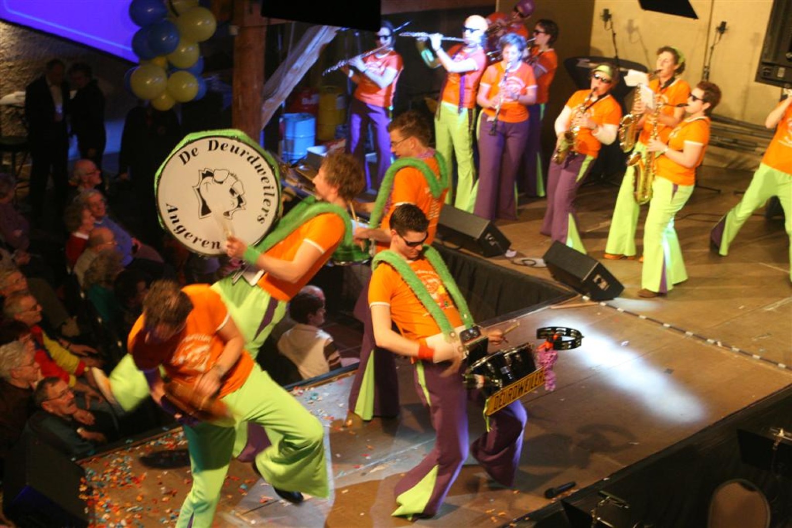 Wat is dat dan? Die Oevertuure? Nou, een groot meezing festijn voor jong en vooral oud waarin alle Nederlandstalige krakers voorbij komen. Met 1100 bezoekers in de zaal een uitverkocht huis….DUS De Deurdweilers waren ingehuurd als opwarmorkest en dat opwarmen is zeker gelukt! Een enorme wave ging door de zaal, de stembanden werden opgewarmd en ook de polonaise werd al gelopen! En dat terwijl de avond op het moment dat wij op de buhne stonden nog errug jong was…