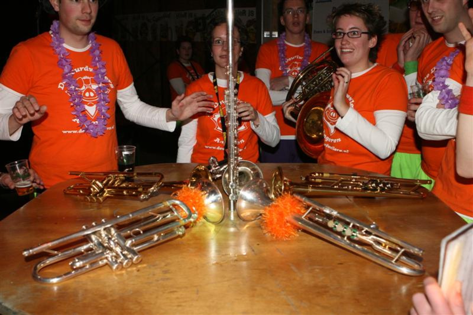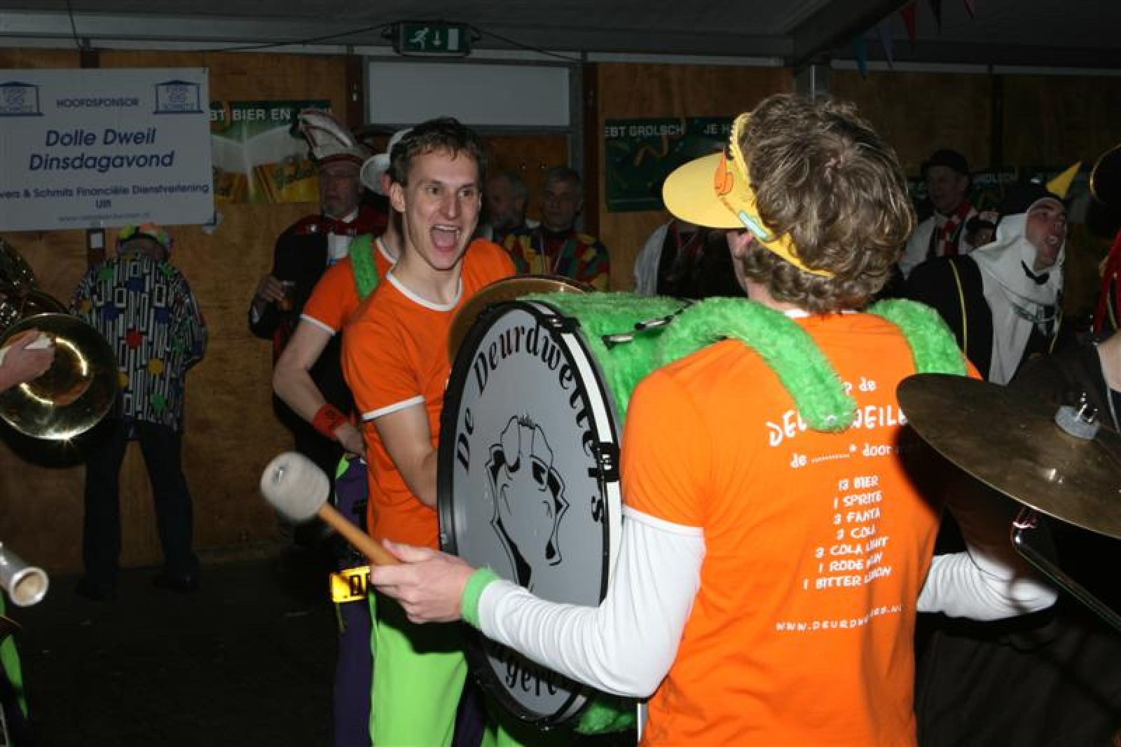 Naast De Deurdweilers waren hier ook de orkesten Alarmfase3, Bar Wah, De Duitekluiters en Over de Rooie aanwezig. Om 00:15 gingen in Ulft de steken af en werd het Wilhelmus gespeeld. Op de weg terug herinnerden we ons de uitnodiging van Prins Berry om nog even te komen ‘afsluiten’ dus voorzichtig werd langs hun huis gereden of er nog licht brandde… en warempel. Dus zo zaten we even later lekker aan de frikandellen en koffie samen met nog een tiental Narrenpoelers.