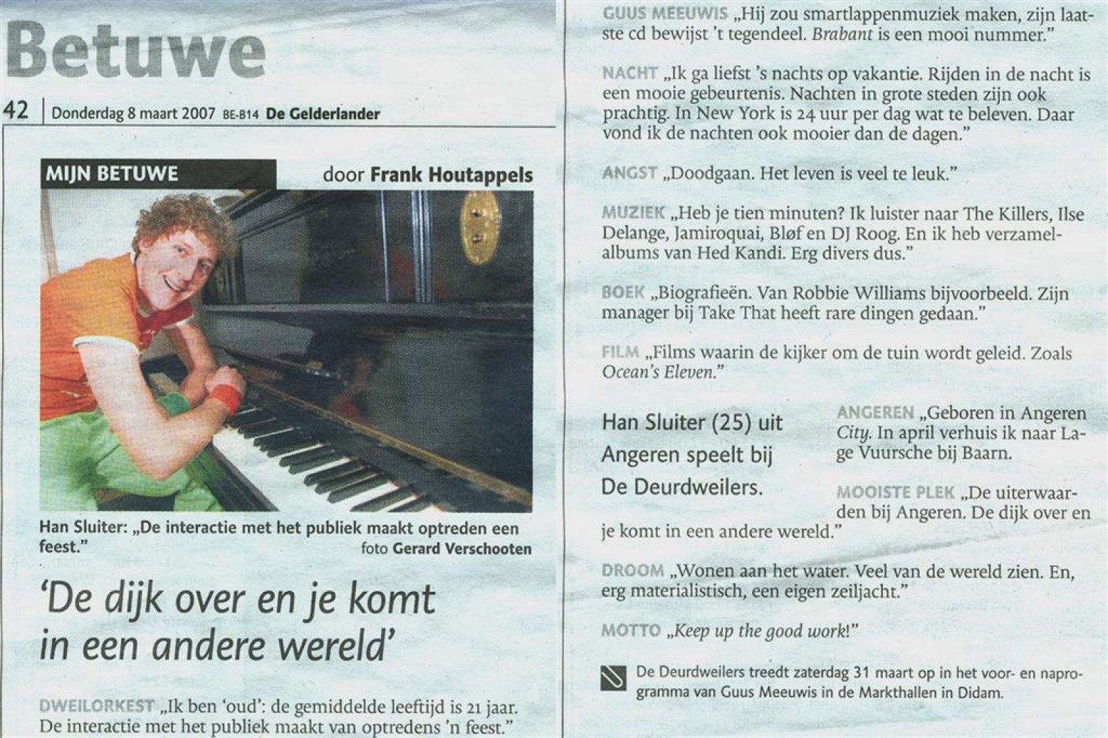 In de rubriek Mijn Betuwe mocht hij reageren op een aantal trefwoorden als Dweilorkest, Guus Meeuwis, Nacht (Het is een nacht…) en Angst (Geef mij je angst…). Ook vroeg journalist Frank Houtappels hem naar het mooiste plekje in de Betuwe.