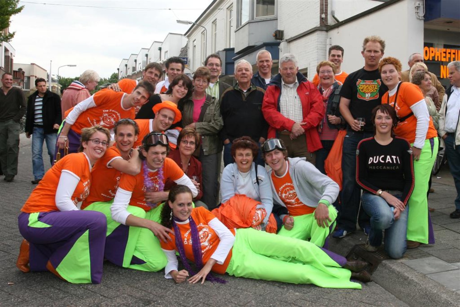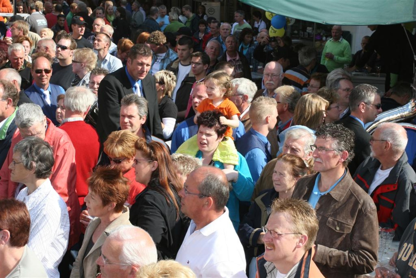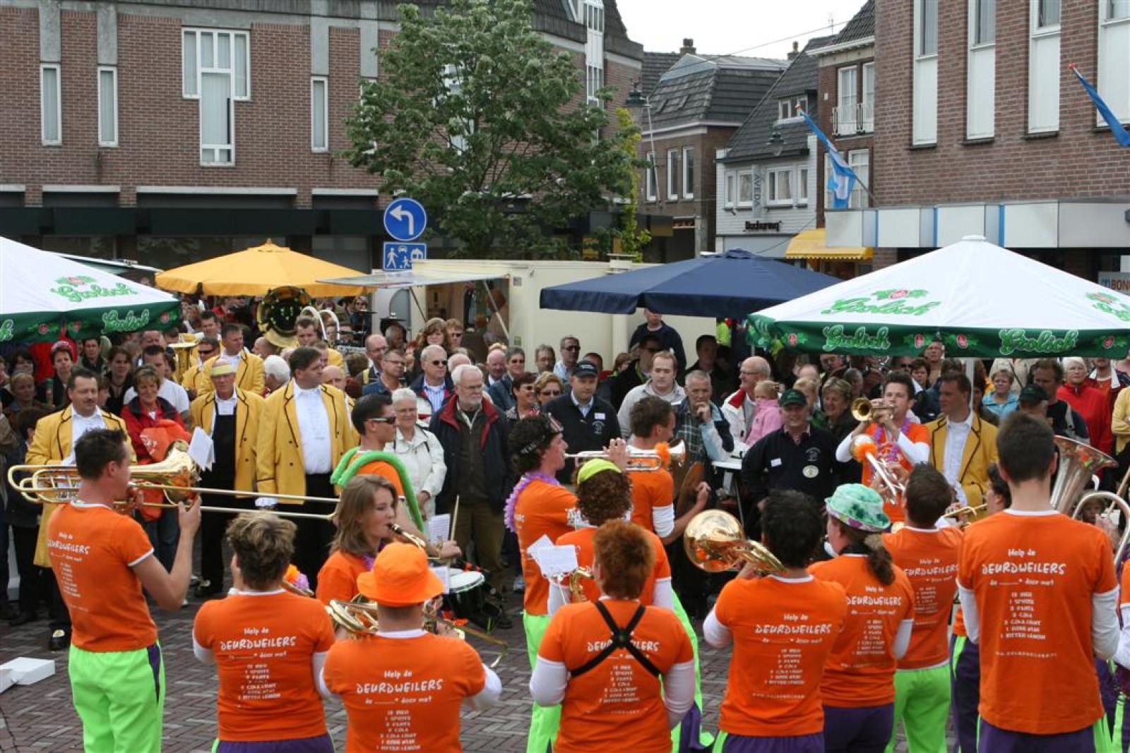Na dit optreden lopen we gauw richting de Markt. Met moeite komen we de menigte door. Tijdens het optreden staan we een stuk compacter en hierdoor komen we veel beter uit volgens een paar trouwe fans. Het publiek is hier enthousiast en dat merk je ook gelijk aan ons. We gaan er weer flink tegenaan en springen en dansen tot we er bijna bij neervallen.