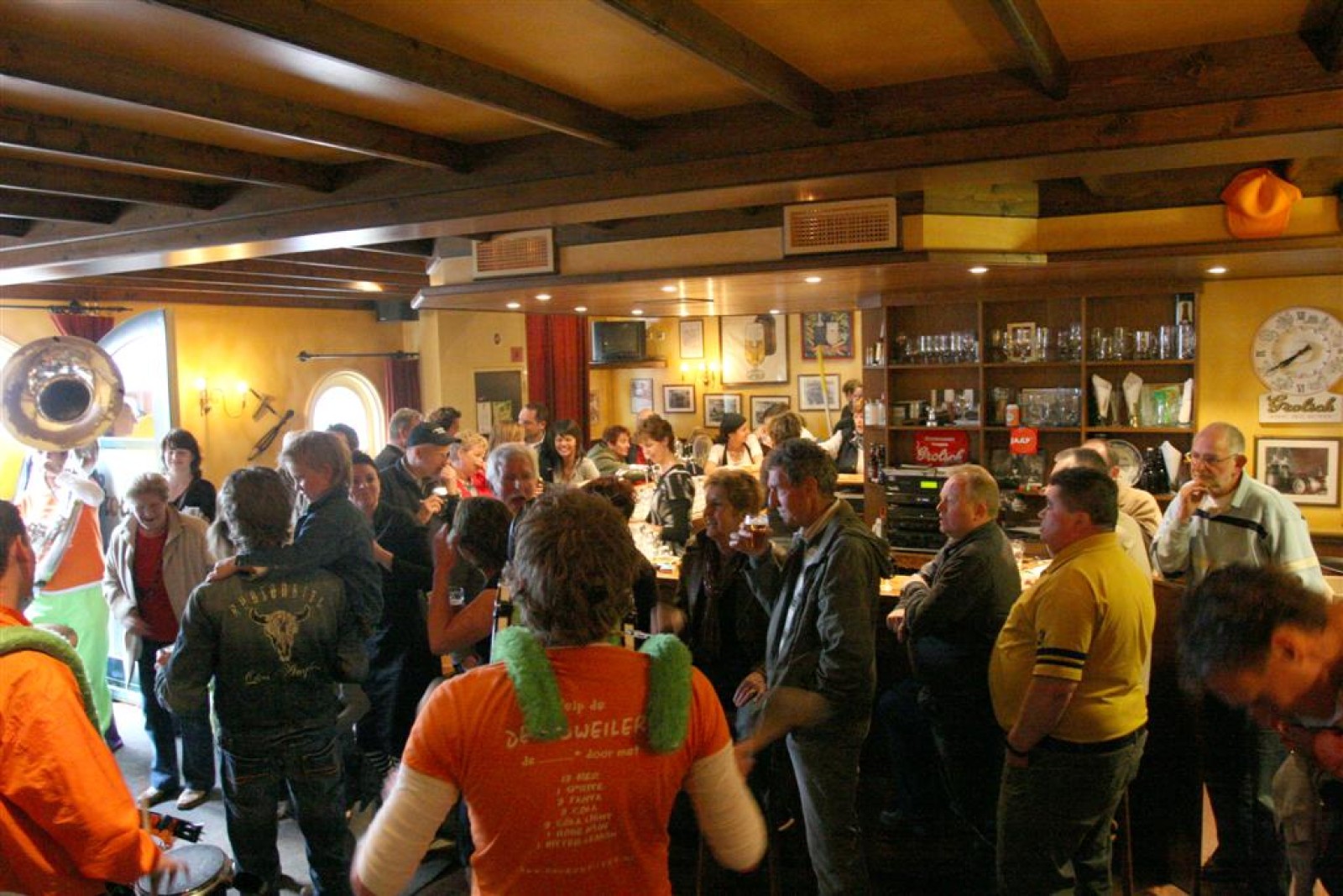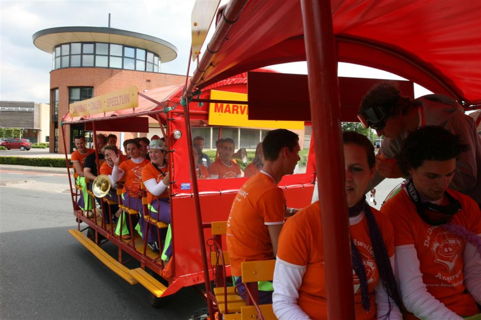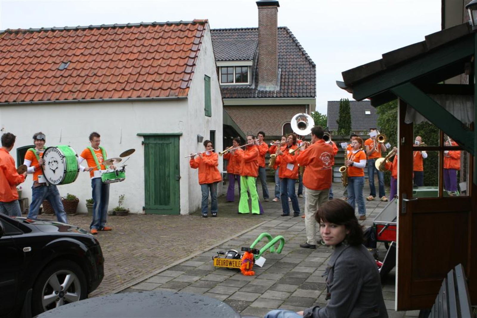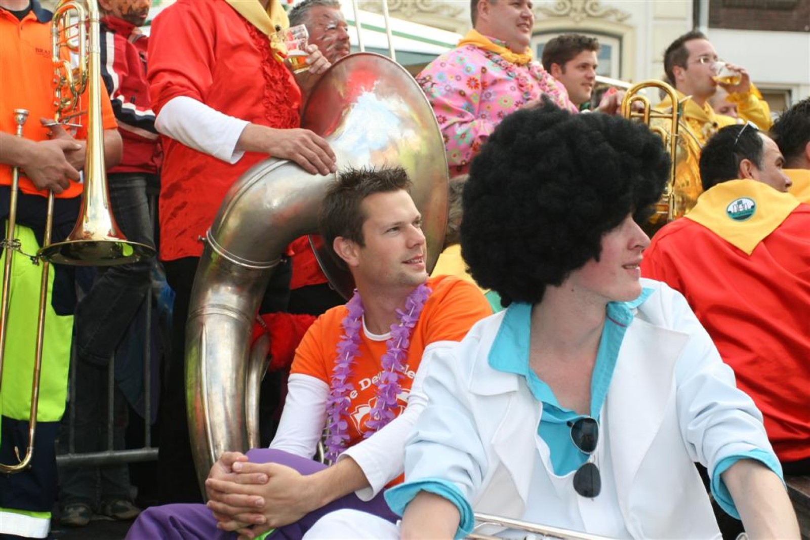 De eerste fans worden gespot en we stemmen 2x. Waarom twee keer? Een keer om straks niet vals van start te gaan en nog één keer om te bepalen welke liedjes we gaan spelen. We dansen nog even met onze voorgangers mee voor de gezelligheid en om 13.30 gaan we van start. Gelukkig gooien onze trouwe meegereisde fans af en toe de handen in de lucht. Al met al ging het best goed, maar er zijn nog wel wat verbeterpuntjes.