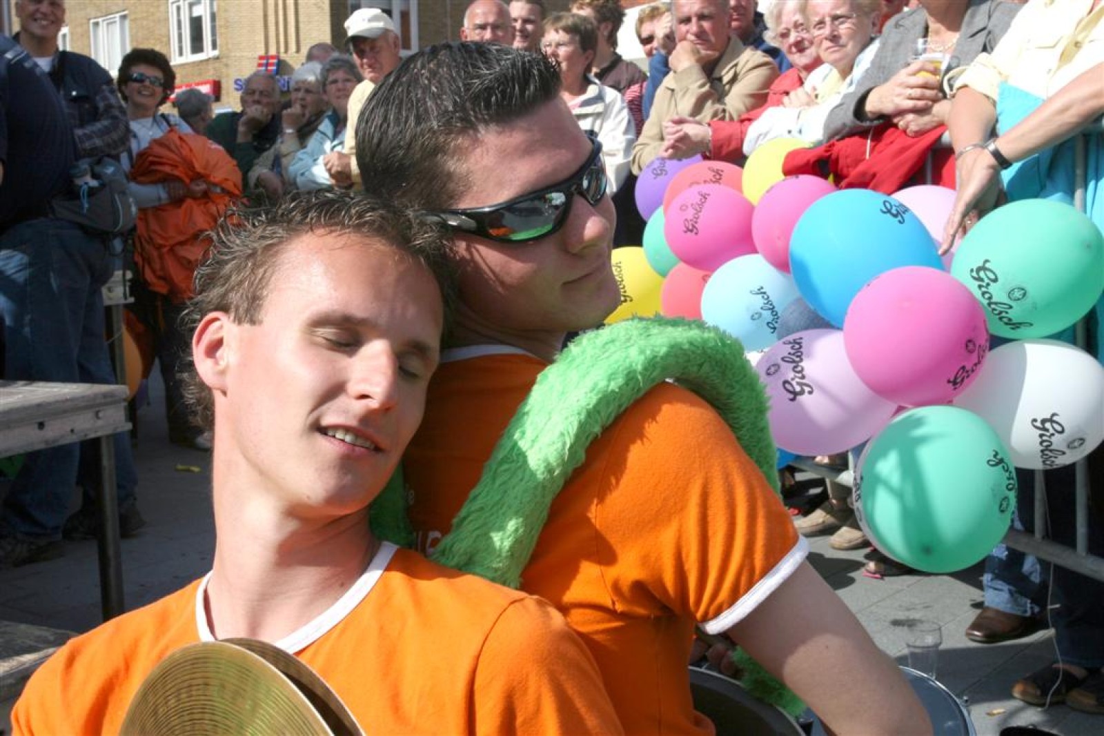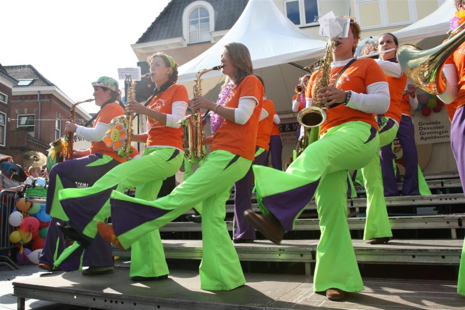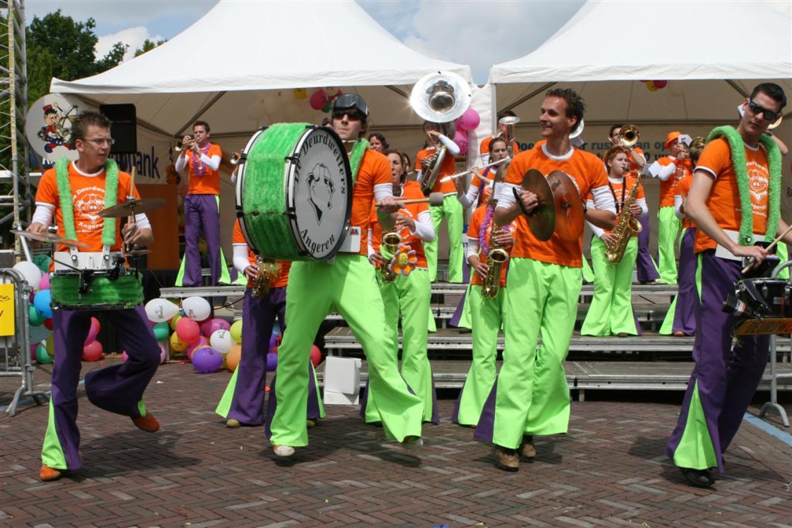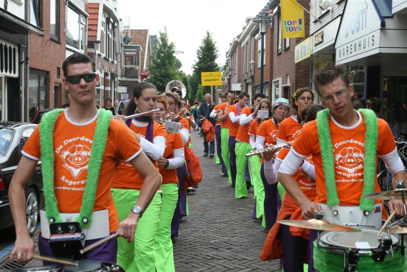 Na dit optreden lopen we gauw richting de Markt. Met moeite komen we de menigte door. Tijdens het optreden staan we een stuk compacter en hierdoor komen we veel beter uit volgens een paar trouwe fans. Het publiek is hier enthousiast en dat merk je ook gelijk aan ons. We gaan er weer flink tegenaan en springen en dansen tot we er bijna bij neervallen.