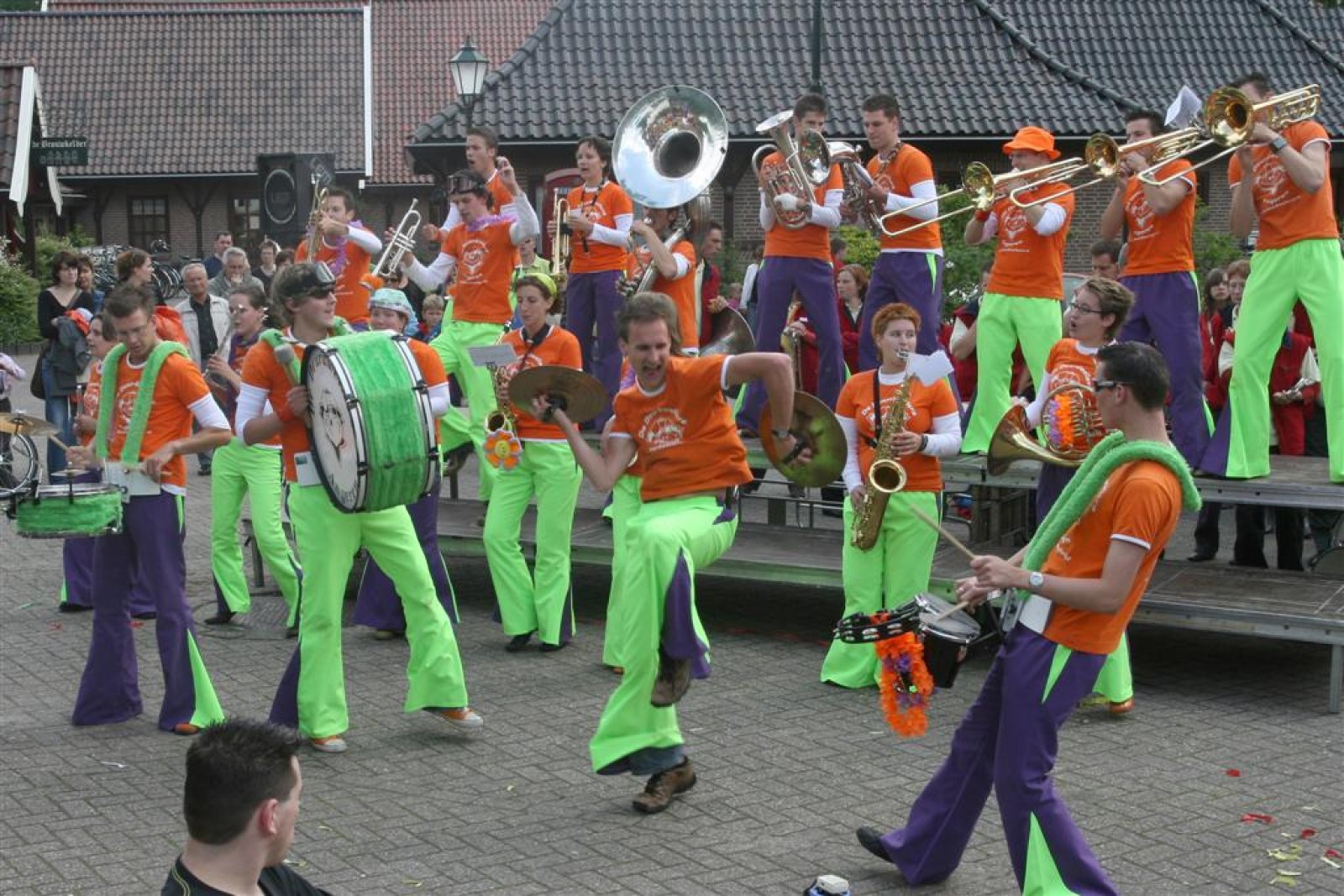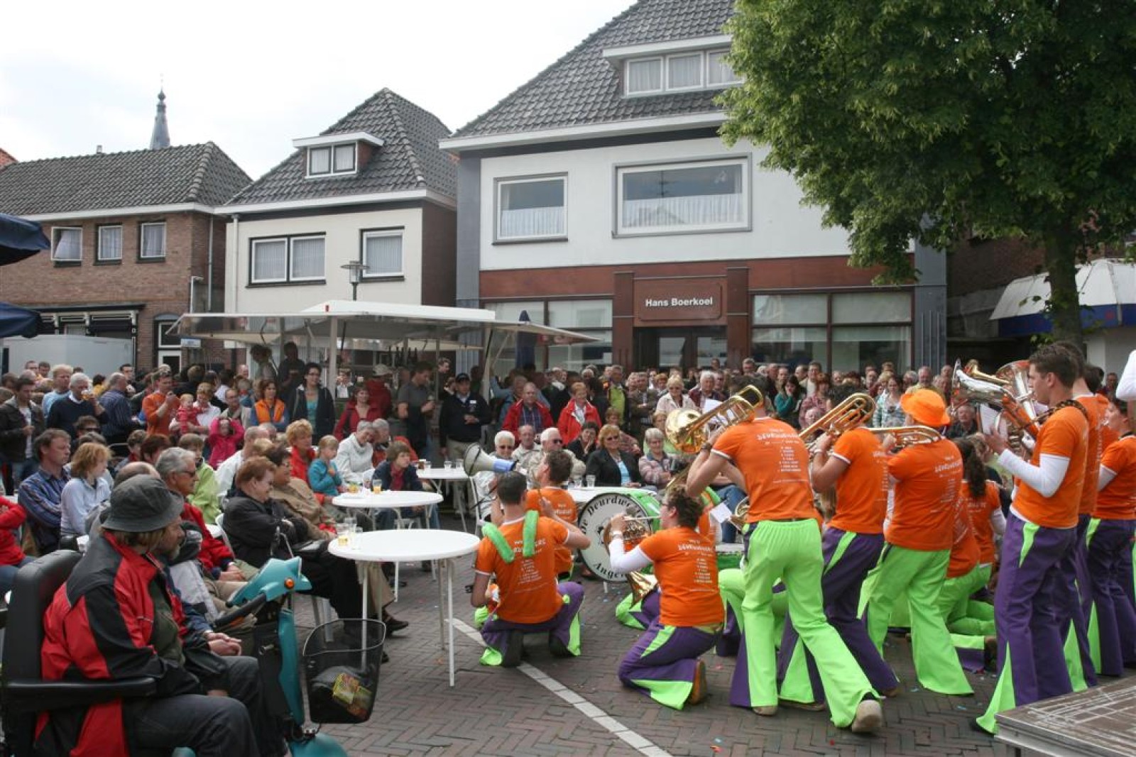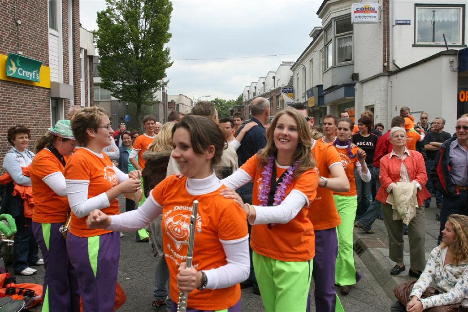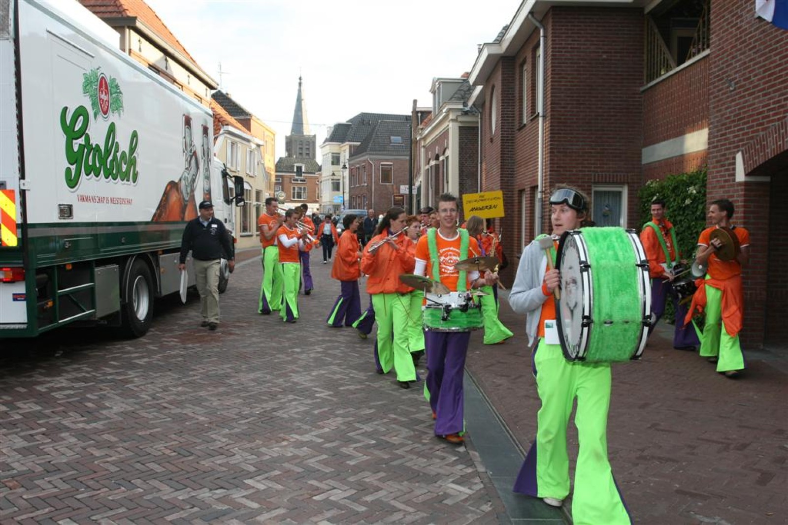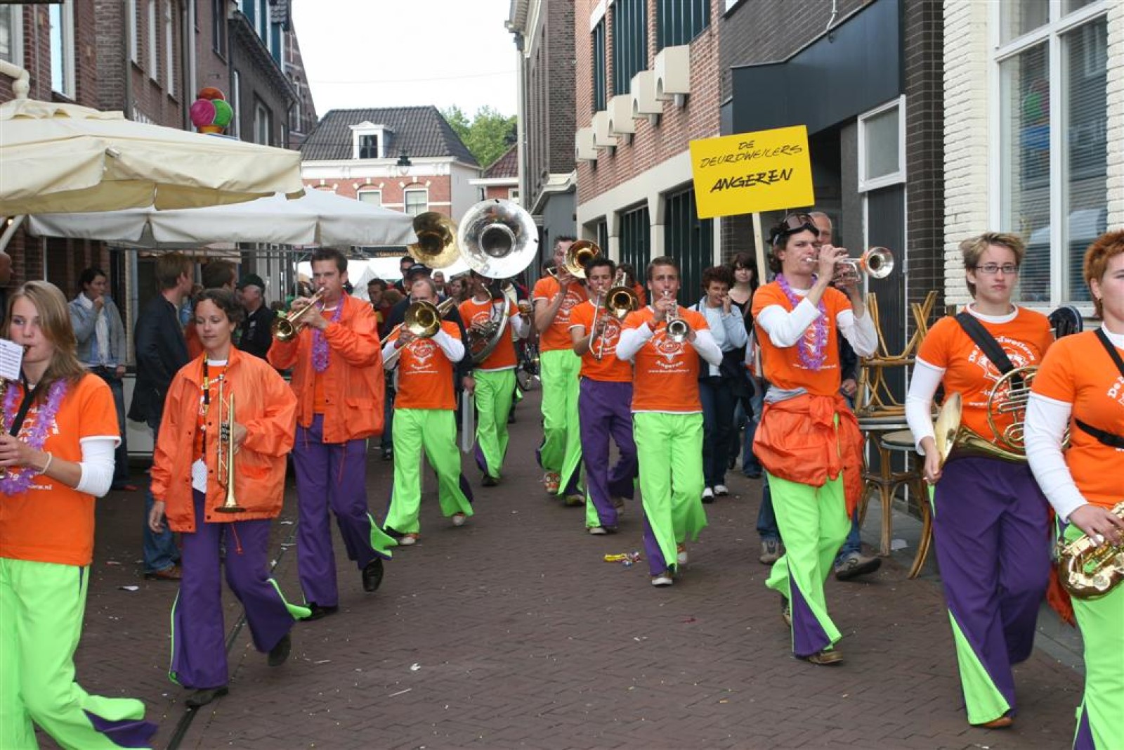 Na dit optreden lopen we gauw richting de Markt. Met moeite komen we de menigte door. Tijdens het optreden staan we een stuk compacter en hierdoor komen we veel beter uit volgens een paar trouwe fans. Het publiek is hier enthousiast en dat merk je ook gelijk aan ons. We gaan er weer flink tegenaan en springen en dansen tot we er bijna bij neervallen.