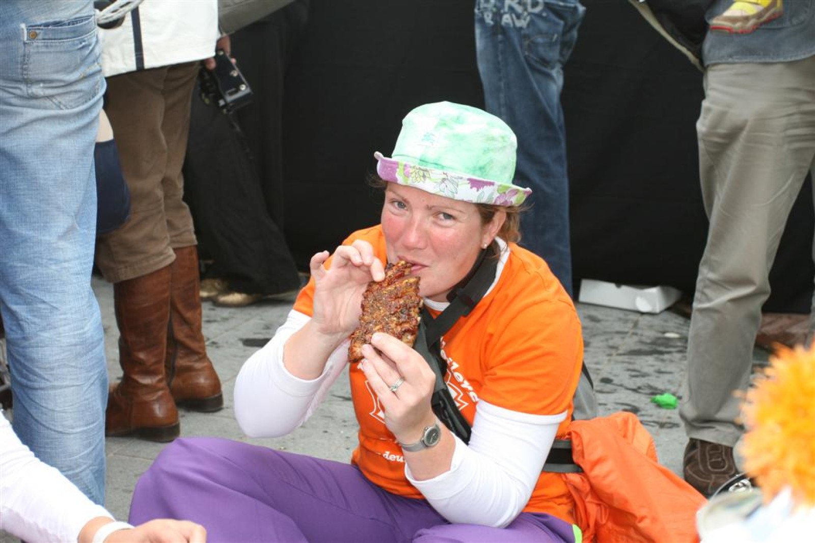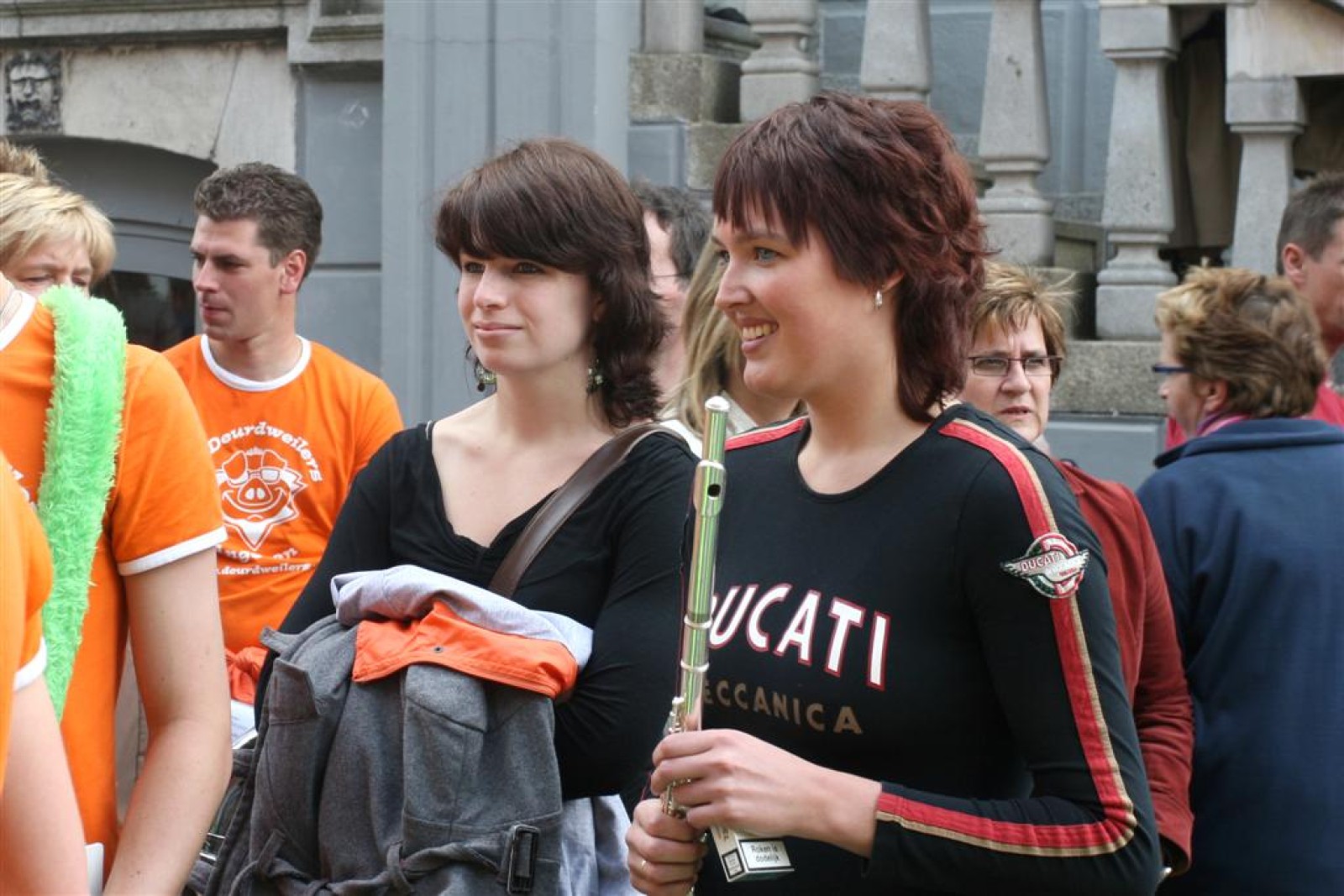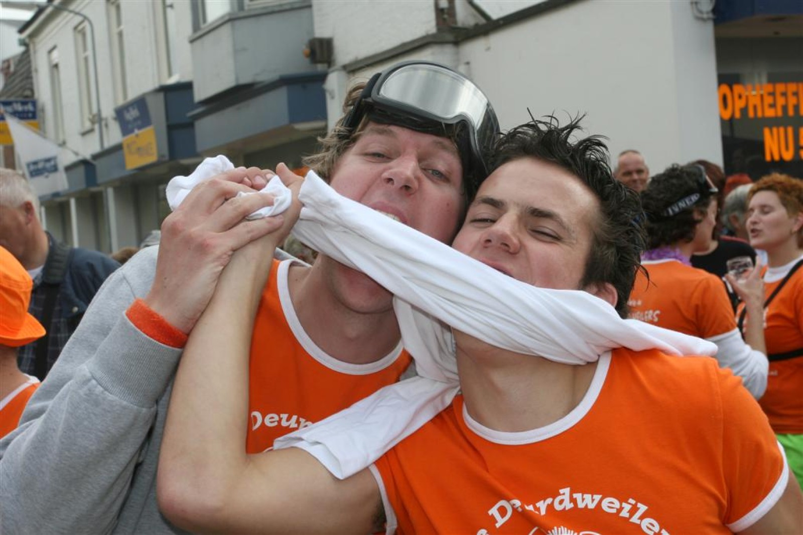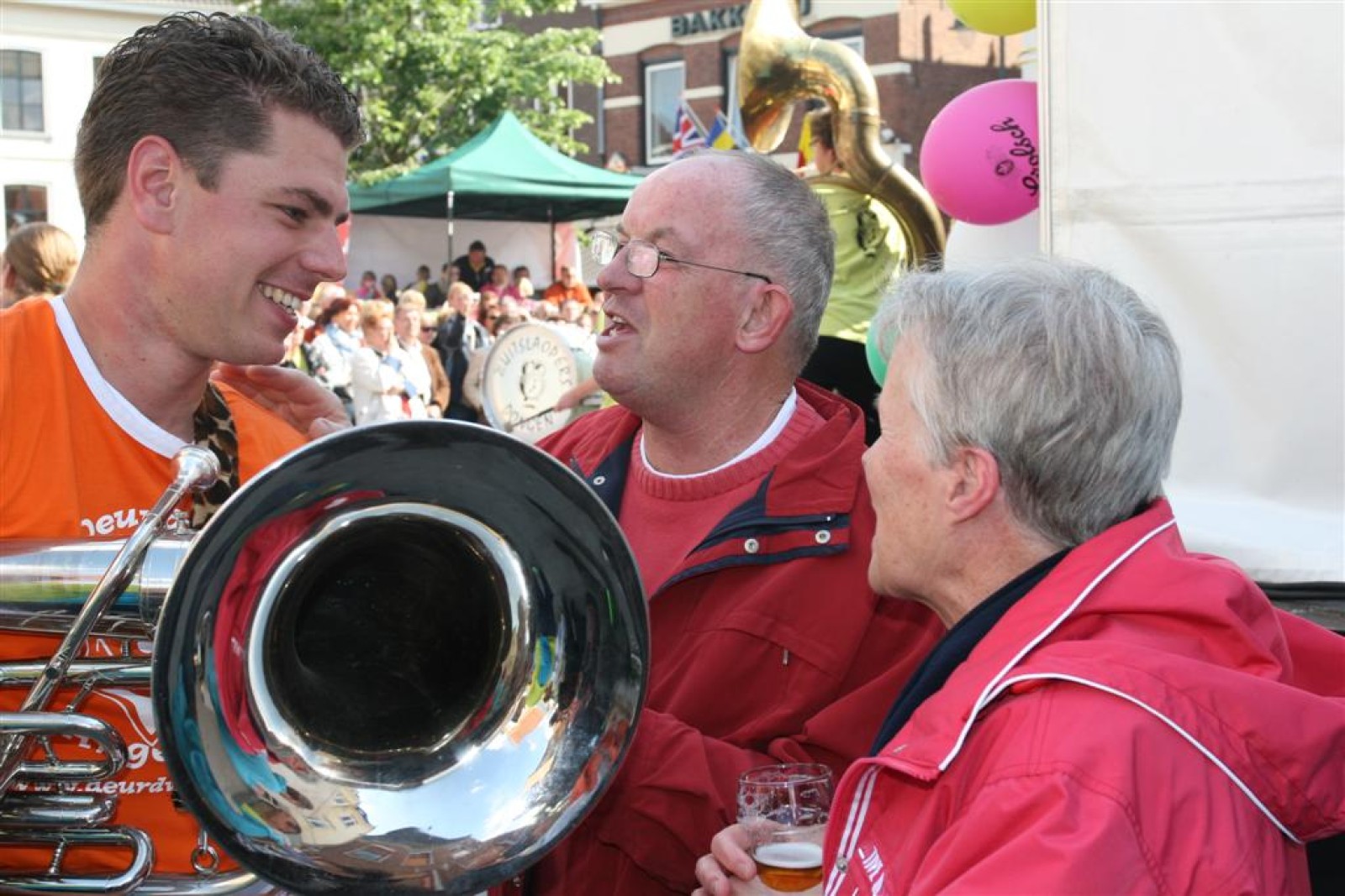 Na dit optreden lopen we gauw richting de Markt. Met moeite komen we de menigte door. Tijdens het optreden staan we een stuk compacter en hierdoor komen we veel beter uit volgens een paar trouwe fans. Het publiek is hier enthousiast en dat merk je ook gelijk aan ons. We gaan er weer flink tegenaan en springen en dansen tot we er bijna bij neervallen.