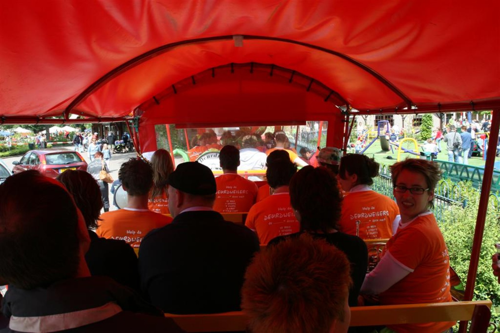 Inmiddels hebben zich alweer heel wat fans bij dit podium verzameld. Het is dan ook erg gezellig! Dan worden de Deurdweilers weer losgelaten. We zien de mensen echt genieten, daar krijgen we weer extra energie van, maar toch missen we dat beetje extra. Dat de mensen echt meedoen, dat ze mee klappen, mee dansen, mee zwaaien, mee zingen. Ligt het aan ons of toch ergens anders aan? Dat is wat we ons gedurende de dag afvragen.