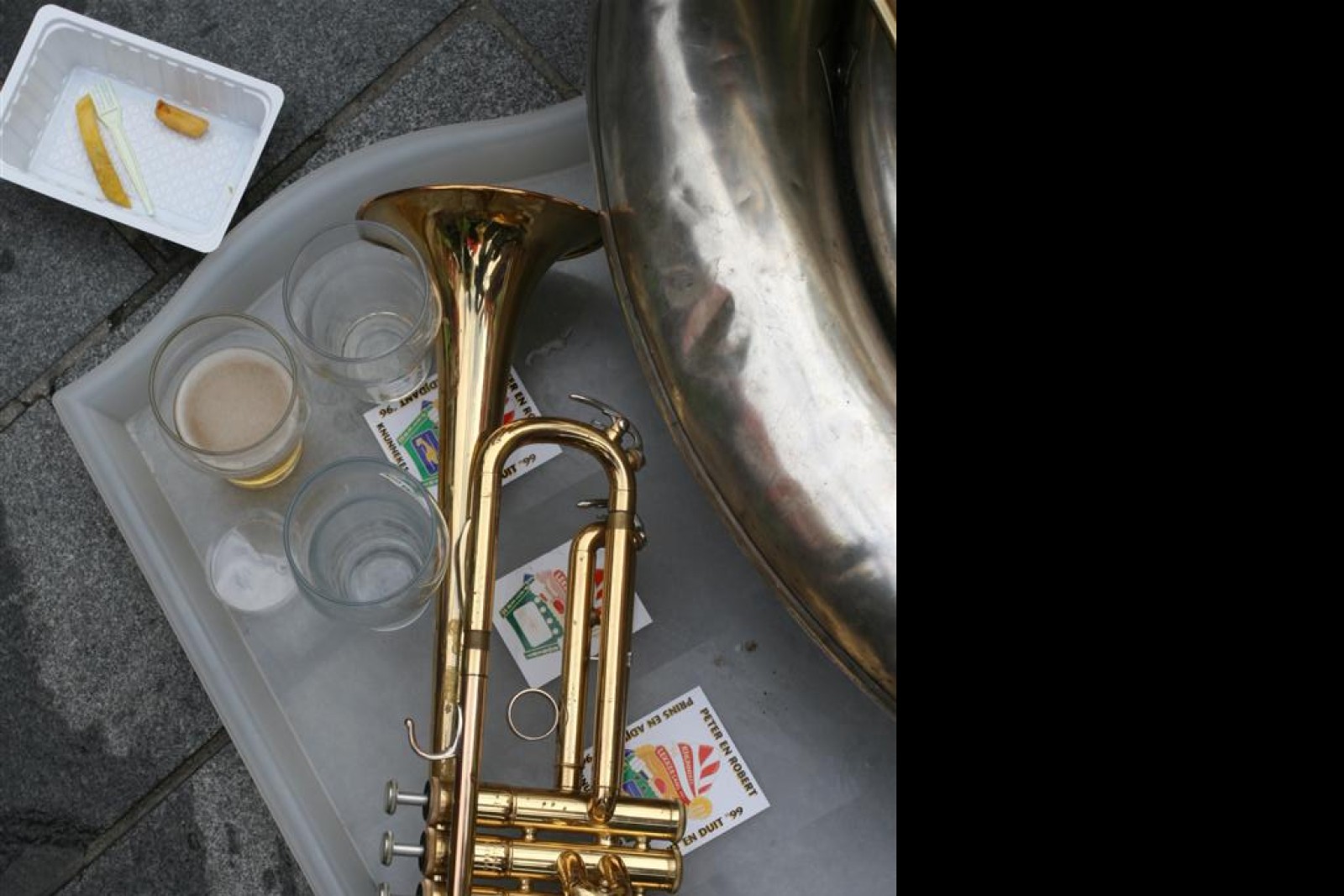 Dan tromgeroffel voor de wedstrijdklasse, vanaf tien wordt er afgeteld naar nummer één. Wij worden nummer acht en daar zijn we hartstikke trots op, we hadden namelijk niet verwacht in de top-10 te komen in dit veld. De Bierleppen worden voor de vijfde keer tot winnaar uitgeroepen. Ze spelen nog wat en wij gaan op naar ons laatste biertje. Binnen spelen we nog een klein kwartier tot onze lippen echt helemaal kapot zijn. De piep is leug!