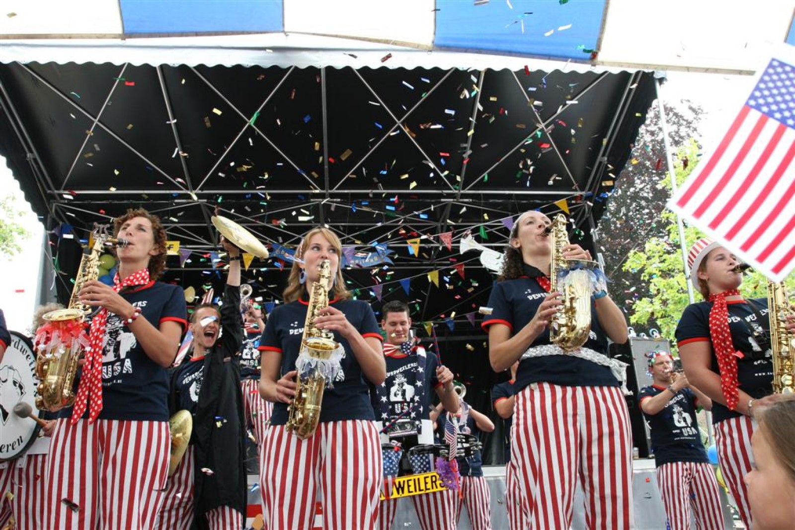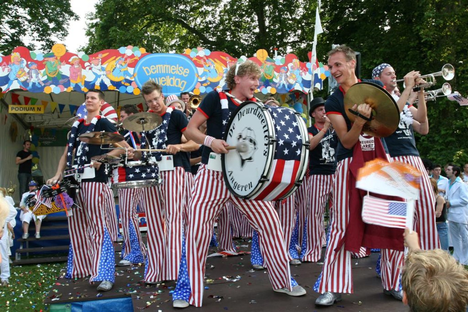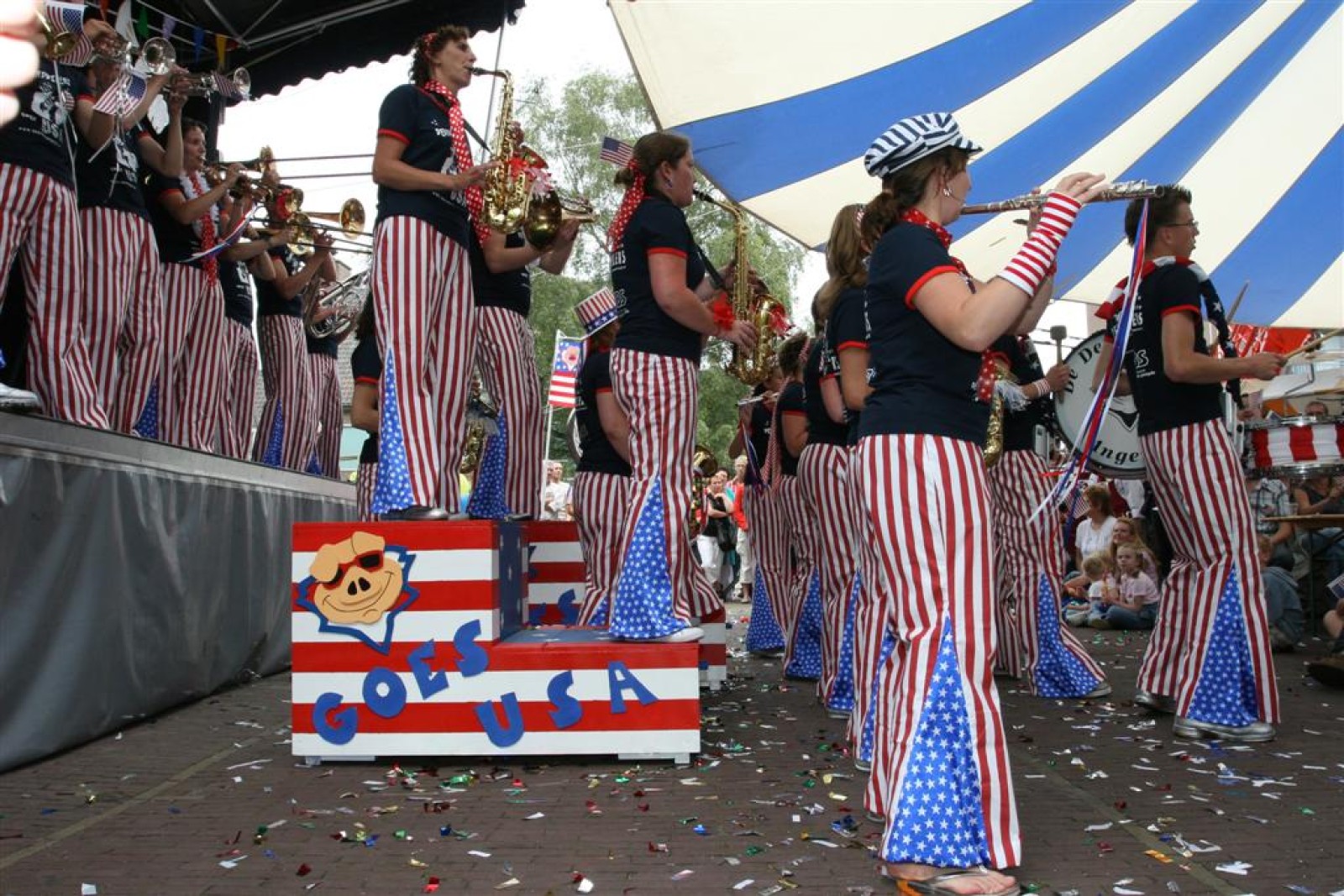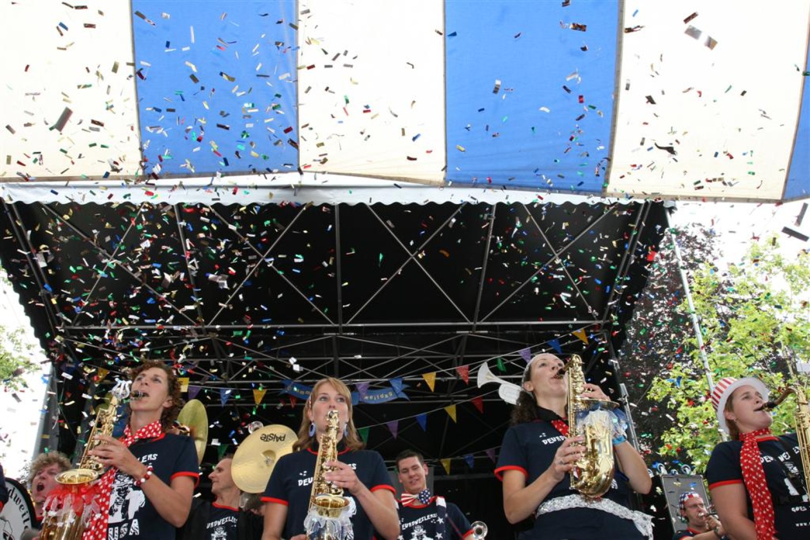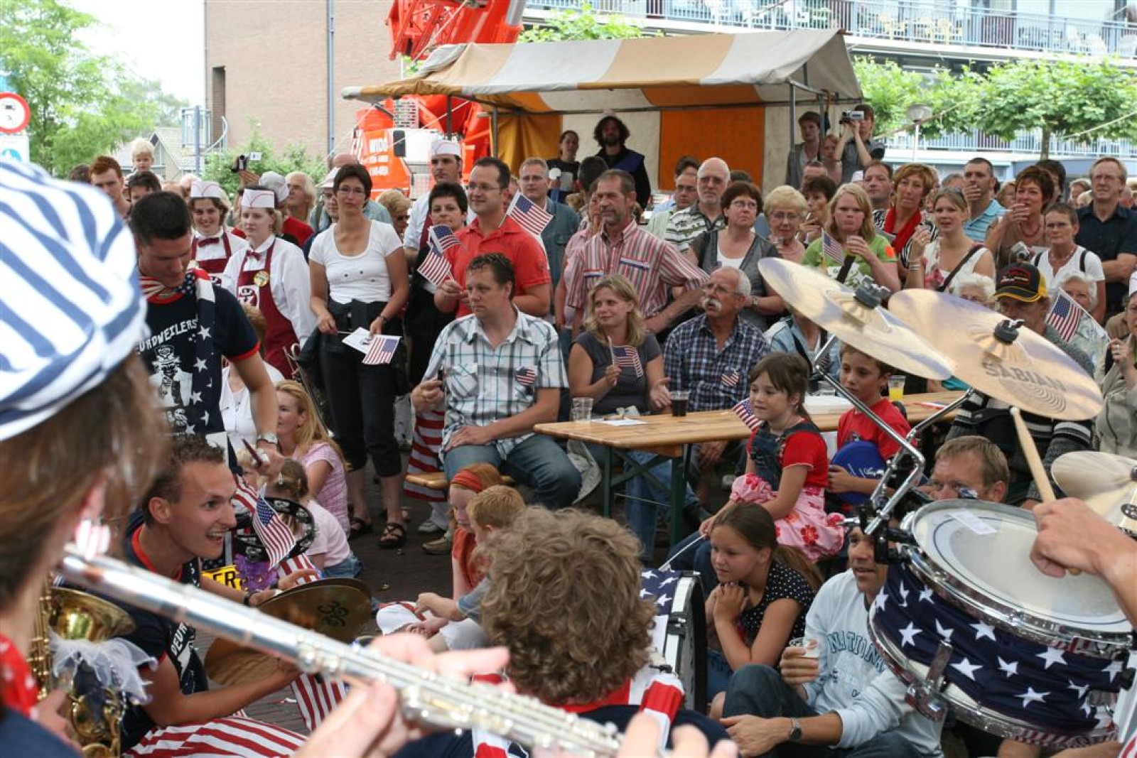De dag begon wat onzeker na 2 zware nachten op de dweilcamping, maar gelukkig groeide ons niveau in gelijke tred met de hoeveelheid publiek! Na ons 3e optreden op de Markt stond bij ons allemaal het kippenvel op de armen van het enthousiasme dat het massaal toegestroomde publiek liet zien. Wat een vet gevoel was dat!