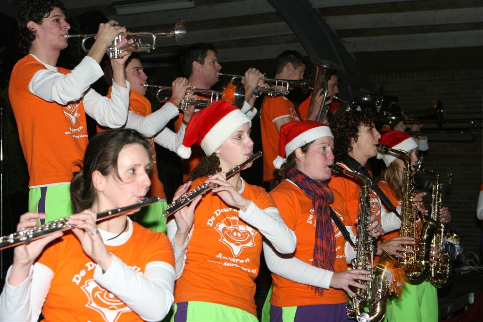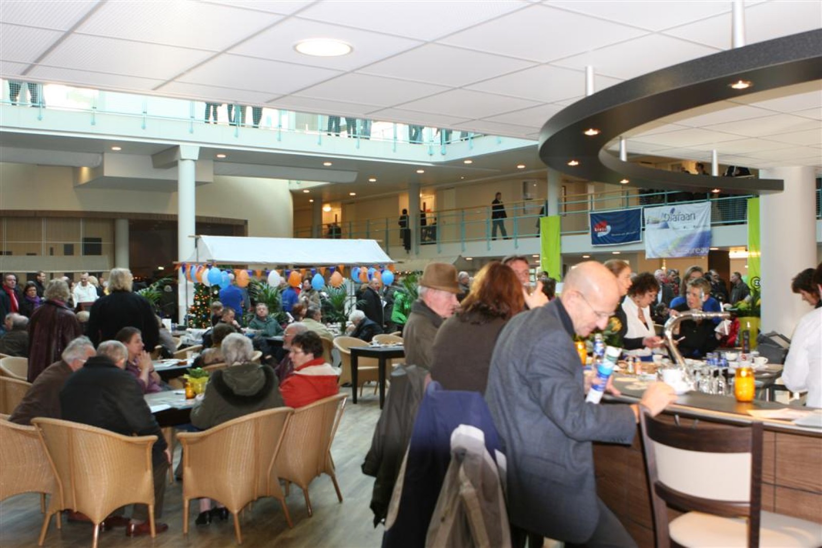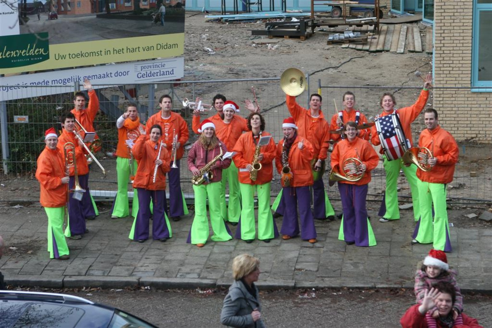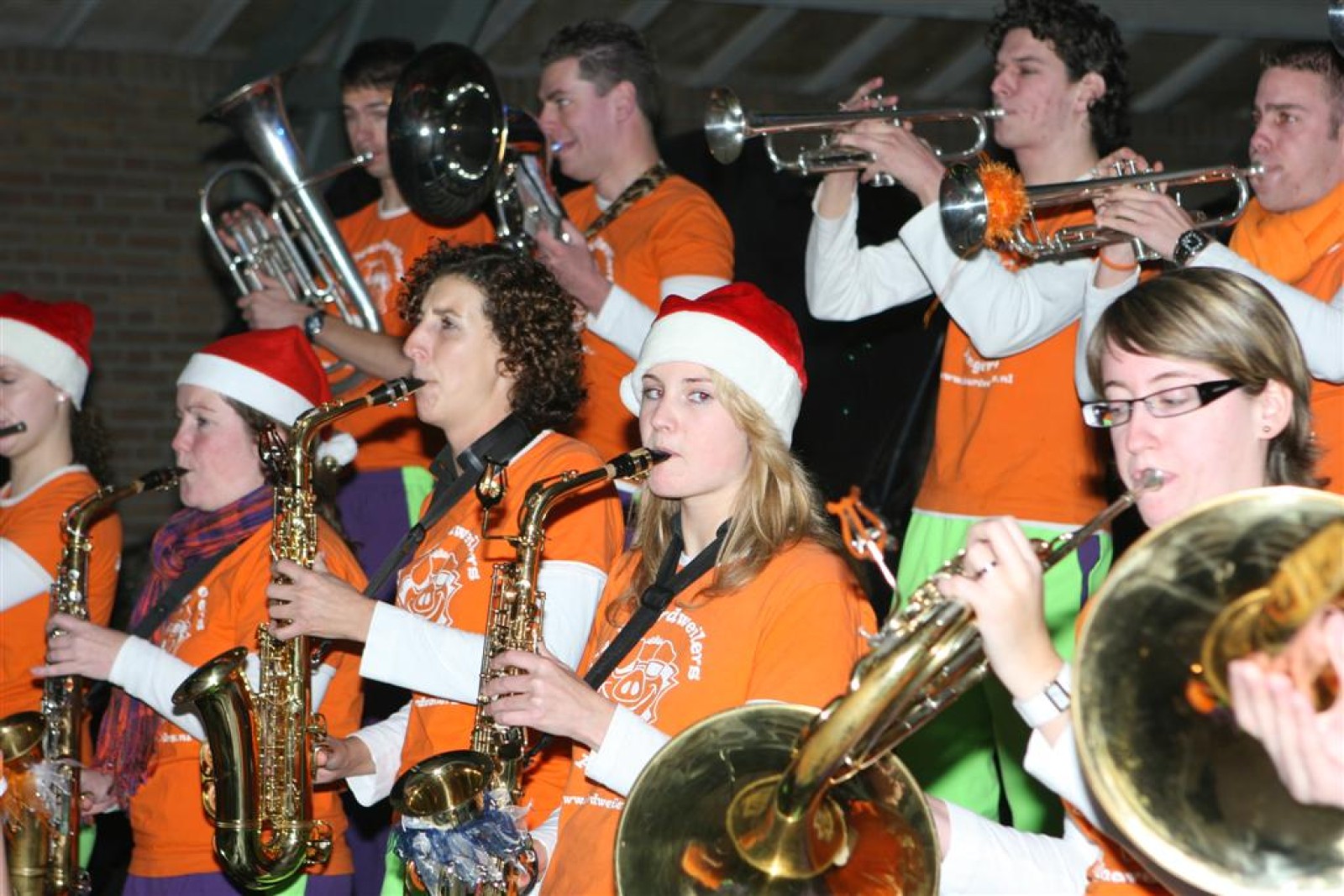 Het was mooi weer, dus zo marcheerden we fier richting de markthal en het nieuwe hypermoderne bejaardentehuis. Voor de deur speelden we even in en daarna marcheerden we al voeten vegend naar binnen. Wat een lekkere accoustiek zeg! En de nieuwe nummers gingen ook goed! Ik krijg er al een goed gevoel bij en ze kunnen alleen nog maar beter gaan! Nog ff K3 voor het jonge publiek en daarna ff een rustmomentje. De één keek wat rond en de ander ging nog ff op de sfeerfoto bij Henk. En in het café dronken we wat en aten we alle kerstkransjes op. En daarna gauw naar de markthal, waar we voor ons volgend optreden verwacht werden.
