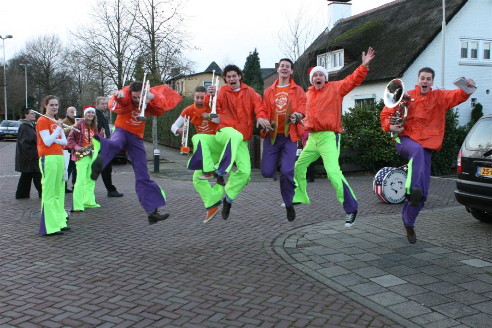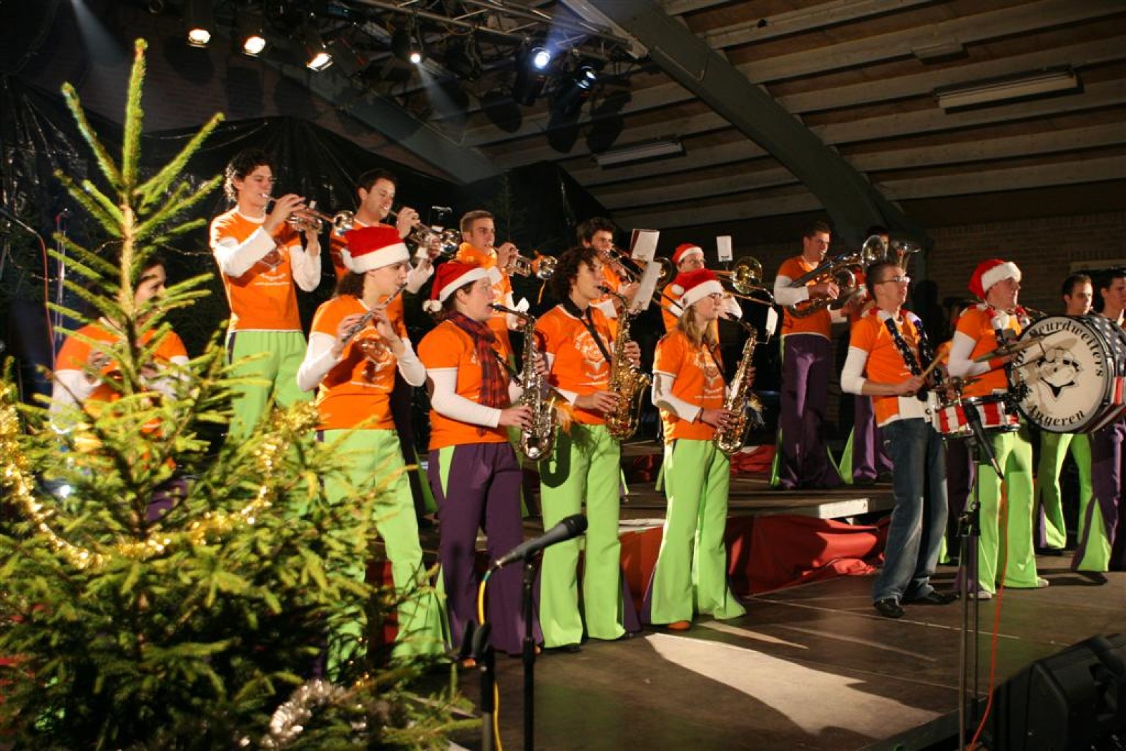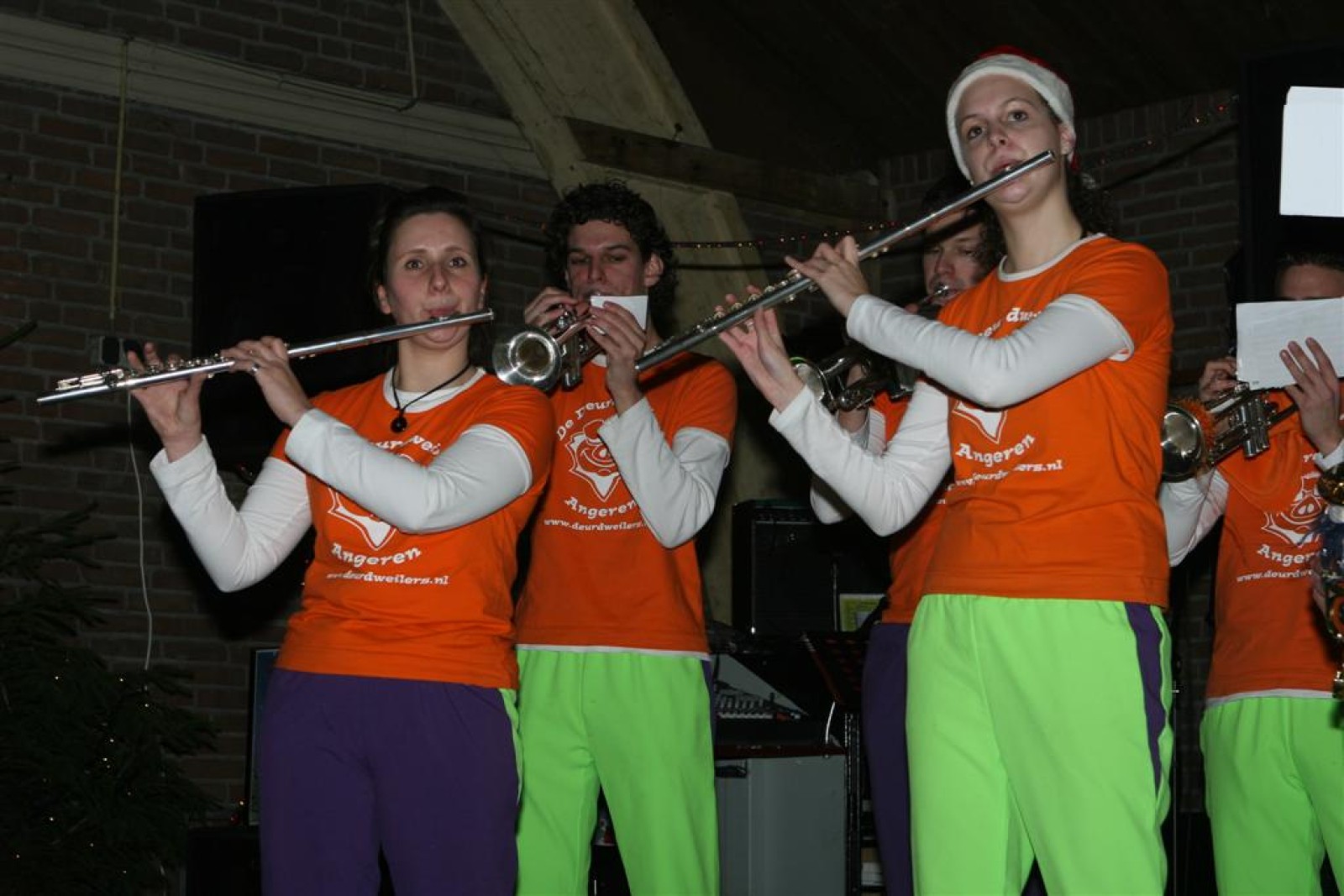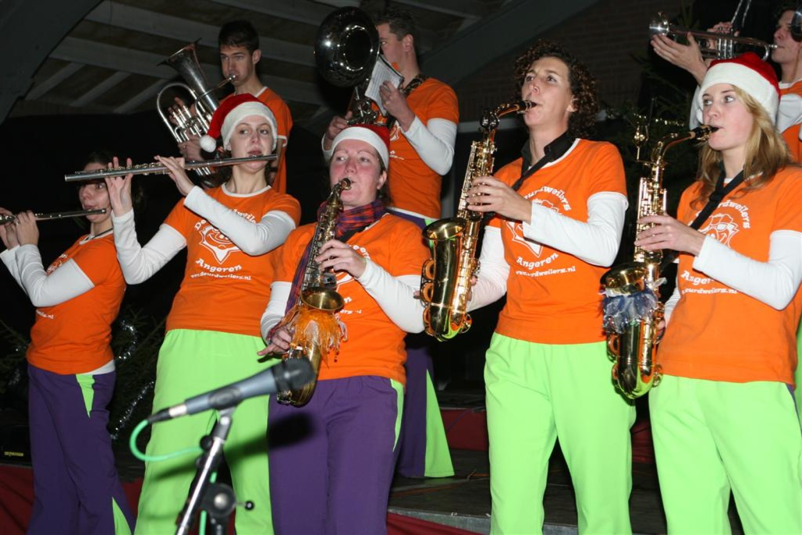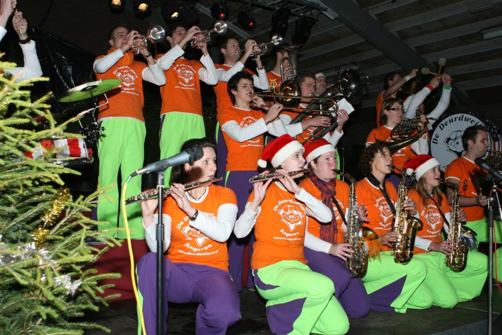 Het was mooi weer, dus zo marcheerden we fier richting de markthal en het nieuwe hypermoderne bejaardentehuis. Voor de deur speelden we even in en daarna marcheerden we al voeten vegend naar binnen. Wat een lekkere accoustiek zeg! En de nieuwe nummers gingen ook goed! Ik krijg er al een goed gevoel bij en ze kunnen alleen nog maar beter gaan! Nog ff K3 voor het jonge publiek en daarna ff een rustmomentje. De één keek wat rond en de ander ging nog ff op de sfeerfoto bij Henk. En in het café dronken we wat en aten we alle kerstkransjes op. En daarna gauw naar de markthal, waar we voor ons volgend optreden verwacht werden.