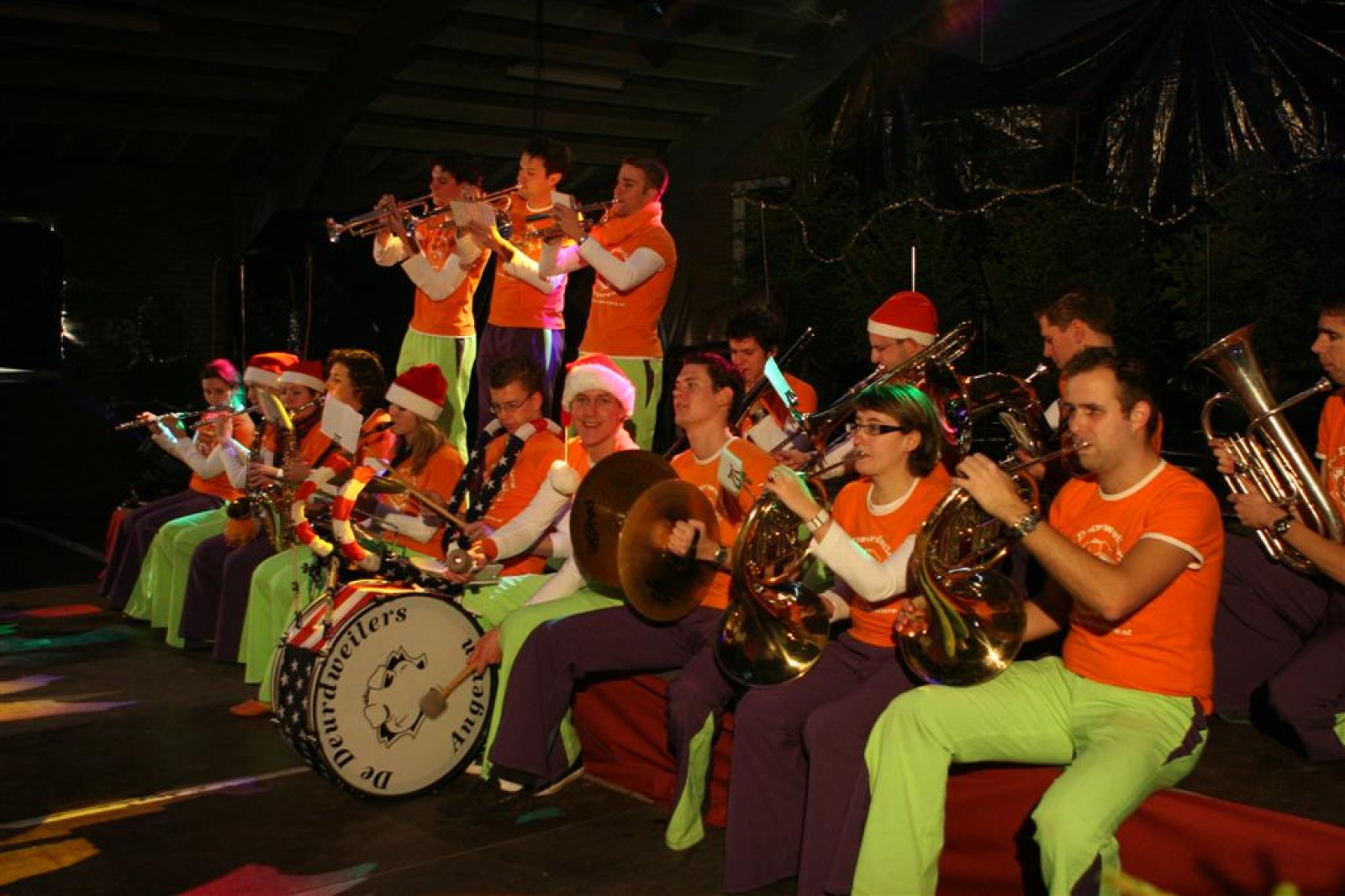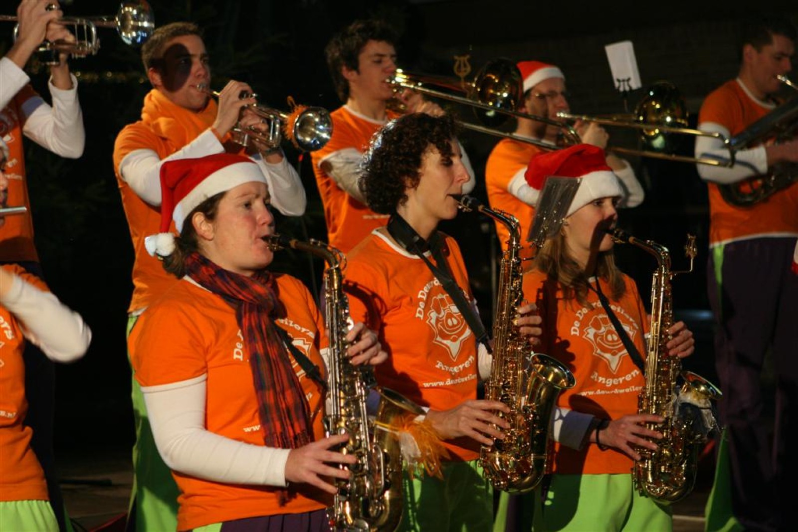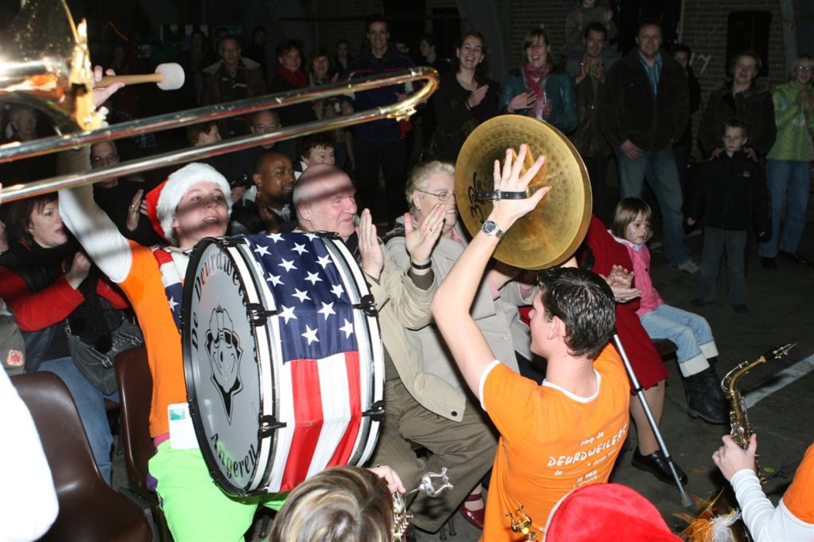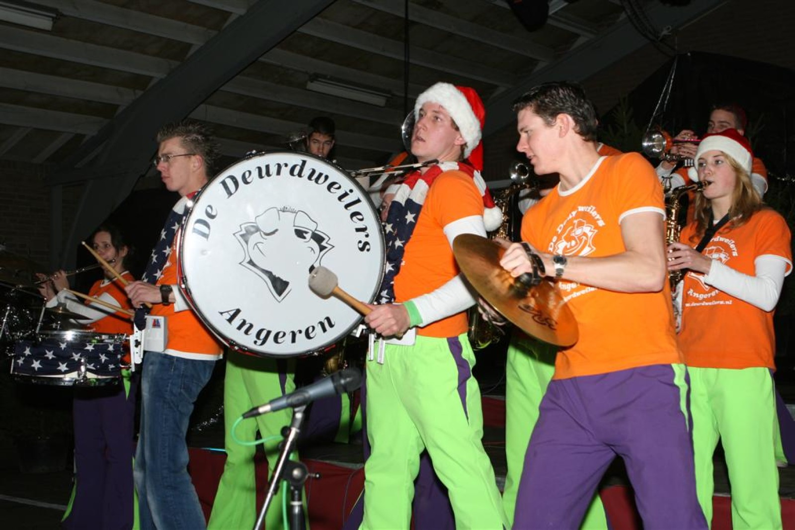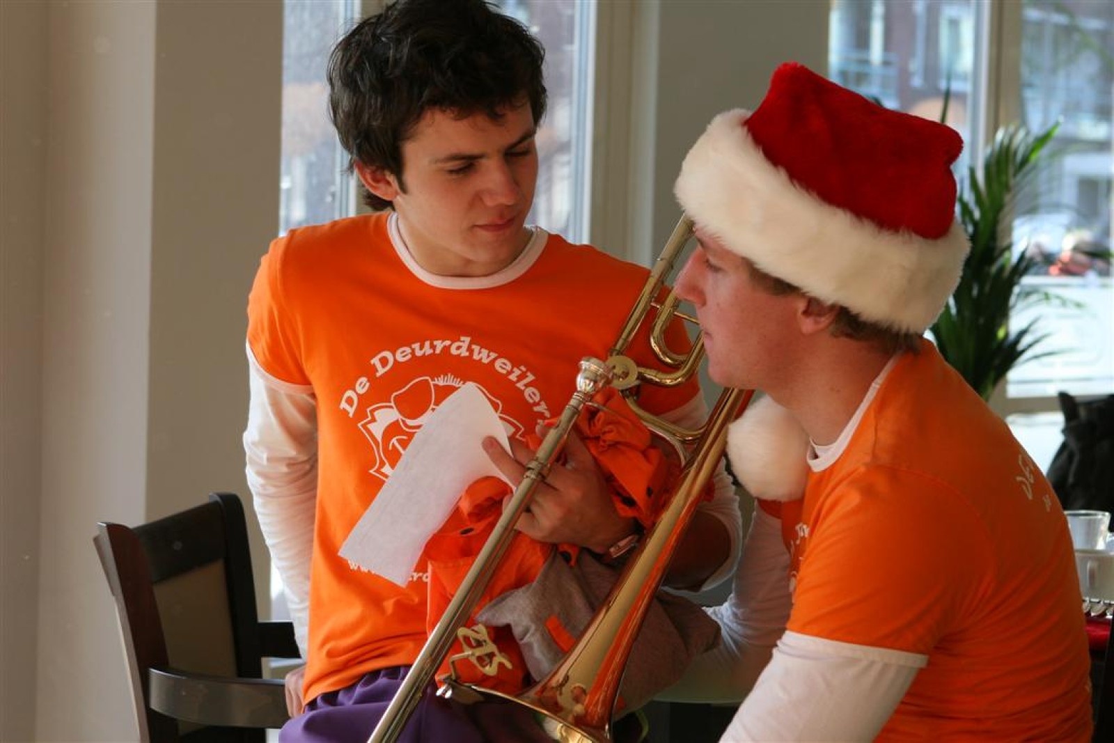 Het was mooi weer, dus zo marcheerden we fier richting de markthal en het nieuwe hypermoderne bejaardentehuis. Voor de deur speelden we even in en daarna marcheerden we al voeten vegend naar binnen. Wat een lekkere accoustiek zeg! En de nieuwe nummers gingen ook goed! Ik krijg er al een goed gevoel bij en ze kunnen alleen nog maar beter gaan! Nog ff K3 voor het jonge publiek en daarna ff een rustmomentje. De één keek wat rond en de ander ging nog ff op de sfeerfoto bij Henk. En in het café dronken we wat en aten we alle kerstkransjes op. En daarna gauw naar de markthal, waar we voor ons volgend optreden verwacht werden.