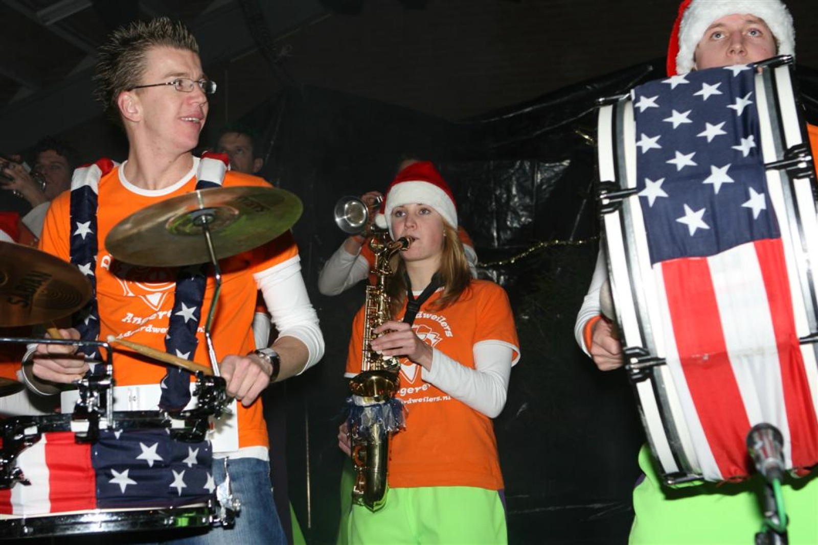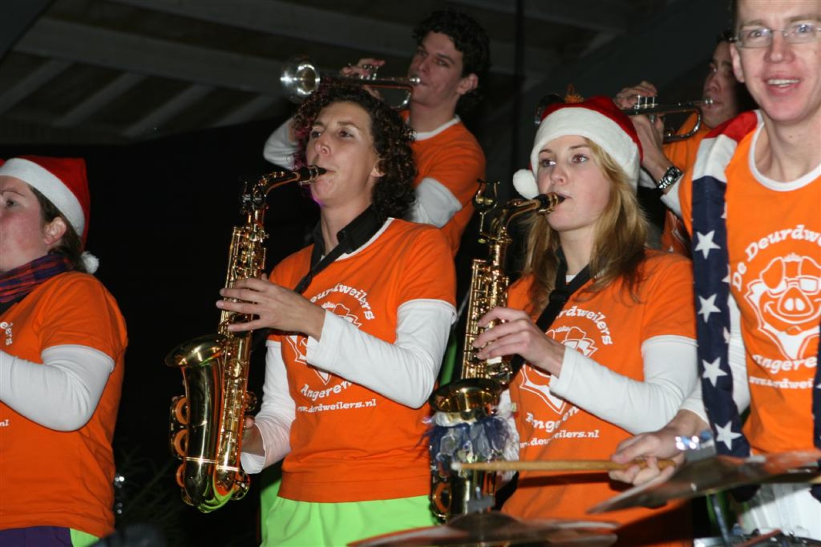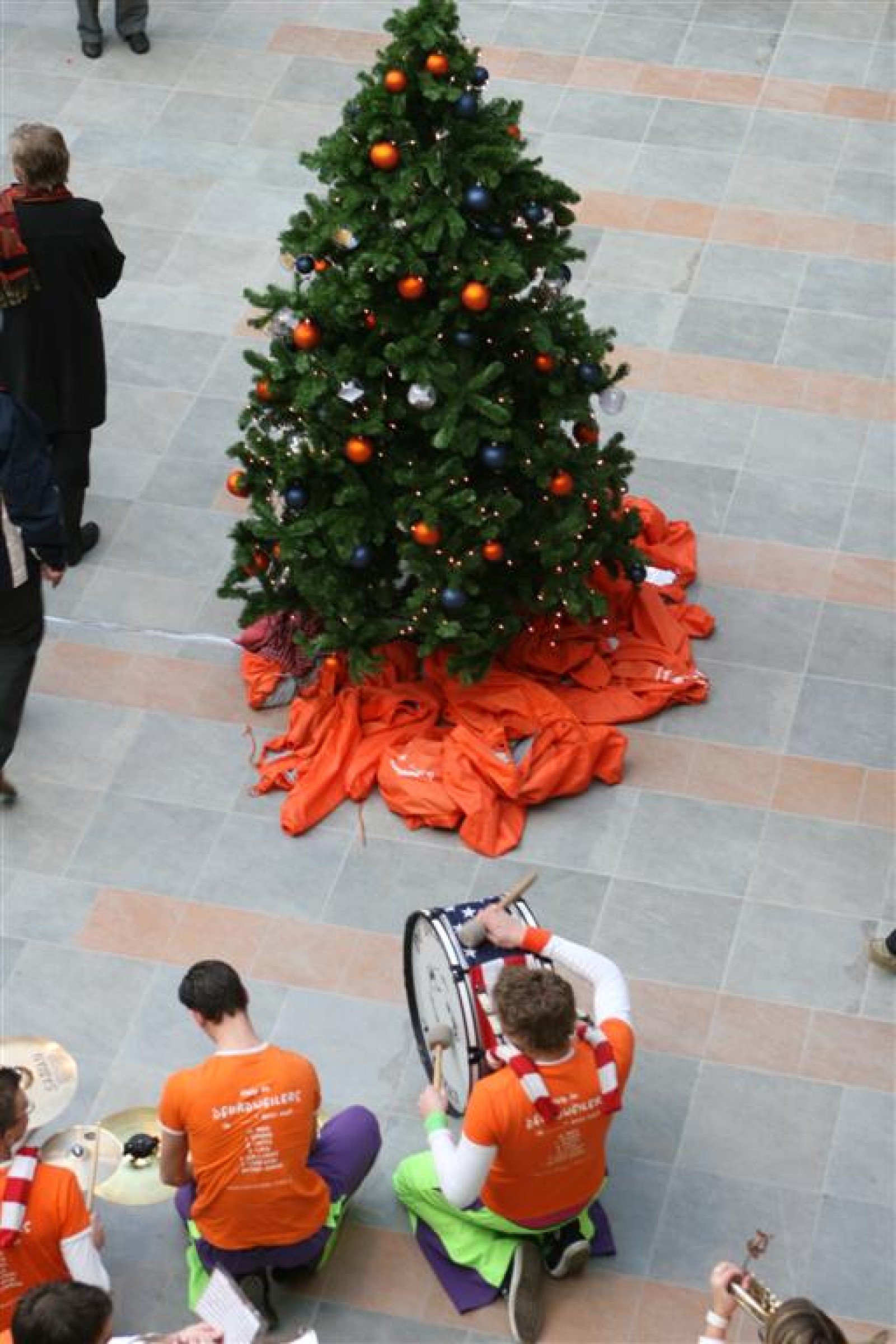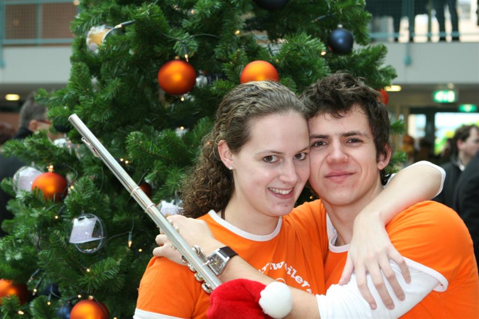 Het was mooi weer, dus zo marcheerden we fier richting de markthal en het nieuwe hypermoderne bejaardentehuis. Voor de deur speelden we even in en daarna marcheerden we al voeten vegend naar binnen. Wat een lekkere accoustiek zeg! En de nieuwe nummers gingen ook goed! Ik krijg er al een goed gevoel bij en ze kunnen alleen nog maar beter gaan! Nog ff K3 voor het jonge publiek en daarna ff een rustmomentje. De één keek wat rond en de ander ging nog ff op de sfeerfoto bij Henk. En in het café dronken we wat en aten we alle kerstkransjes op. En daarna gauw naar de markthal, waar we voor ons volgend optreden verwacht werden.