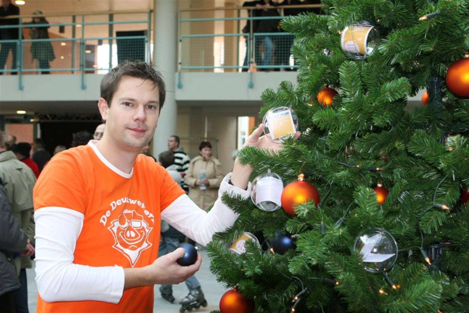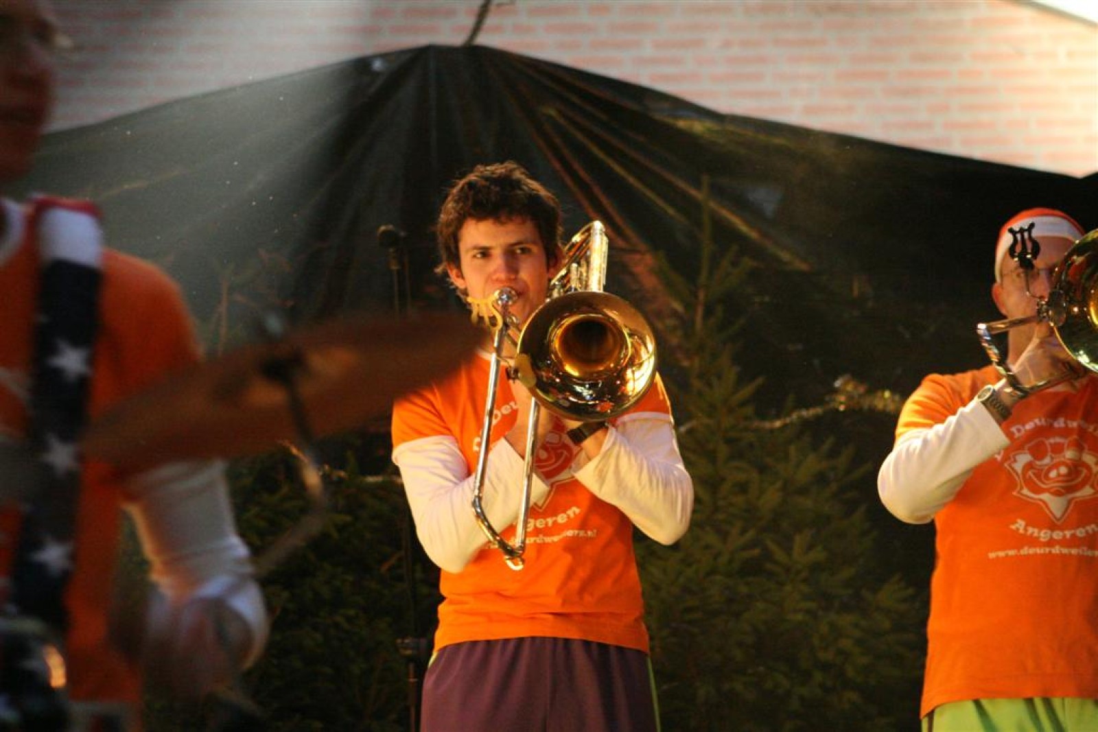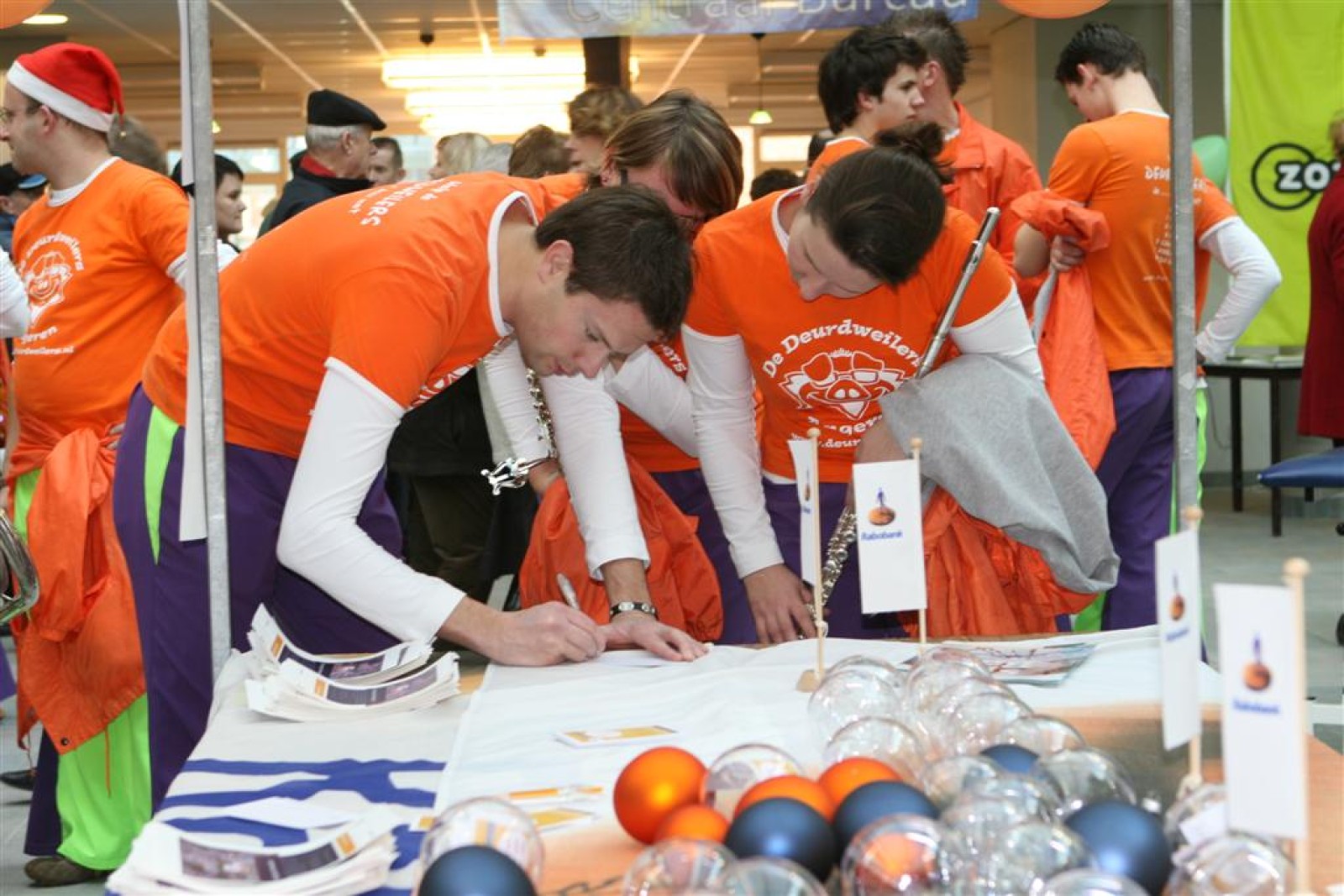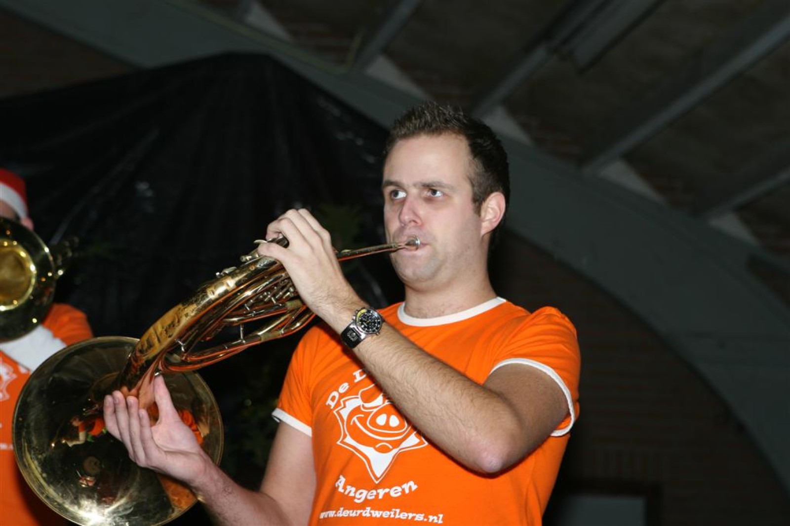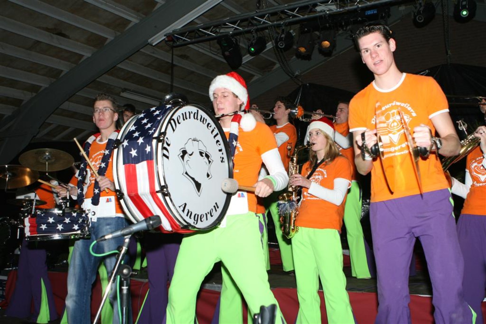Het was mooi weer, dus zo marcheerden we fier richting de markthal en het nieuwe hypermoderne bejaardentehuis. Voor de deur speelden we even in en daarna marcheerden we al voeten vegend naar binnen. Wat een lekkere accoustiek zeg! En de nieuwe nummers gingen ook goed! Ik krijg er al een goed gevoel bij en ze kunnen alleen nog maar beter gaan! Nog ff K3 voor het jonge publiek en daarna ff een rustmomentje. De één keek wat rond en de ander ging nog ff op de sfeerfoto bij Henk. En in het café dronken we wat en aten we alle kerstkransjes op. En daarna gauw naar de markthal, waar we voor ons volgend optreden verwacht werden.