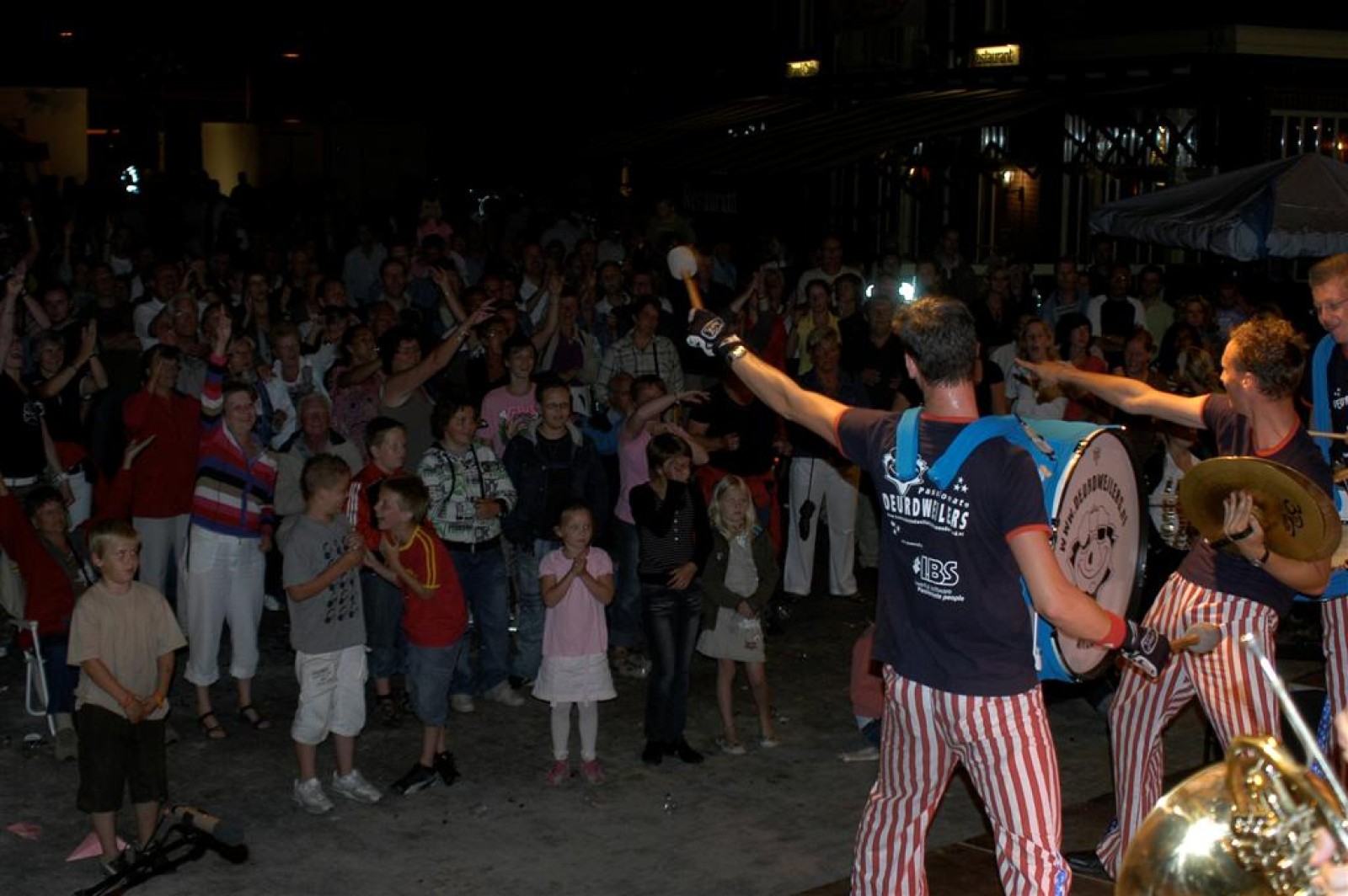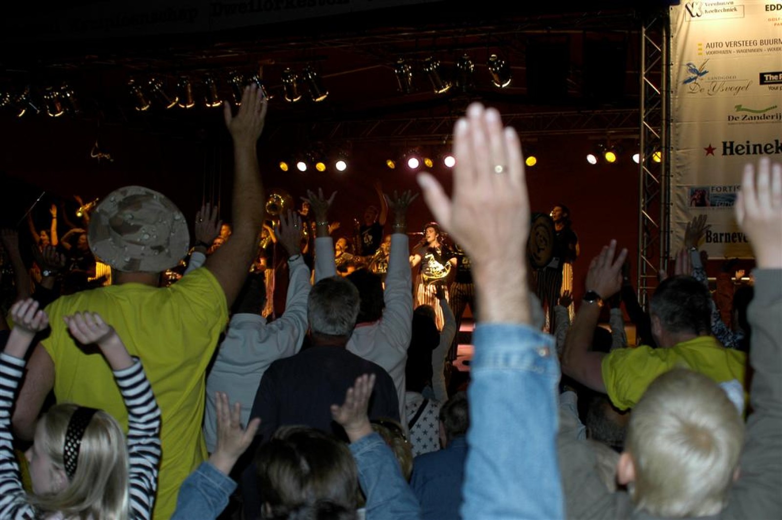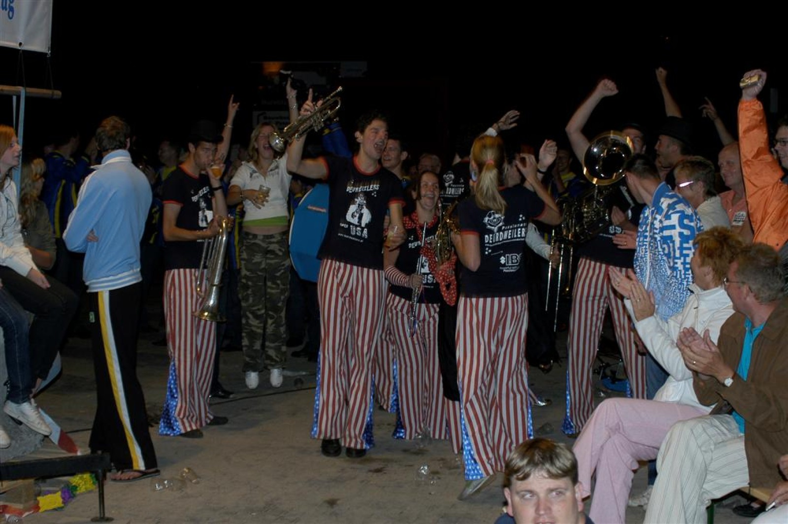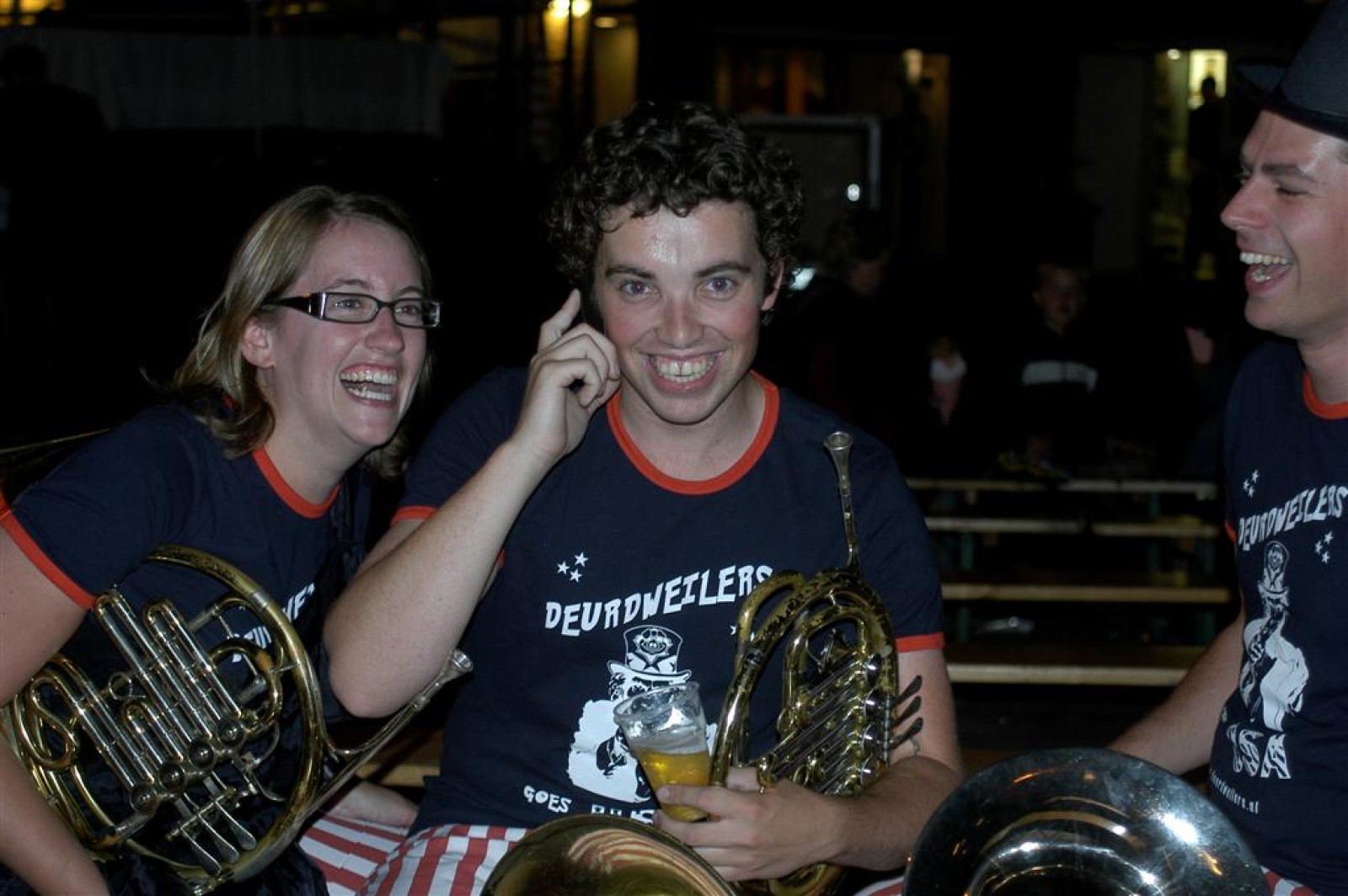 Bij aankomst ’s middags in Voorthuizen werd er eerst samen met de andere dweilorkesten een maaltijd genuttigd en werd er geloot voor de volgorde van die avond. Rond half 7 vertrokken we onder begeleiding van Bonny en Barbara naar het centrum. De BoereSoulStampers trapten de avond af gevolgd door de Blaasbalgen en de Uitlsloapers uit Dongen. Hierna was het de beurt aan de Feestbende. Wat een goede orkesten allemaal… en toen moesten wij…