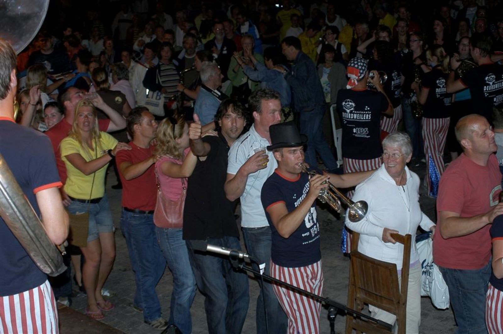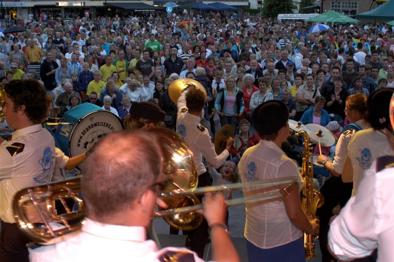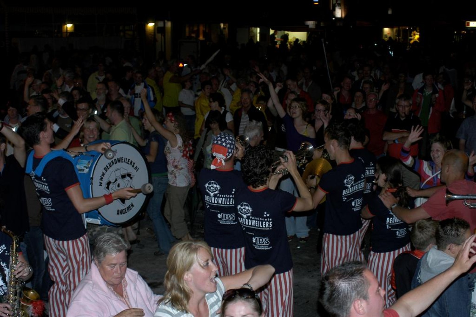 Bij aankomst ’s middags in Voorthuizen werd er eerst samen met de andere dweilorkesten een maaltijd genuttigd en werd er geloot voor de volgorde van die avond. Rond half 7 vertrokken we onder begeleiding van Bonny en Barbara naar het centrum. De BoereSoulStampers trapten de avond af gevolgd door de Blaasbalgen en de Uitlsloapers uit Dongen. Hierna was het de beurt aan de Feestbende. Wat een goede orkesten allemaal… en toen moesten wij…