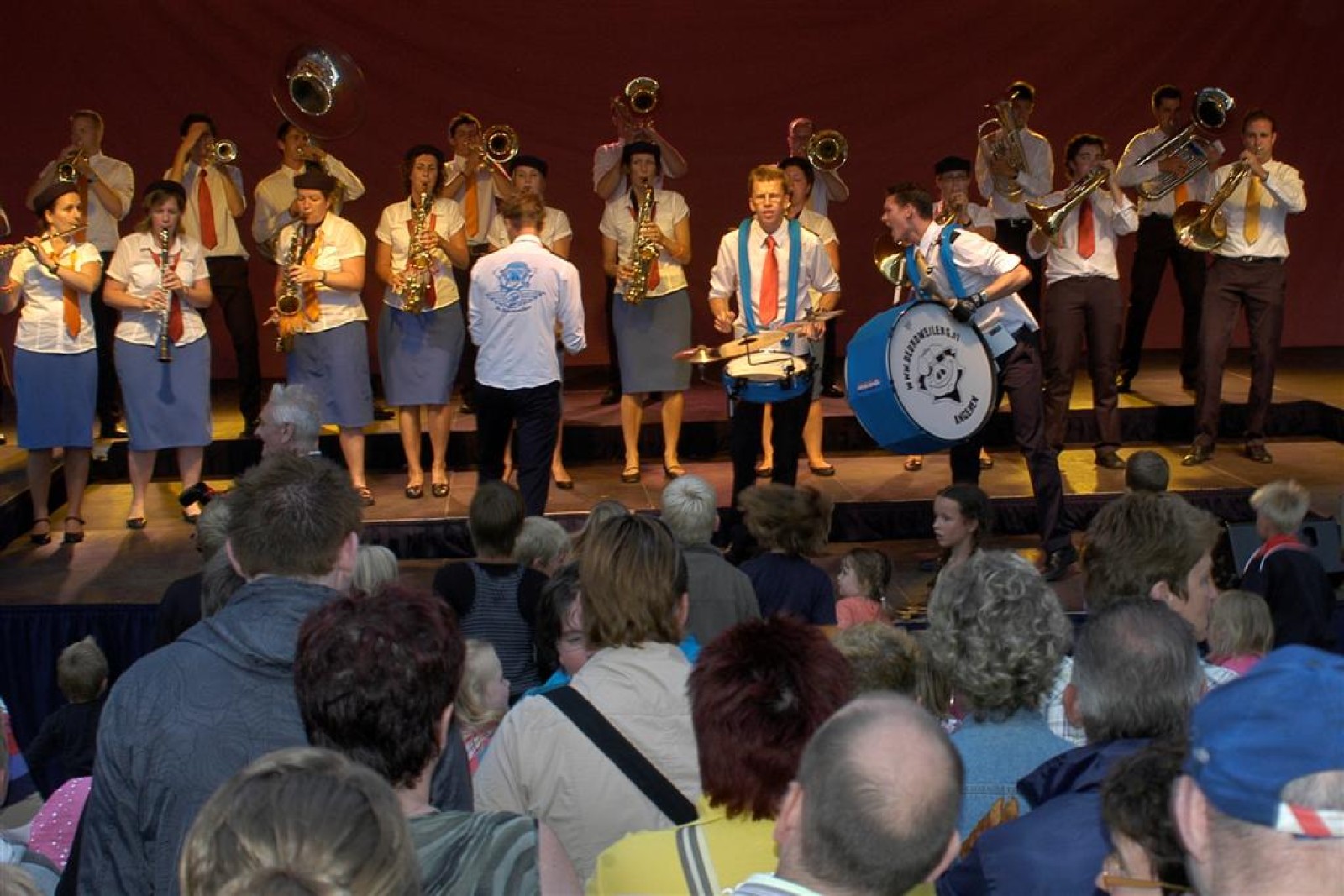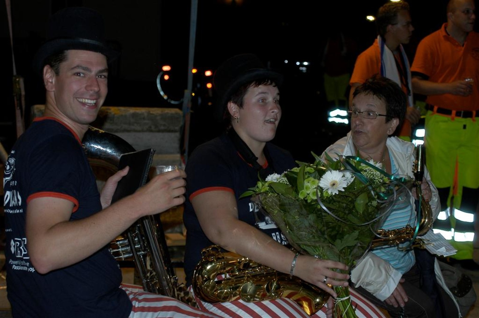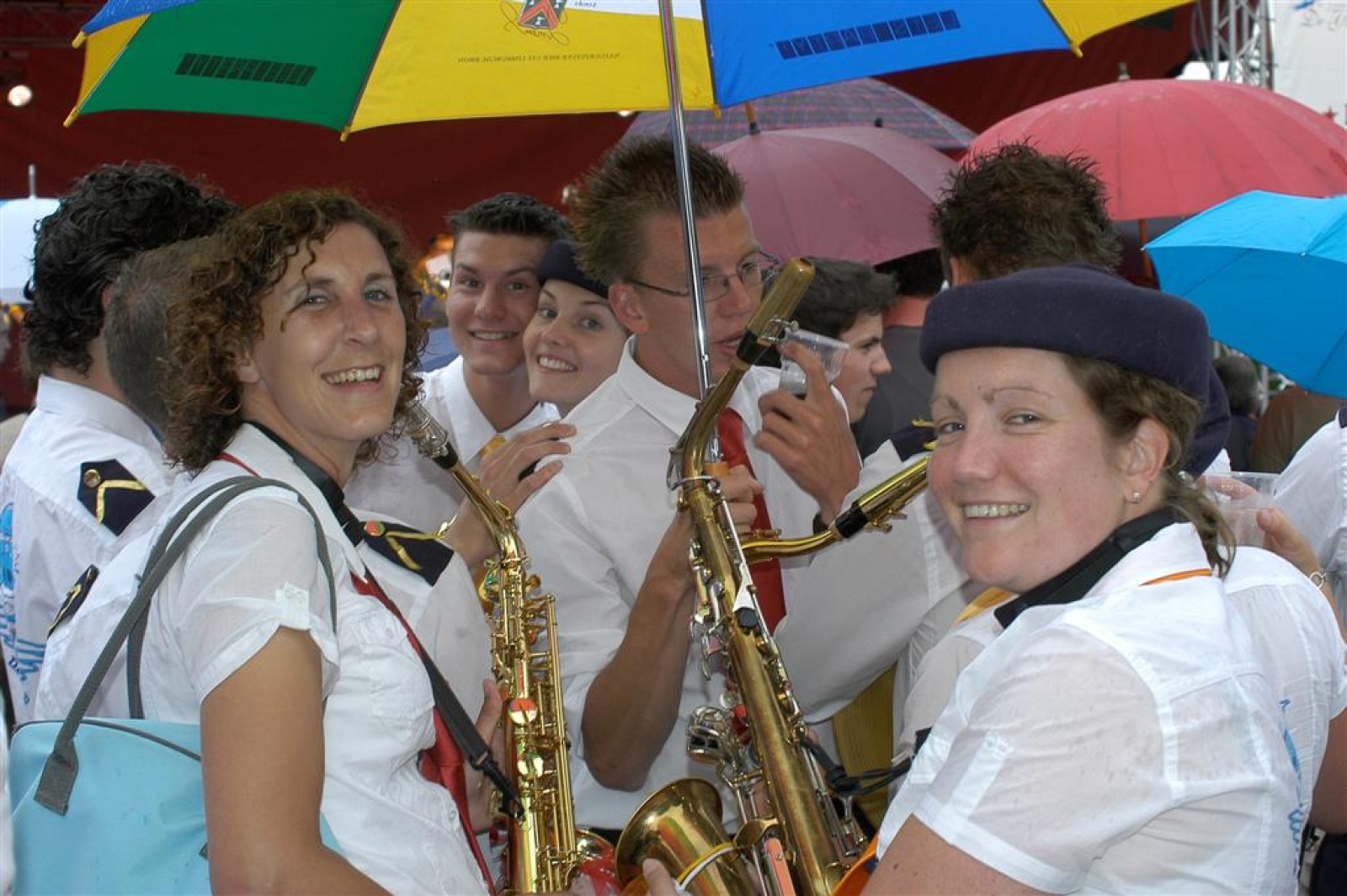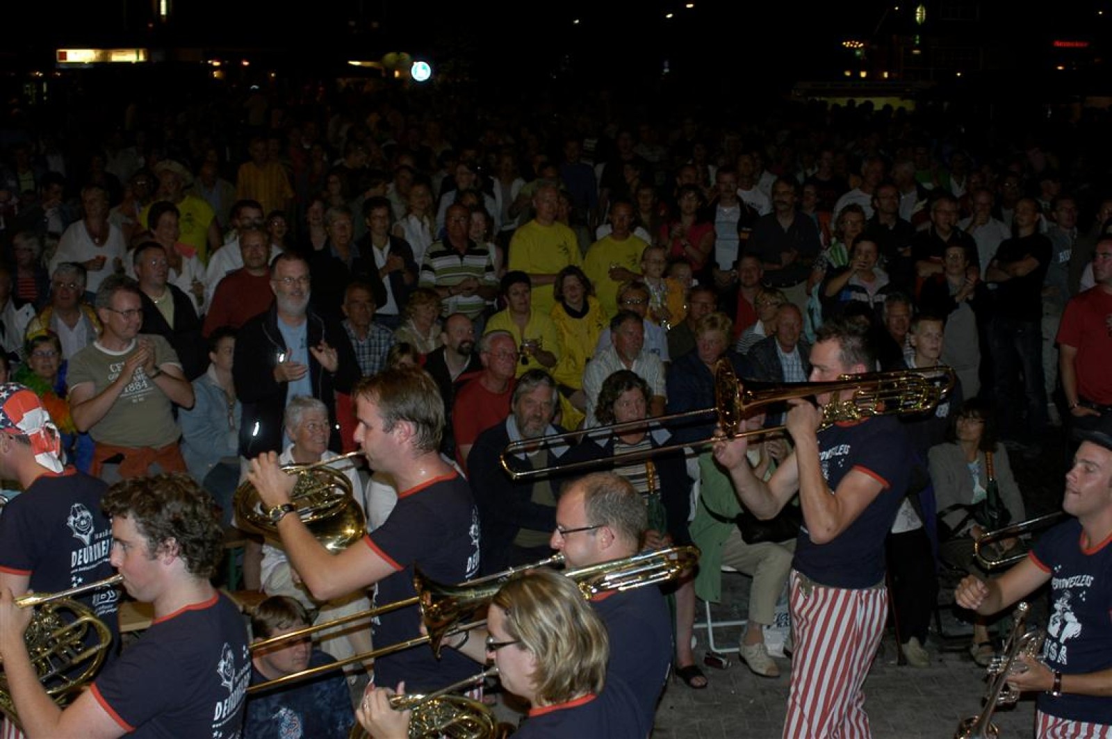 Bij aankomst ’s middags in Voorthuizen werd er eerst samen met de andere dweilorkesten een maaltijd genuttigd en werd er geloot voor de volgorde van die avond. Rond half 7 vertrokken we onder begeleiding van Bonny en Barbara naar het centrum. De BoereSoulStampers trapten de avond af gevolgd door de Blaasbalgen en de Uitlsloapers uit Dongen. Hierna was het de beurt aan de Feestbende. Wat een goede orkesten allemaal… en toen moesten wij…