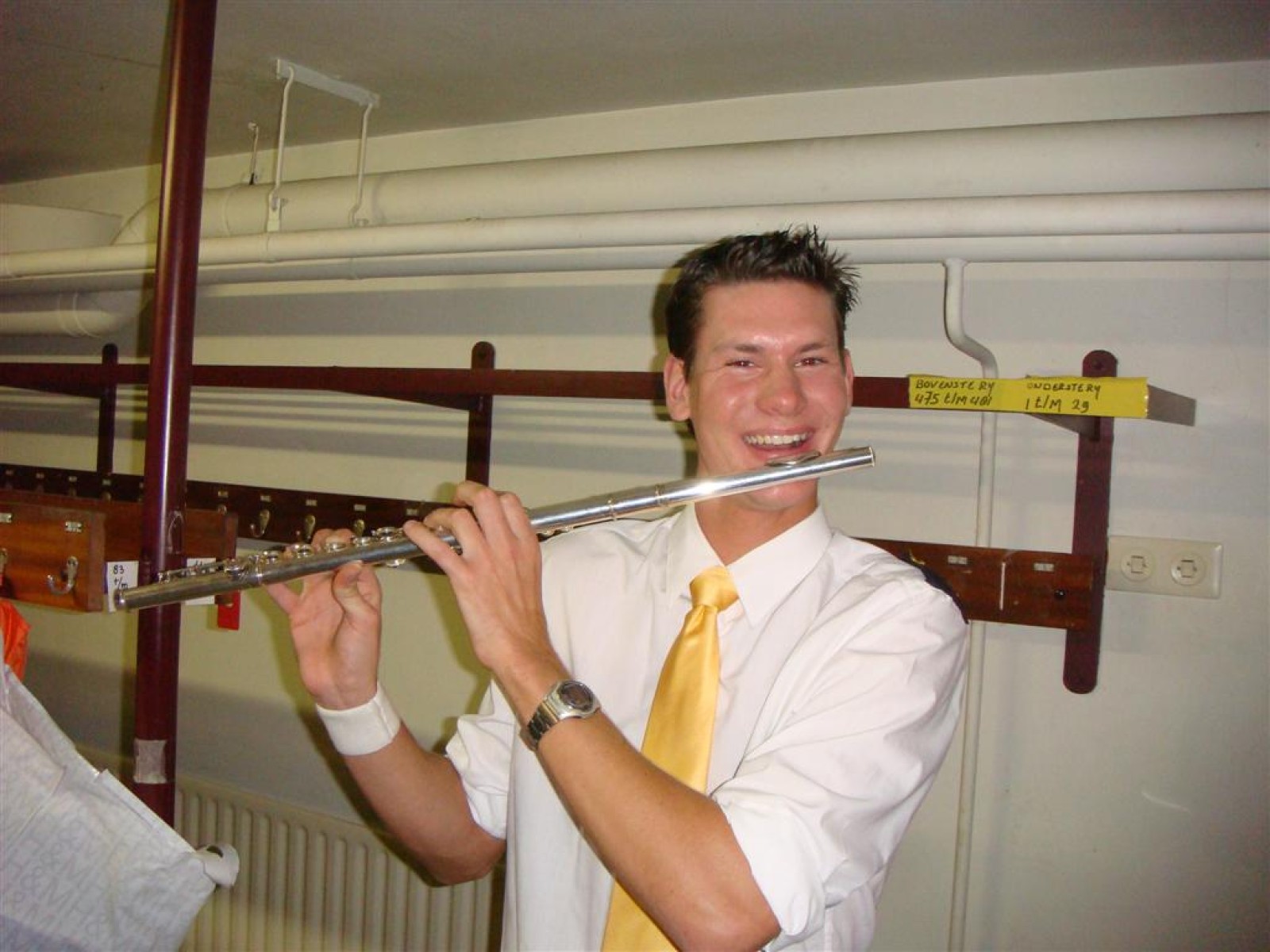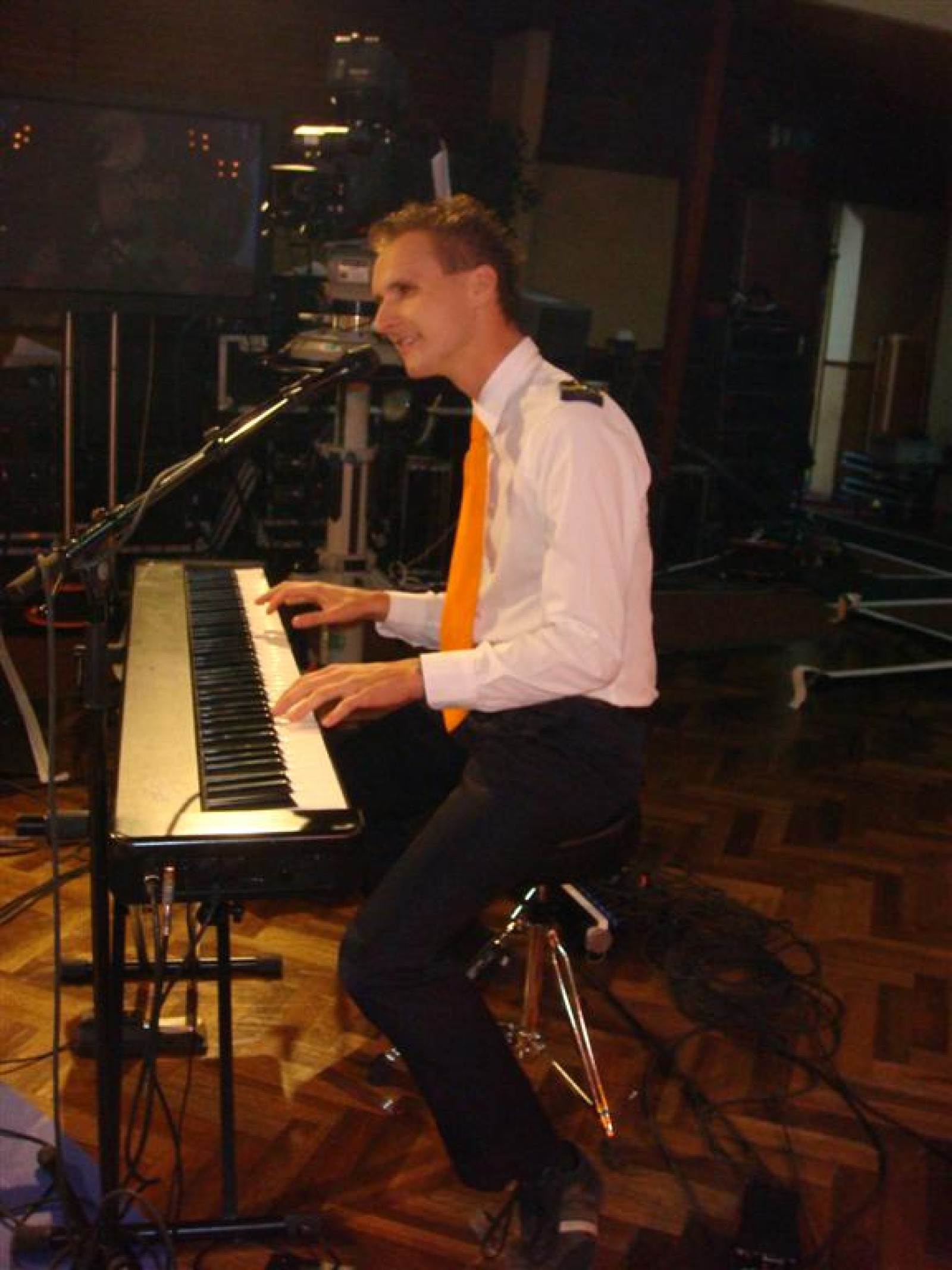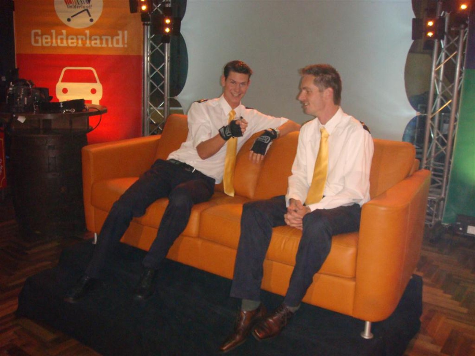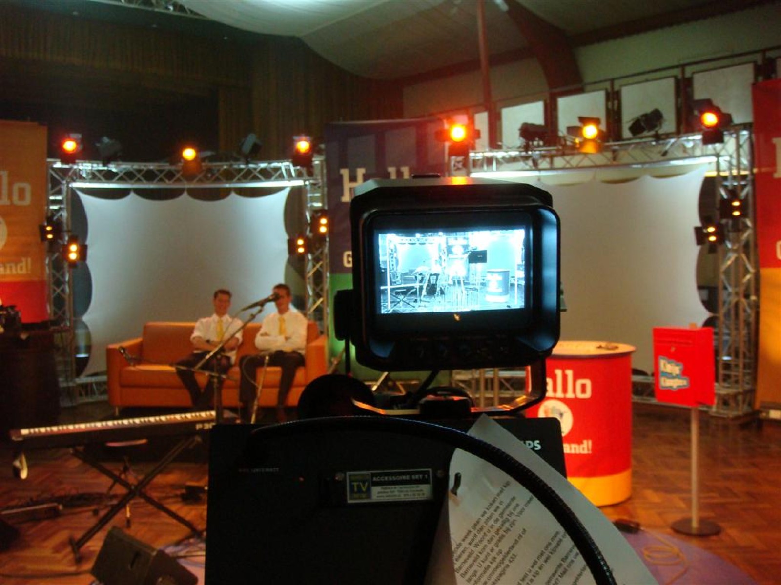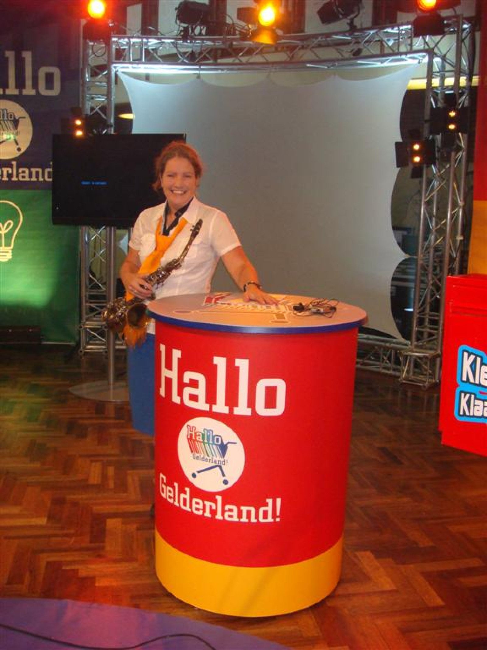 Hallo Gelderland is dit seizoen ‘on tour’, wat betekent dat ze naar de mensen toe gaan. Dit resulteerde vanavond in een gezellige opname op lokatie in het Wapen van Bemmel. En wij vond het natuurlijk superleuk toen ze ons vroegen om de tune te spelen. Dus zo stonden we om vijf uur al klaar voor de soundcheck, welke na de broodjes, grime en repetitie plaats vond. En de Deurdweilers zouden de Deurdweilers niet zijn, als ze niet even met de presentatoren Irene en Rob op de foto gingen. Ook werden nog even alle posities voorgetest, achter de testtafel, op de bank, achter de camera. Check, de opnames kunnen beginnen!