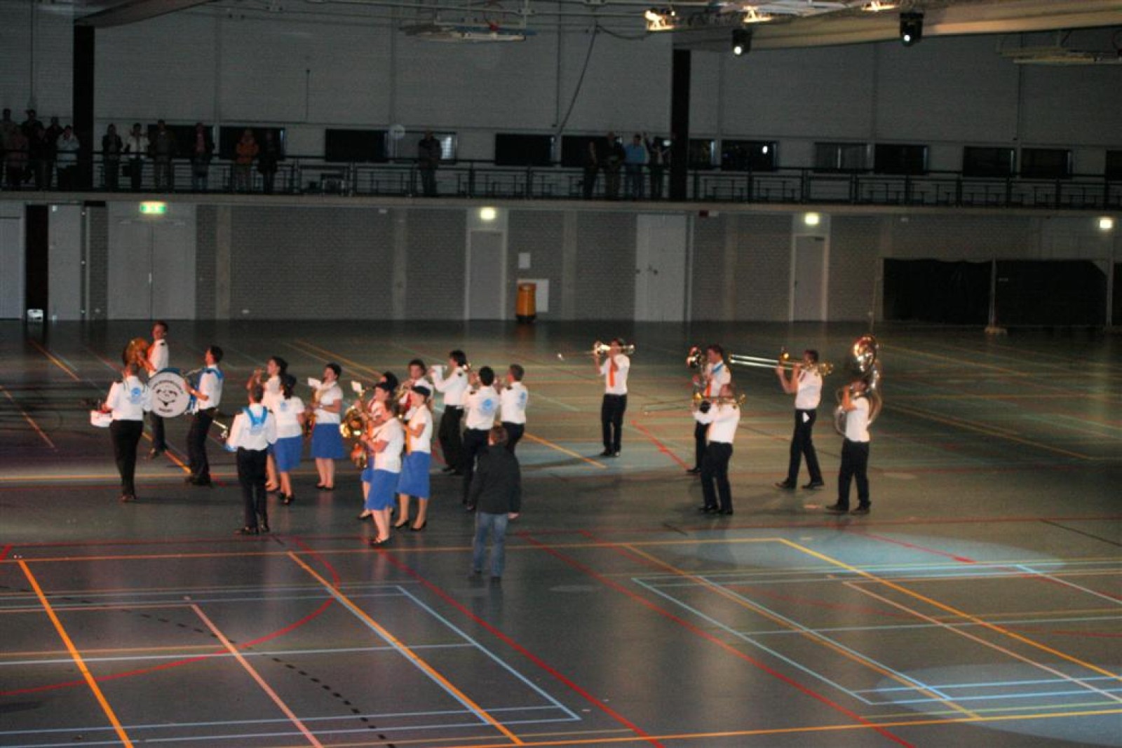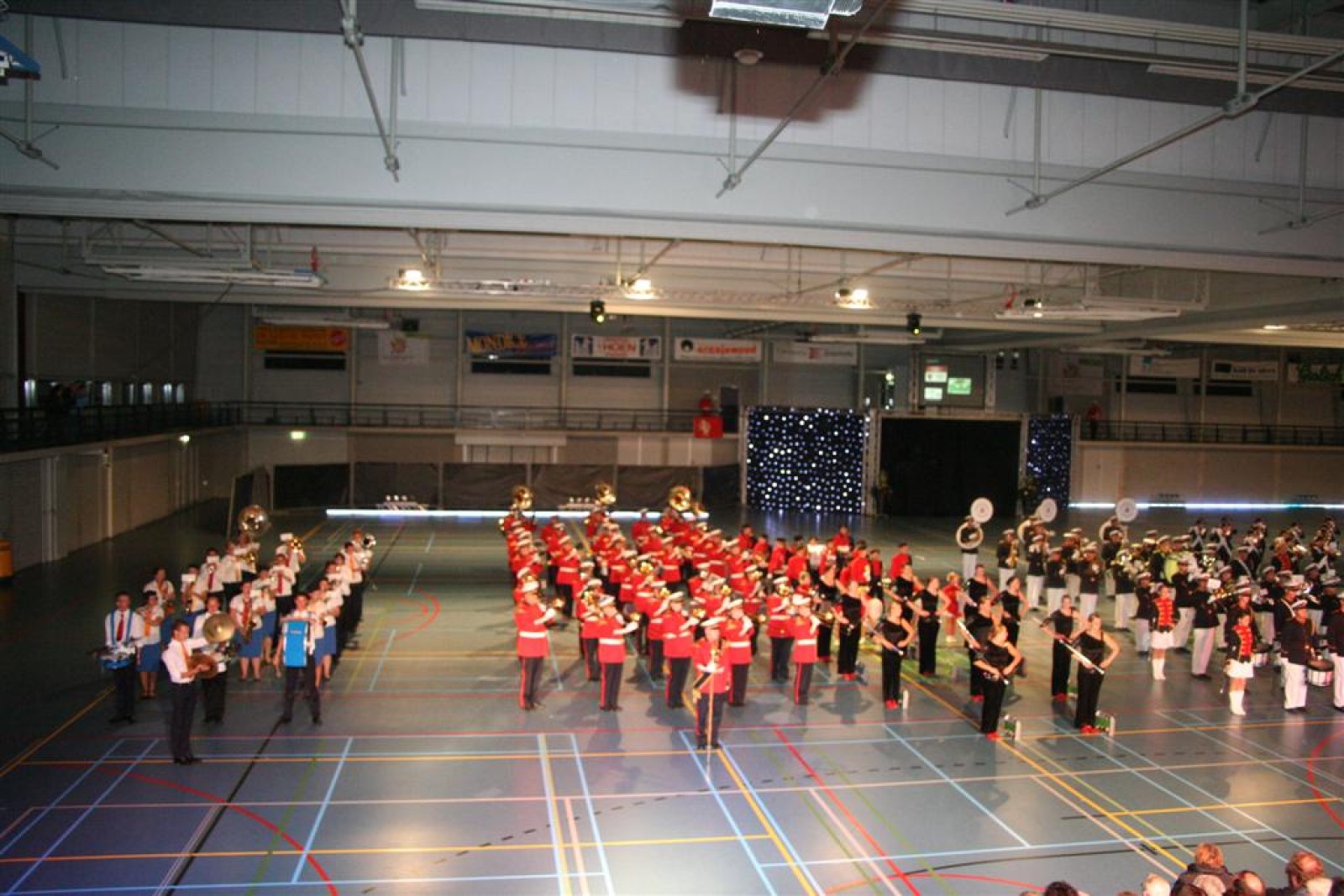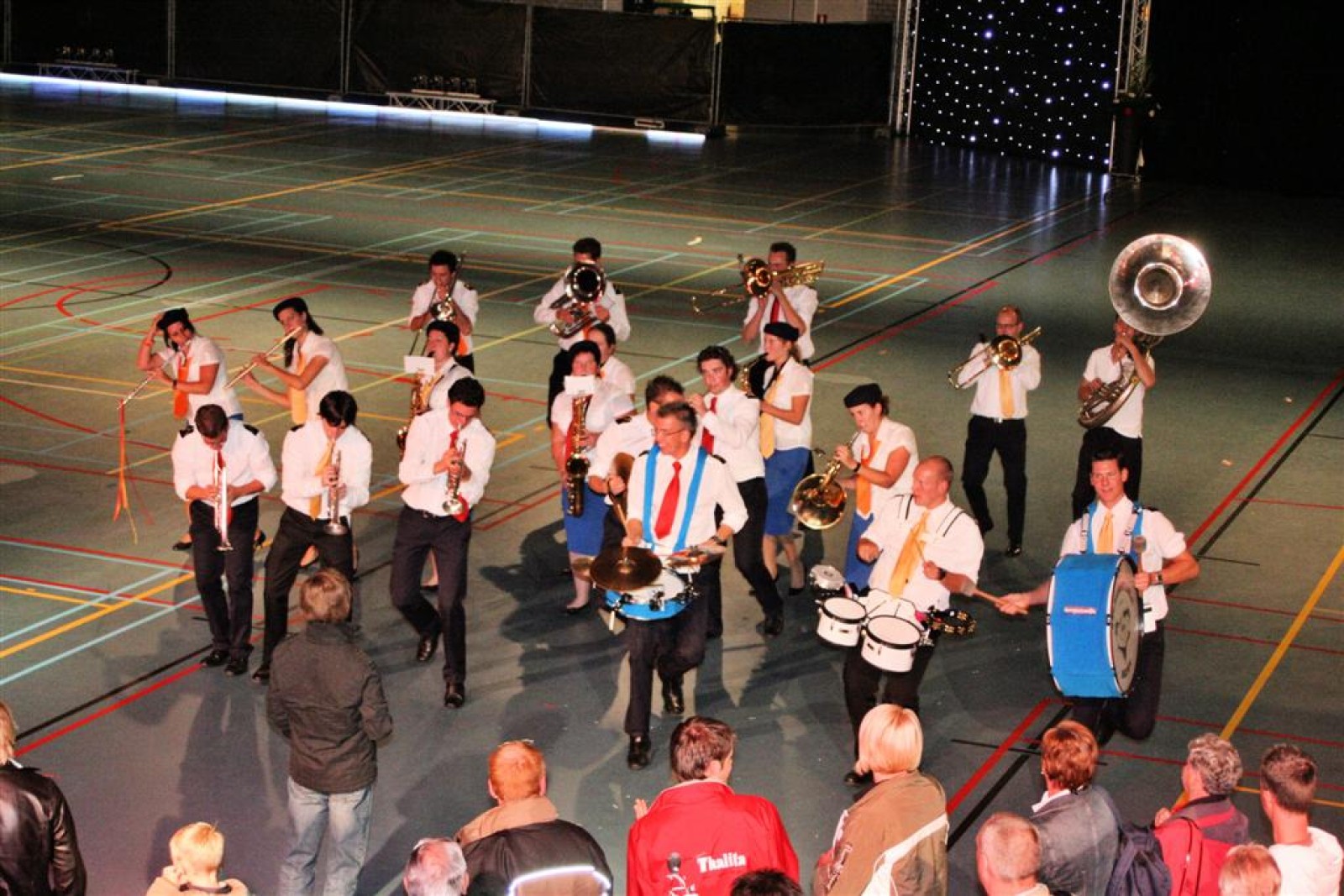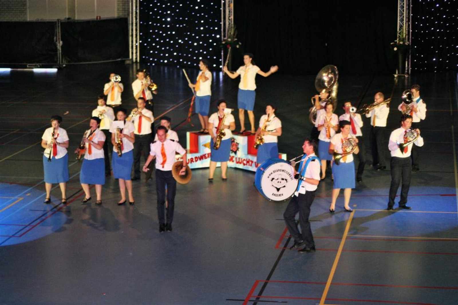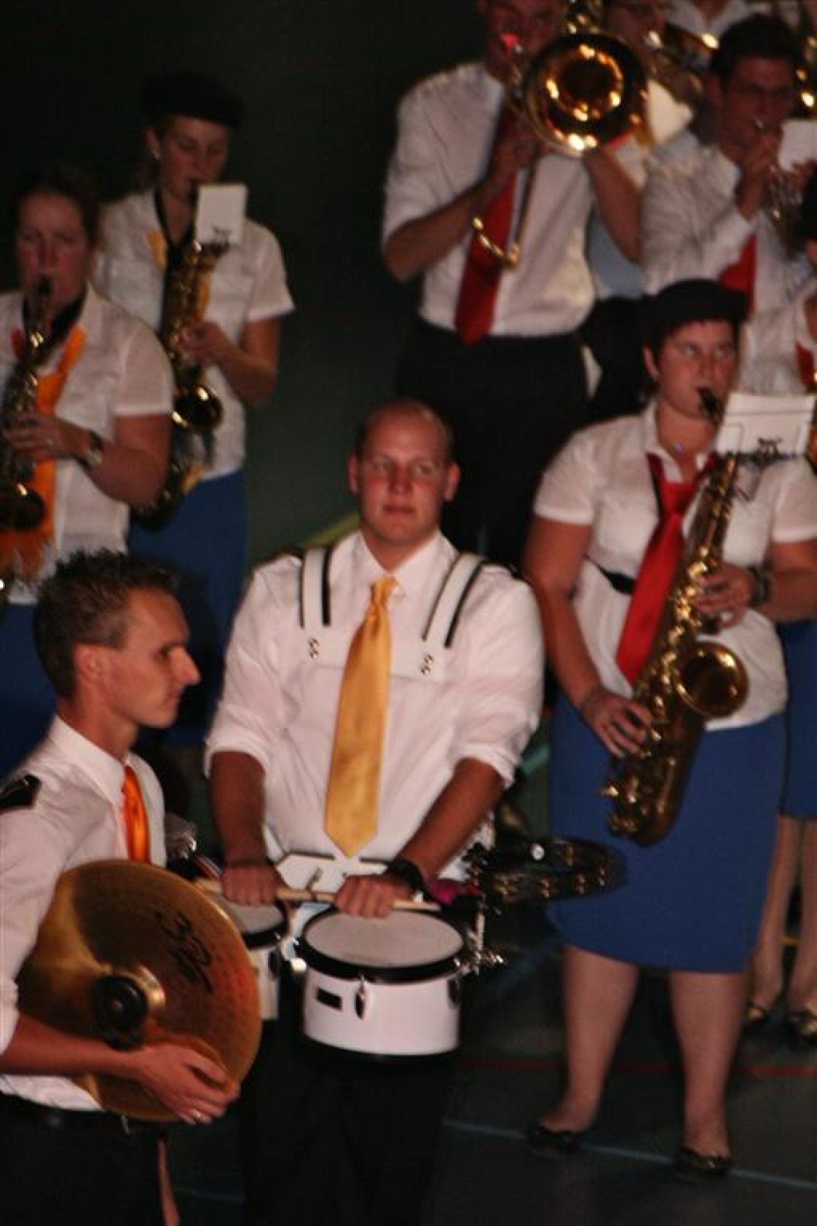 Wij voelden ons eerst wel een beetje klein, omdat alle andere orkesten echt heel veel leden hadden. Eenmaal spelend merkten we dat het met het geluid goed zat. En zo kregen we het publiek na enige aarzeling toch in beweging, en klapten en zwaaiden ze vrolijk met ons mee. Voor het vliegtuig kregen we onze afkondiging, en dat was voor ons het teken om het vliegtuig te laten opstijgen en later weer te laten landen. Nog ff springen en daarna afmarcheren met Hallo hallo, waarbij we even langs beide tribunes liepen om het applaus in ontvangst te nemen. Zo hee, dit was gaaf om te doen!
