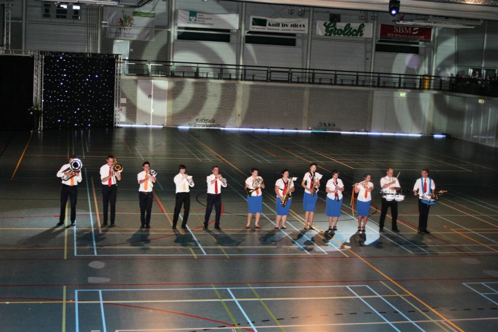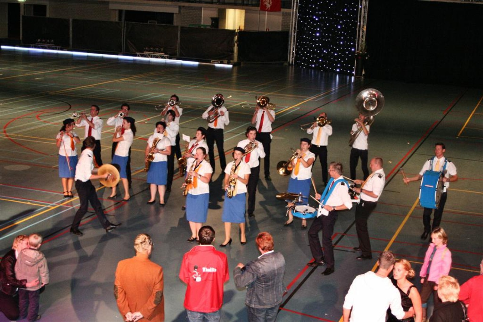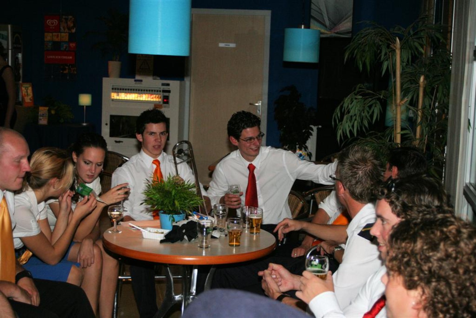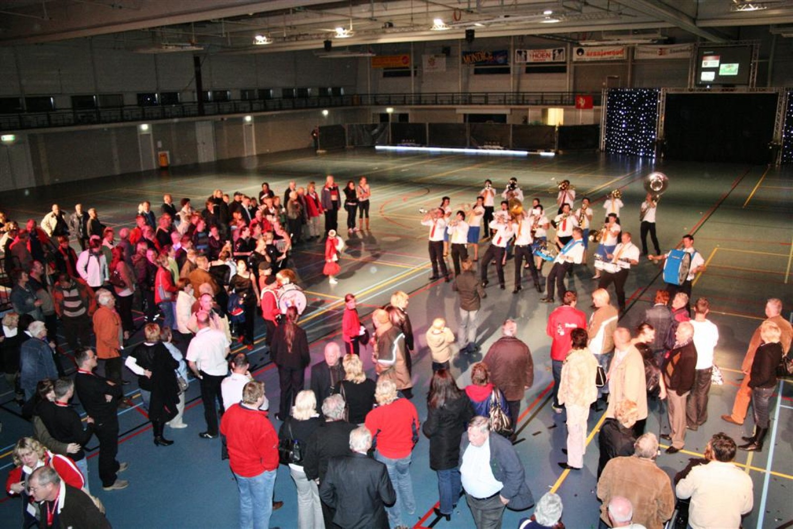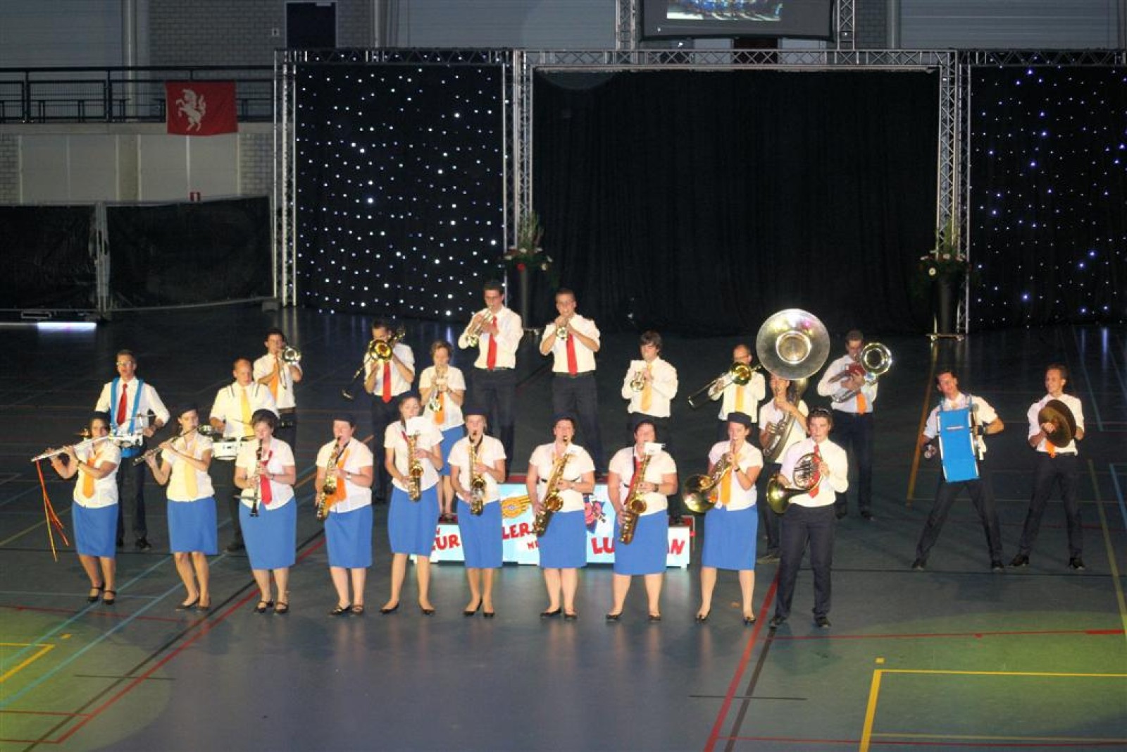 Wij voelden ons eerst wel een beetje klein, omdat alle andere orkesten echt heel veel leden hadden. Eenmaal spelend merkten we dat het met het geluid goed zat. En zo kregen we het publiek na enige aarzeling toch in beweging, en klapten en zwaaiden ze vrolijk met ons mee. Voor het vliegtuig kregen we onze afkondiging, en dat was voor ons het teken om het vliegtuig te laten opstijgen en later weer te laten landen. Nog ff springen en daarna afmarcheren met Hallo hallo, waarbij we even langs beide tribunes liepen om het applaus in ontvangst te nemen. Zo hee, dit was gaaf om te doen!