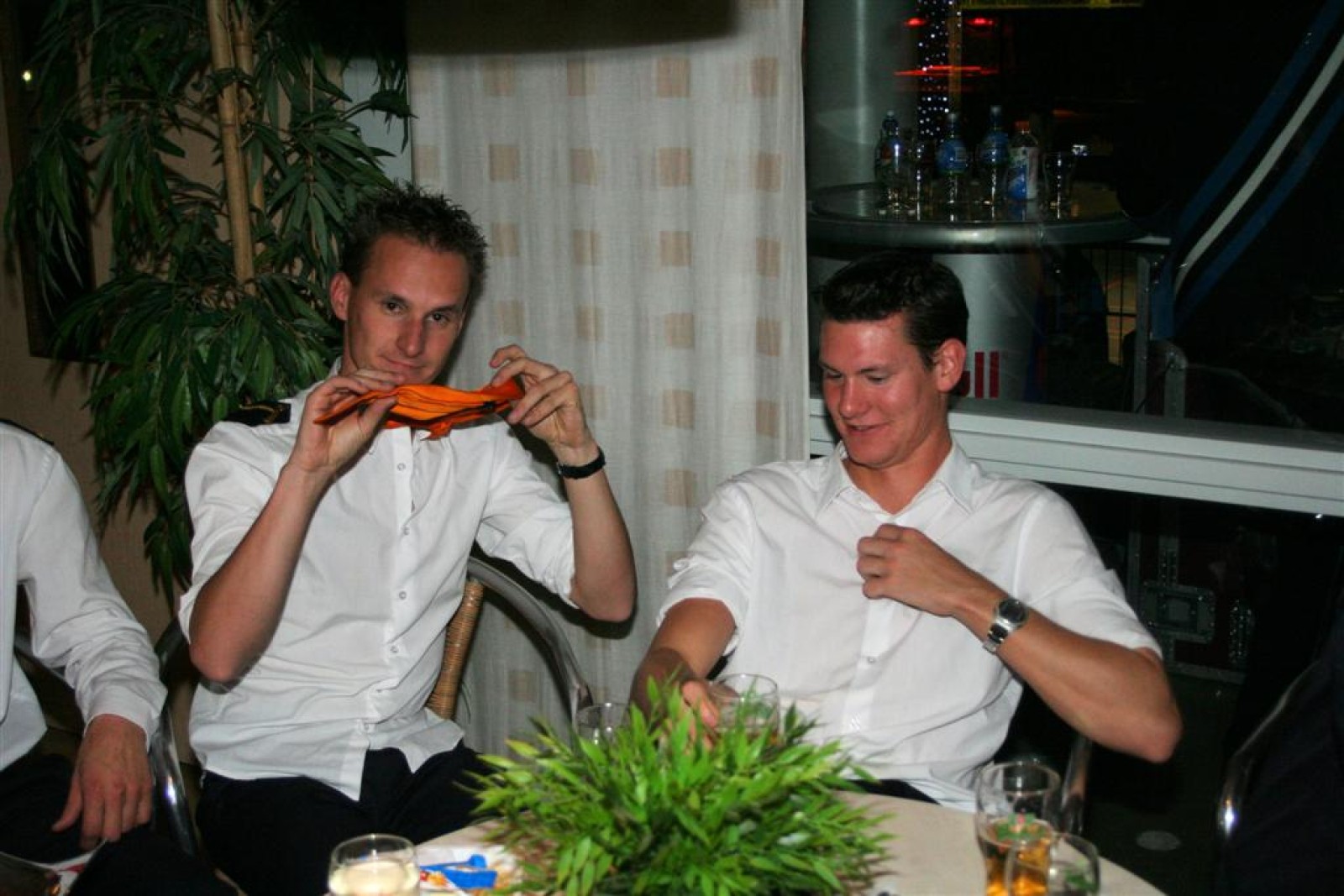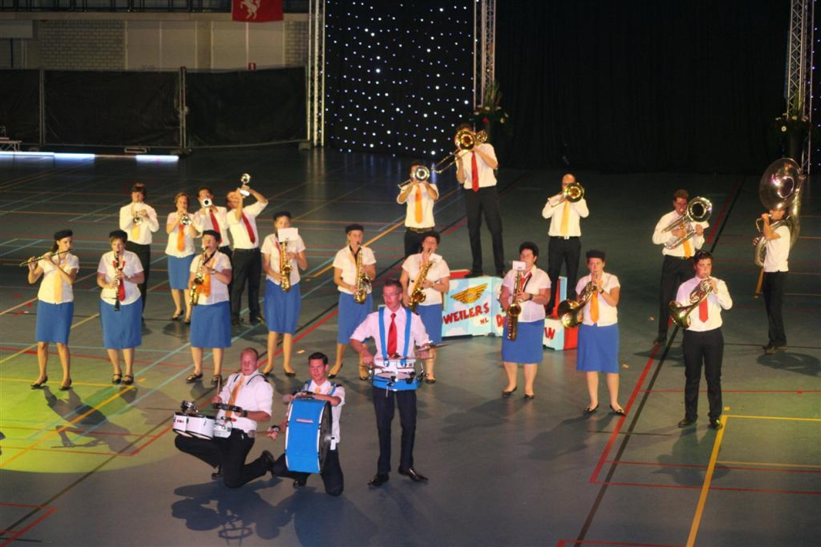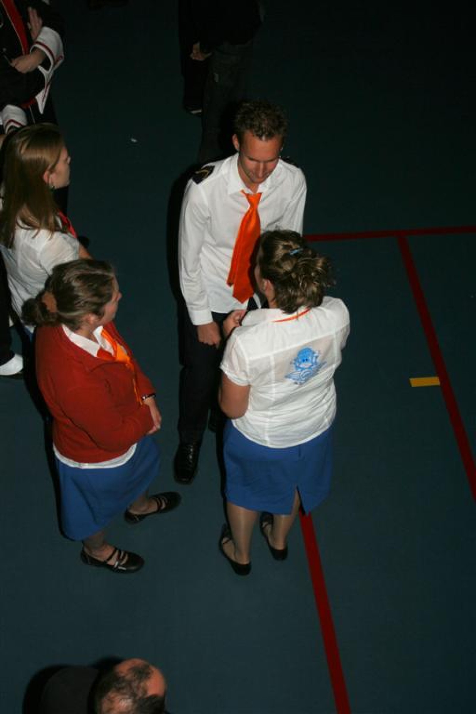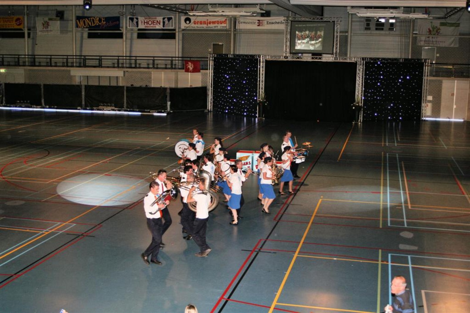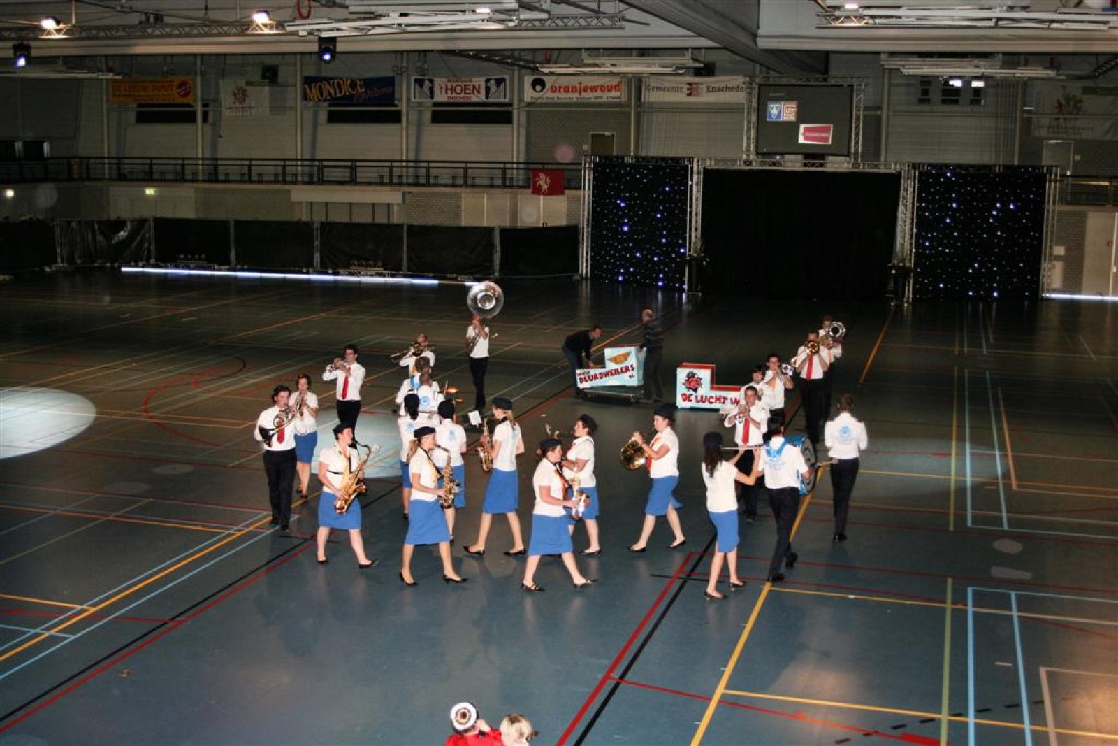 Wij voelden ons eerst wel een beetje klein, omdat alle andere orkesten echt heel veel leden hadden. Eenmaal spelend merkten we dat het met het geluid goed zat. En zo kregen we het publiek na enige aarzeling toch in beweging, en klapten en zwaaiden ze vrolijk met ons mee. Voor het vliegtuig kregen we onze afkondiging, en dat was voor ons het teken om het vliegtuig te laten opstijgen en later weer te laten landen. Nog ff springen en daarna afmarcheren met Hallo hallo, waarbij we even langs beide tribunes liepen om het applaus in ontvangst te nemen. Zo hee, dit was gaaf om te doen!