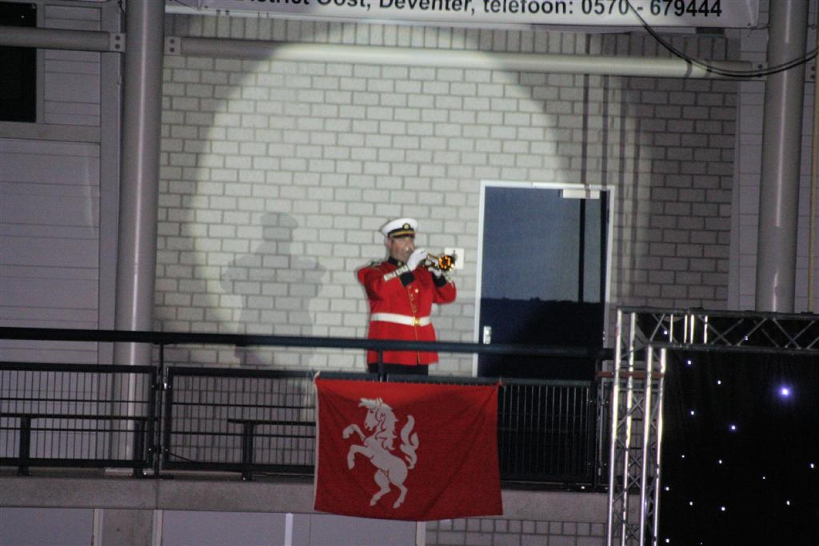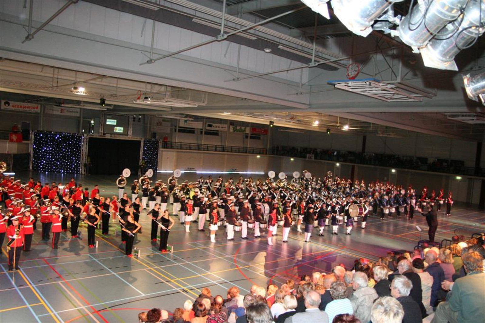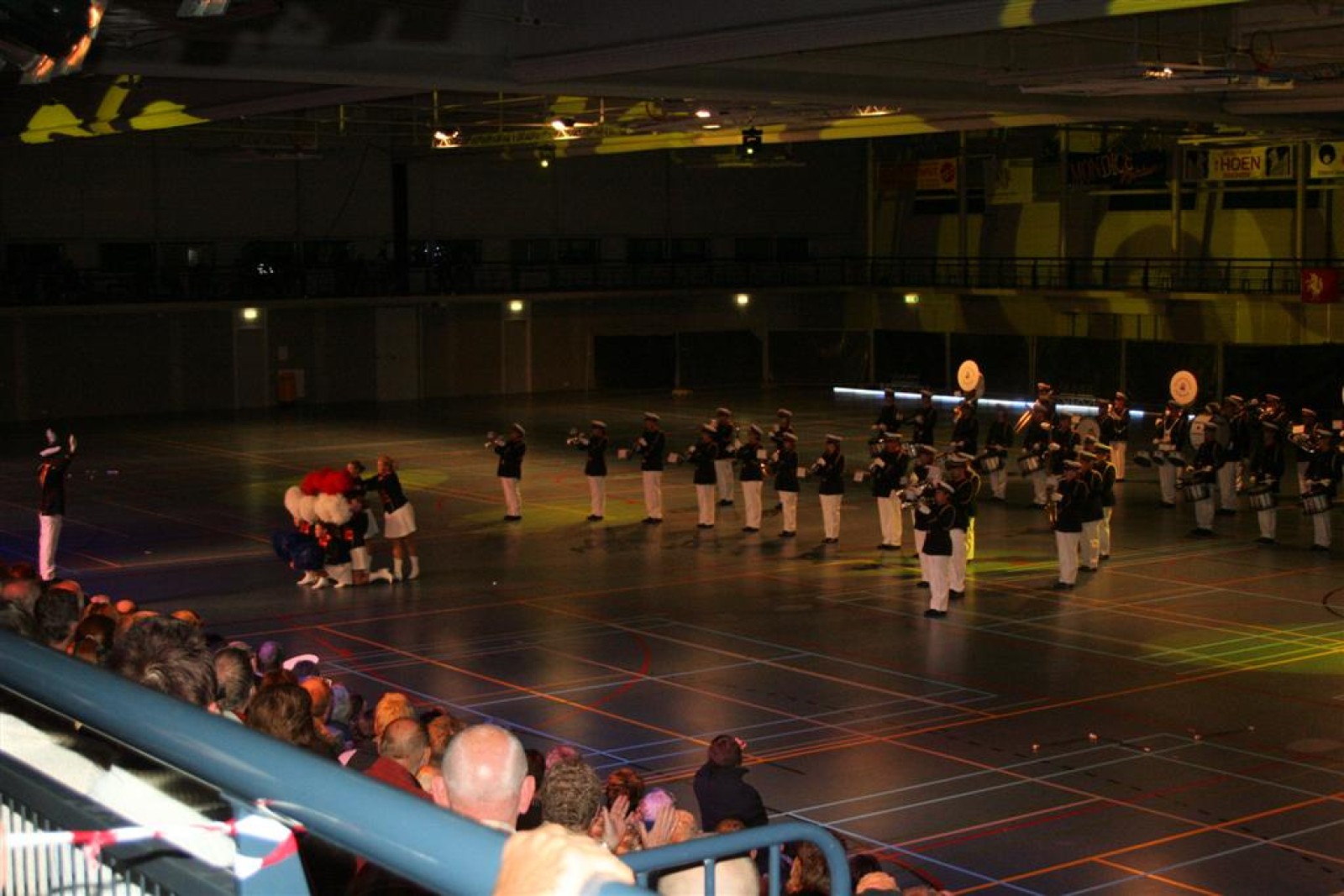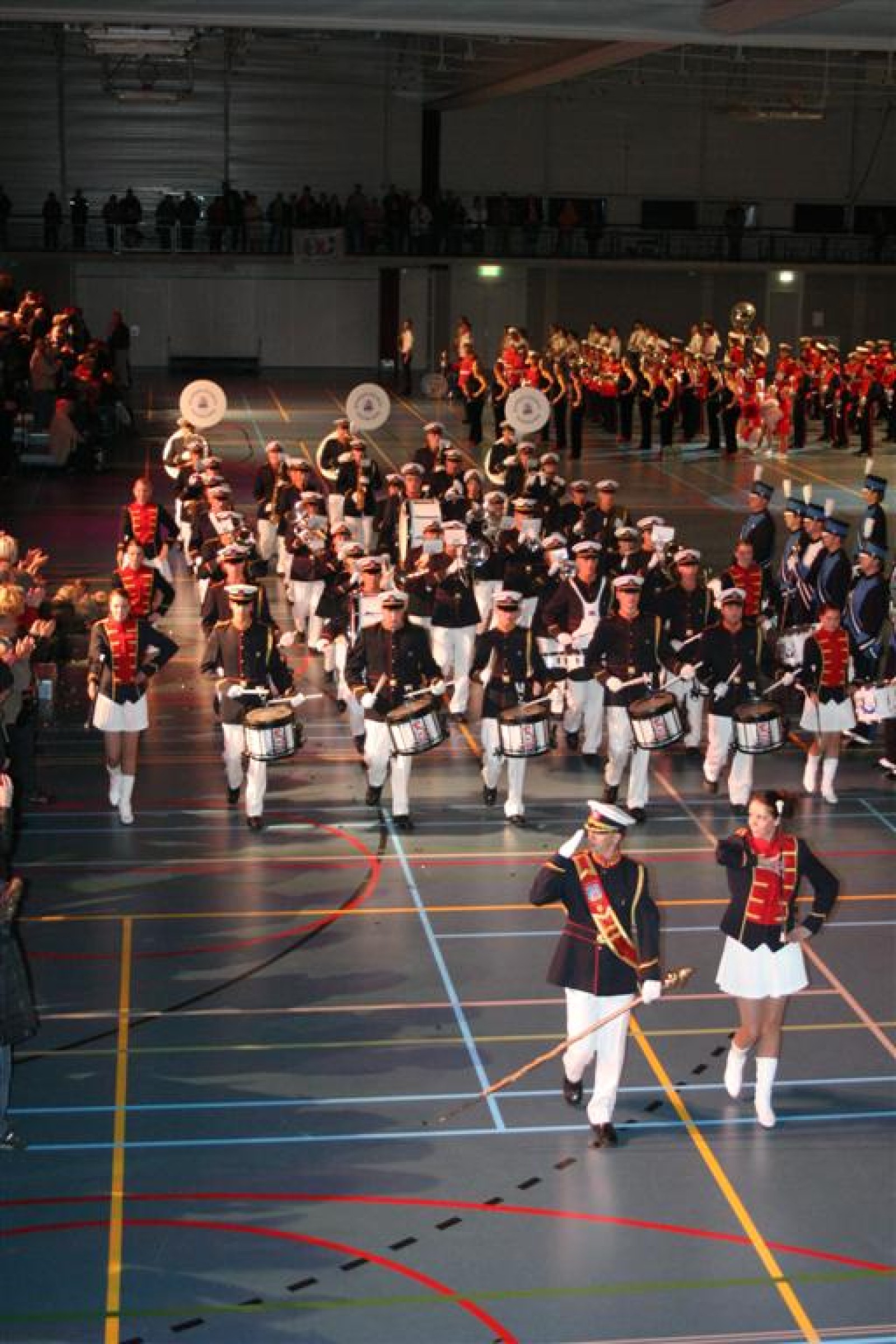 Samen spelen we Highland Cathedral en ik vind het gaaf om te merken dat met zoveel muzikanten een crescendo echt een crescendo is. Na het taptoesignaal spelen we Wilhelmus en dan marcheren de korpsen om de beurt af. Alle tambourmaitres groeten Tijn en hij groet natuurlijk terug! Wij zijn als laatste en gaan alvast klaar staan. ‘Deurdweilers, are you ready?’ ‘Sir, yes, sir!’ En het publiek lacht weer! We marcheren met ’t dondert naar het midden van de hal en springen dan uiteen om nog een feestje te bouwen! Menigeen blijft staan om nog even met ons mee te dansen! Het was een geslaagde avond!