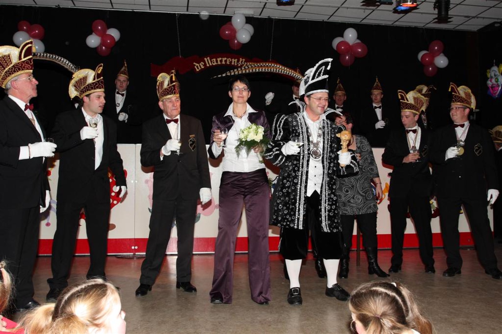 Er werd een groot bierfust de zaal ingereden en deze werd later omhoog getakeld. Zijn het ze? Nee, Youri en Lenny waren onderdeel van een prachtig geregisseerde afleidingsmanoeuvre. Vanuit het fust kwam Johan Wagener tevoorschijn. Samen met zijn vrouw zullen zij de komende twee jaar over het Keujesgat regeren.