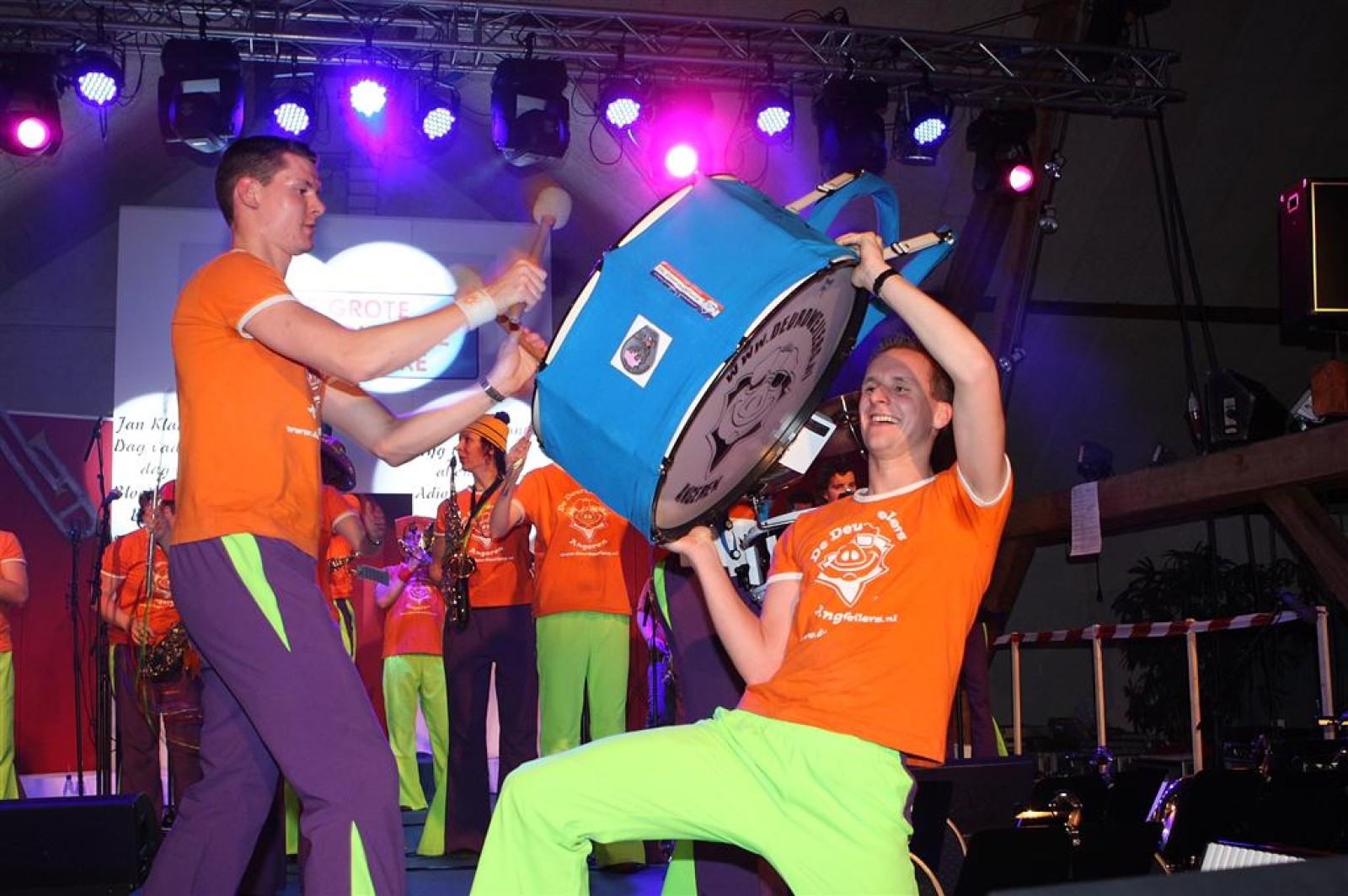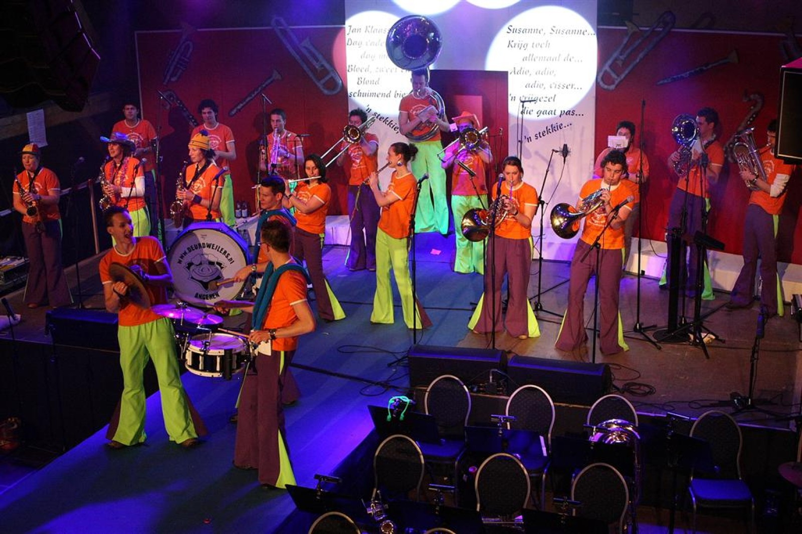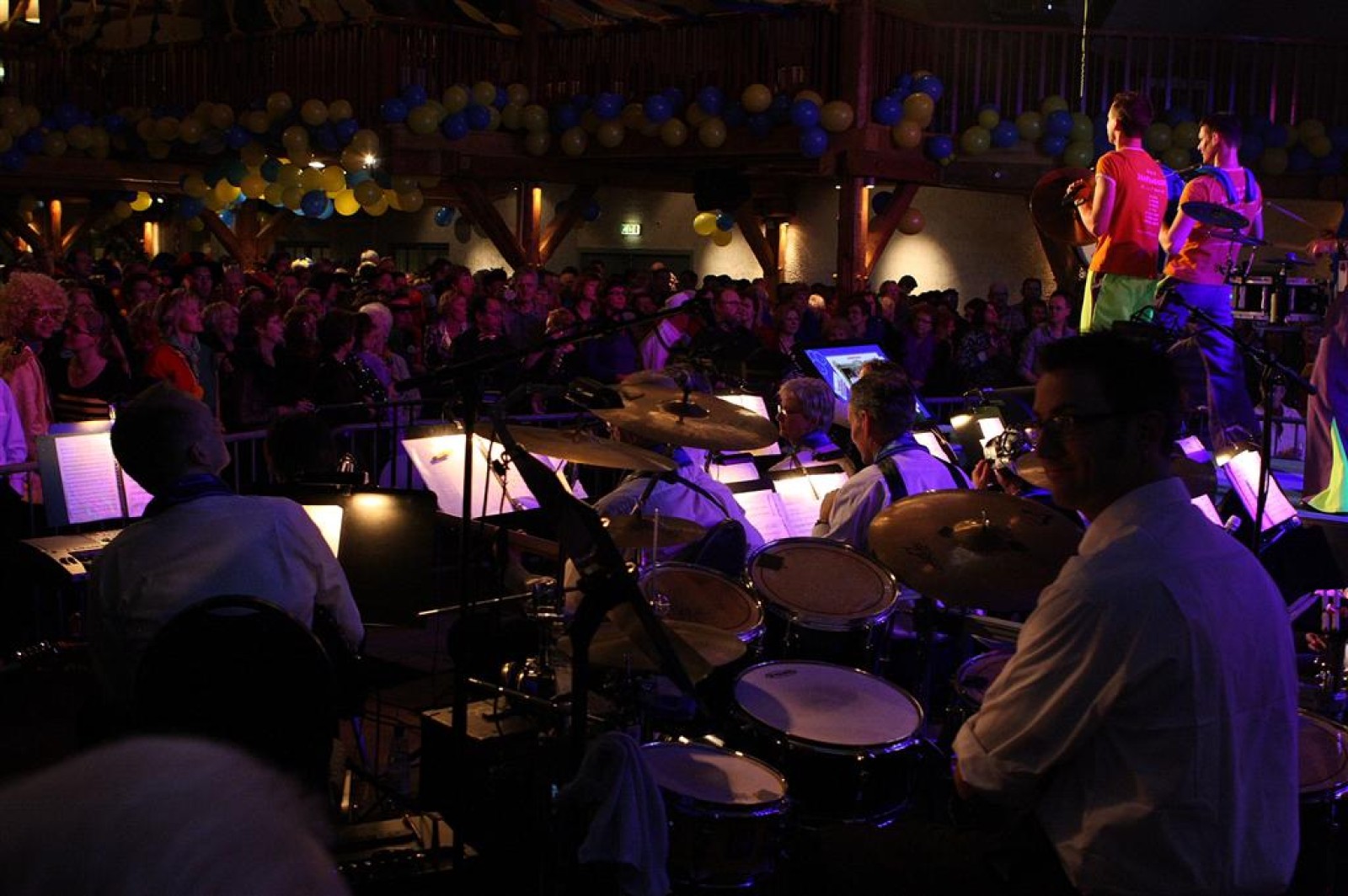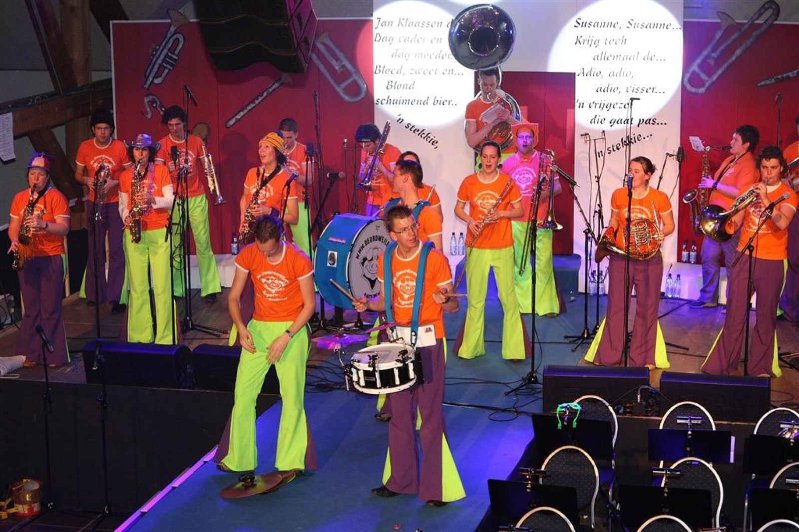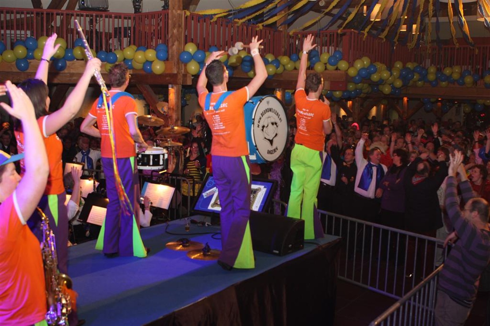 Halverwege onze set zetten we Ein prosit in, zodat we even naar lucht konden happen en van een welverdiend biertje konden genieten. Geef ons maar een potje bier, dan hebben wij veel plezier! Daarna gauw verder om de zaal op zijn kop te krijgen. Tussendoor nog even een gevoelige noot met Zij gelooft in mij, en aan het eind in de polonaise de zaal door! Het publiek maakte al applaudiserend plaats voor ons, zodat we door een haag van mensen de zaal konden verlaten. Het was een geslaagd optreden.