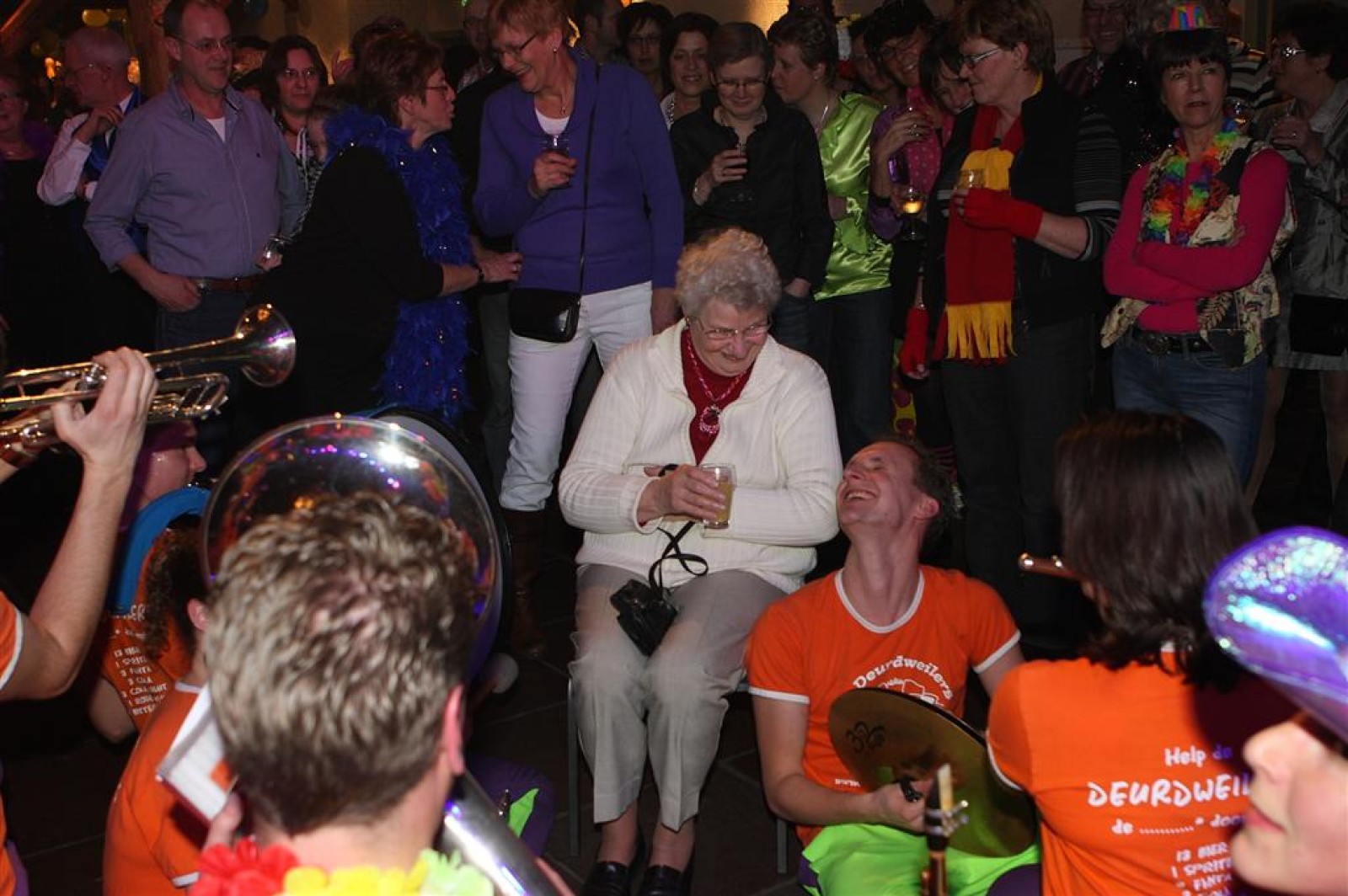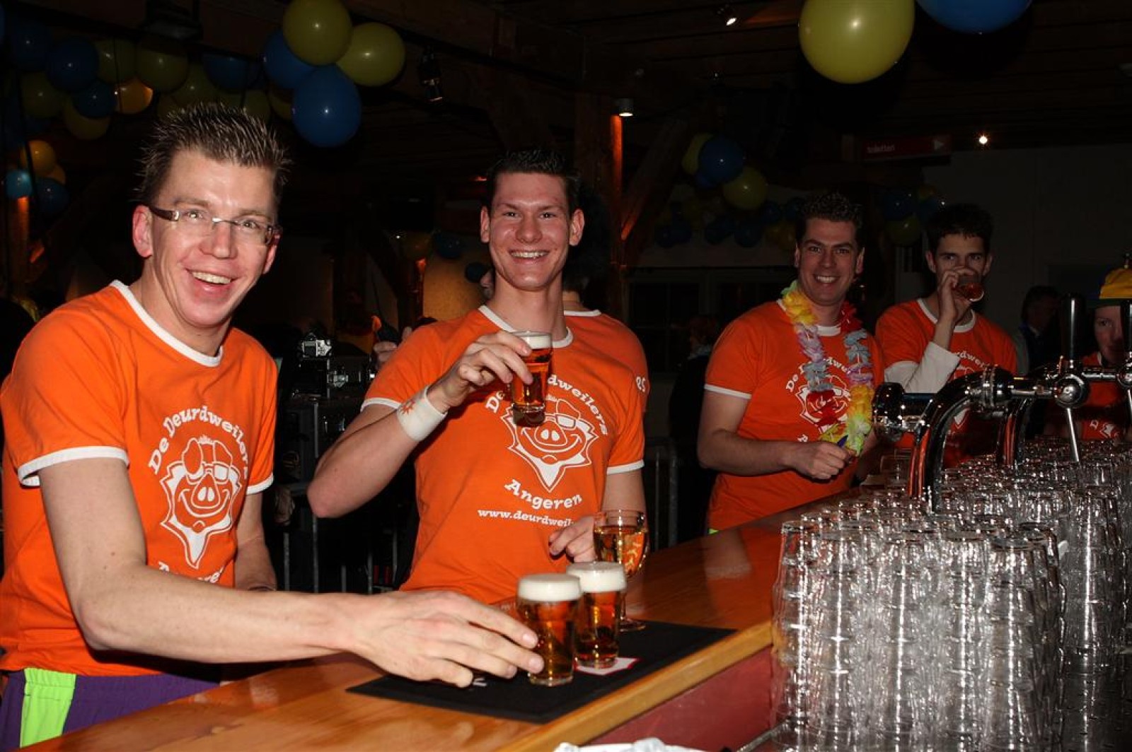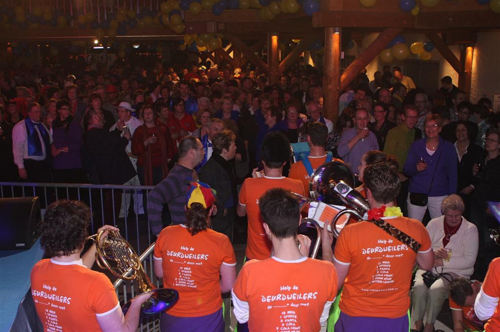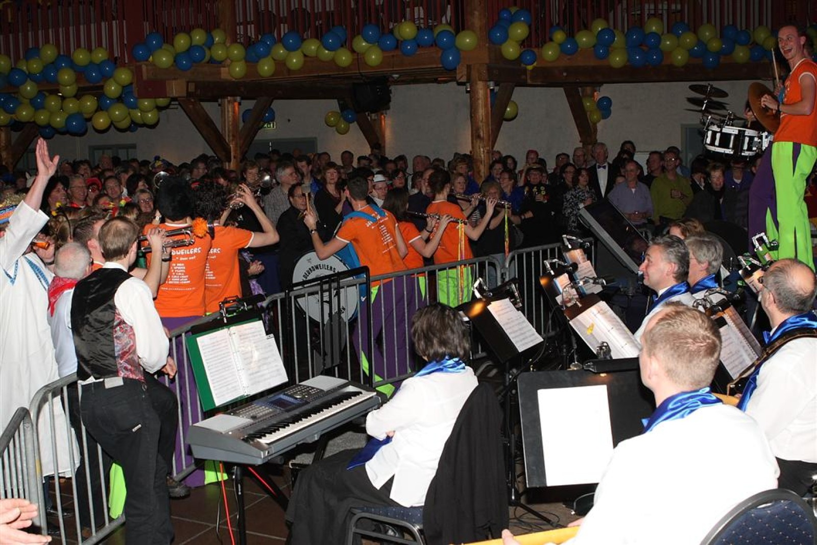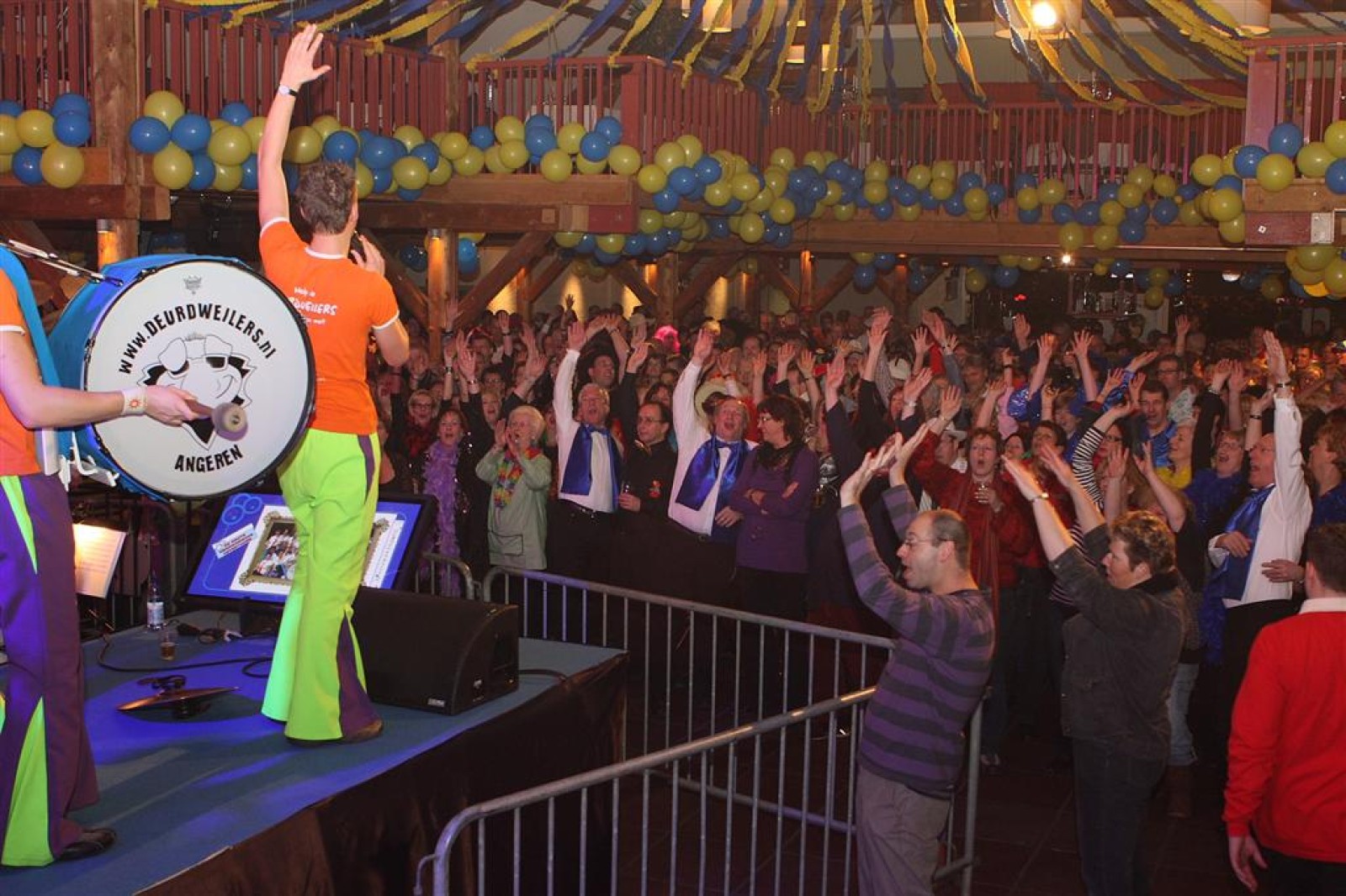 Halverwege onze set zetten we Ein prosit in, zodat we even naar lucht konden happen en van een welverdiend biertje konden genieten. Geef ons maar een potje bier, dan hebben wij veel plezier! Daarna gauw verder om de zaal op zijn kop te krijgen. Tussendoor nog even een gevoelige noot met Zij gelooft in mij, en aan het eind in de polonaise de zaal door! Het publiek maakte al applaudiserend plaats voor ons, zodat we door een haag van mensen de zaal konden verlaten. Het was een geslaagd optreden.