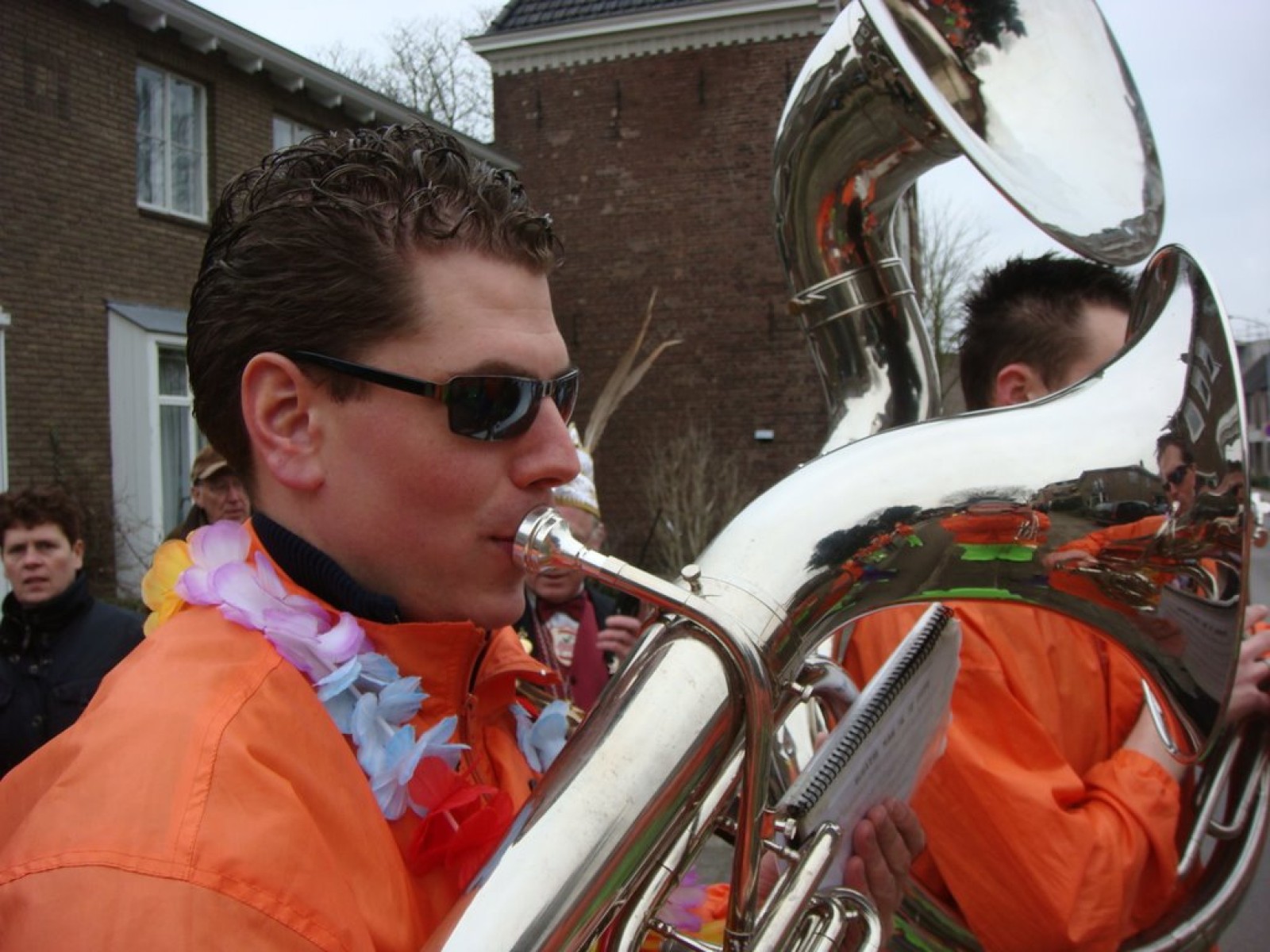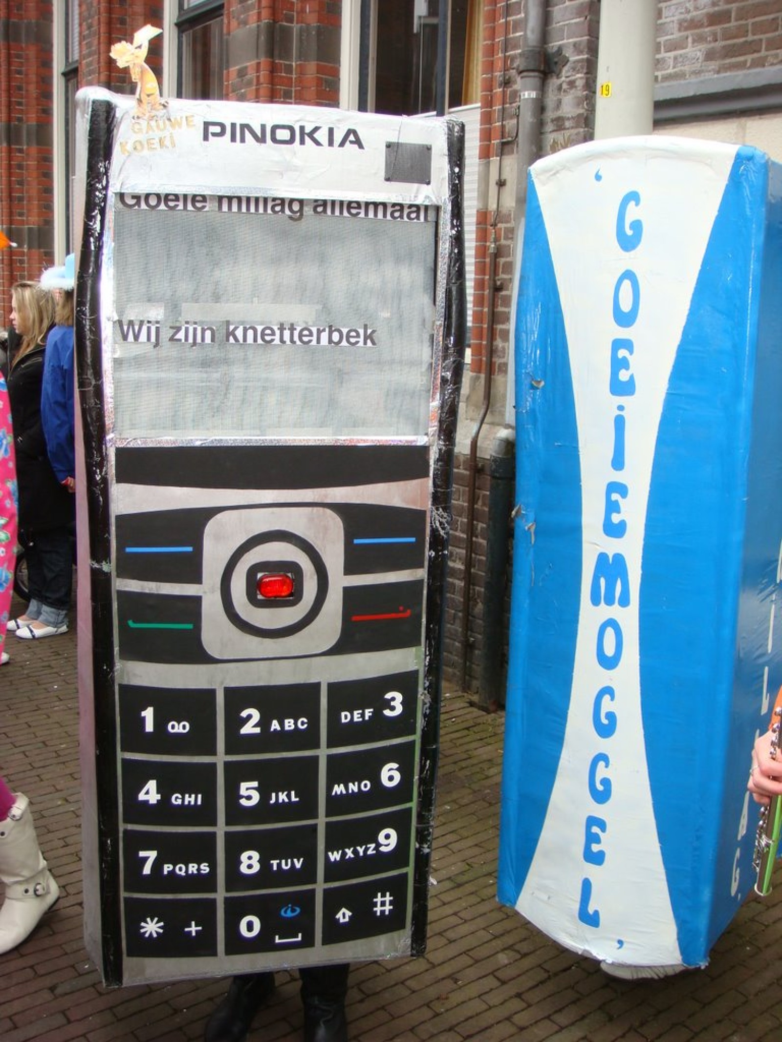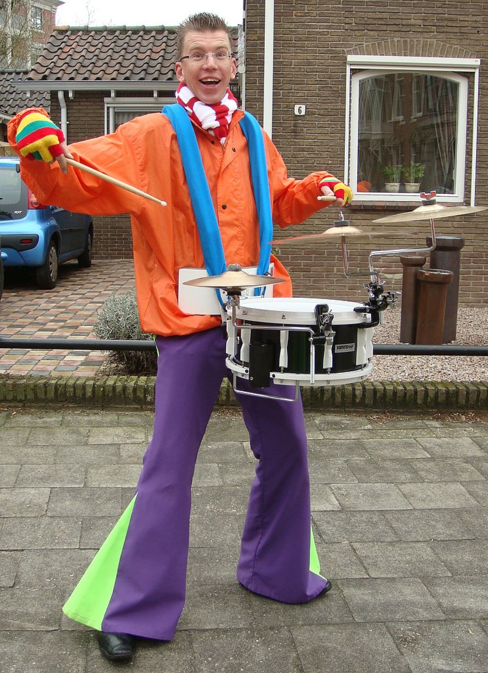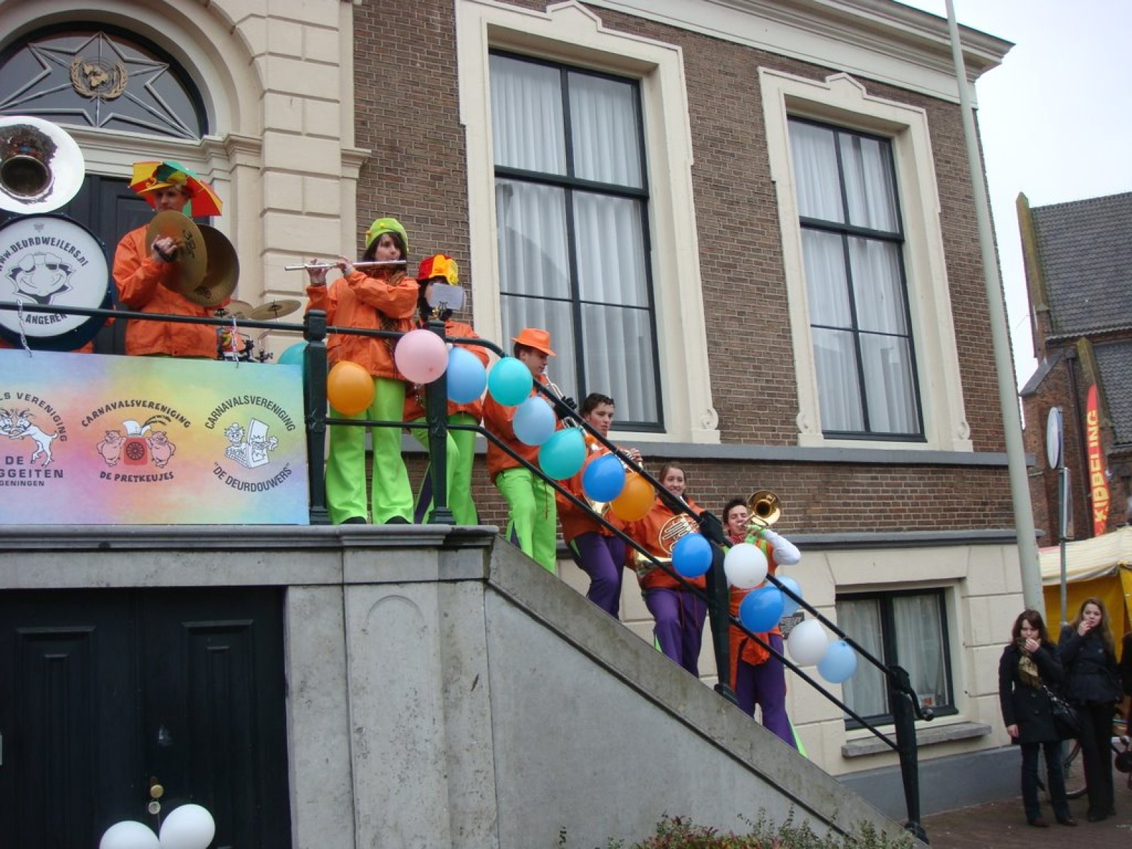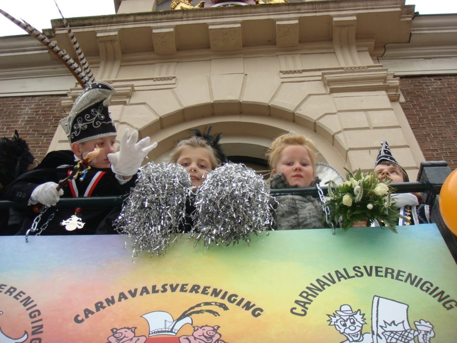 Bij binnenkomst waren er nog niet zoveel mensen. Als dat maar goed komt, dachten we nog, maar tijdens het spelen stroomde de zaal vol! Overal zagen we verkleedde mensen, die hun eerste biertje namen op de carnaval. Het publiek stond wel een beetje verder van het podium af dan de vorige keer, maar na een paar nummertjes spelen, hadden we elkaar toch gevonden. Zo hebben we samen met het publiek het interactieve repertoire tot een succes gemaakt. Tijdens Vlieg met me mee naar de regenboog werd flink mee gevlogen, een paar stoelen gingen de lucht in bij Schatje mag ik je foto en de wave werd (na uitleg van Tijn) weer ingezet van vooruit de zaal tot achterin bij de bar.