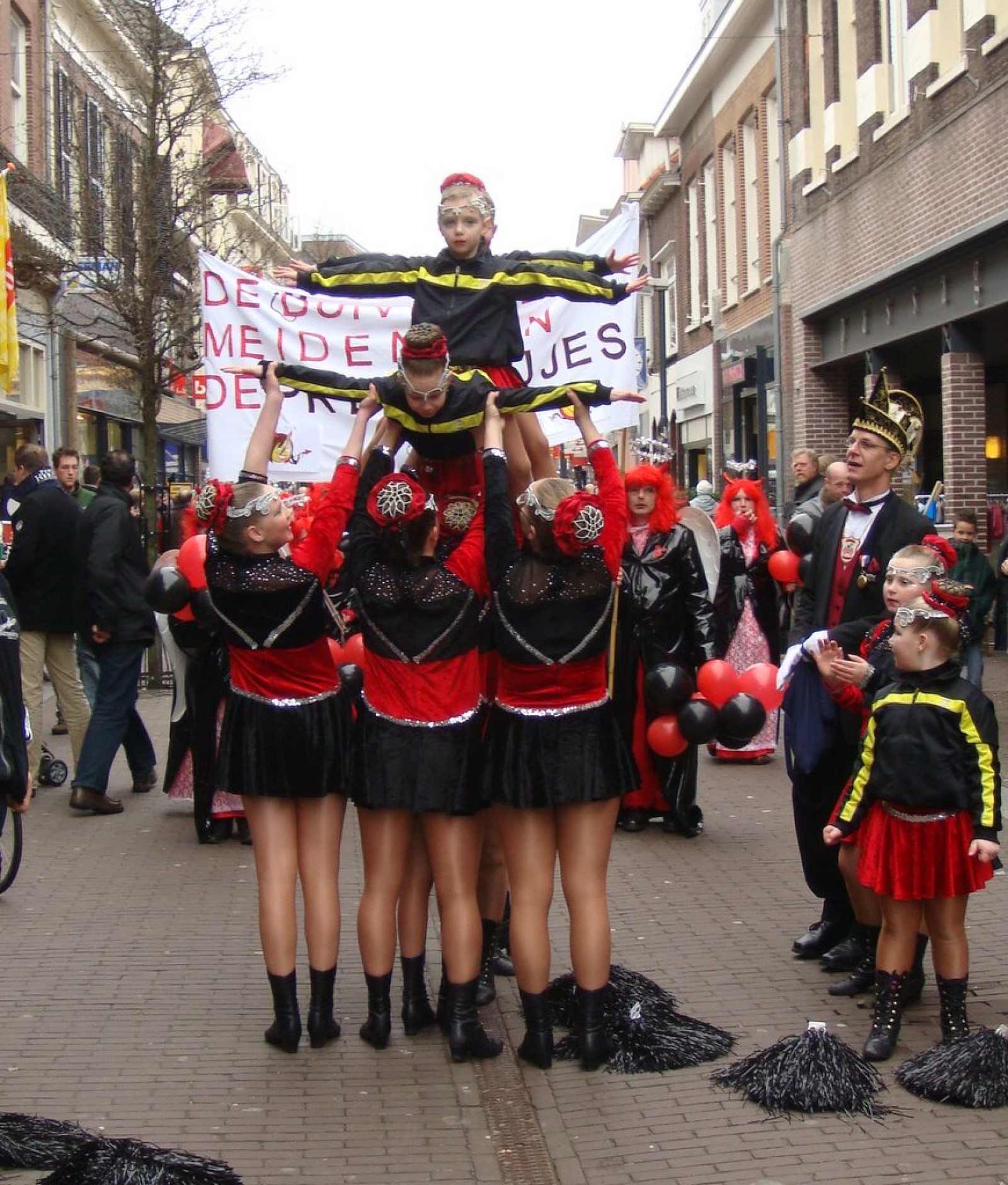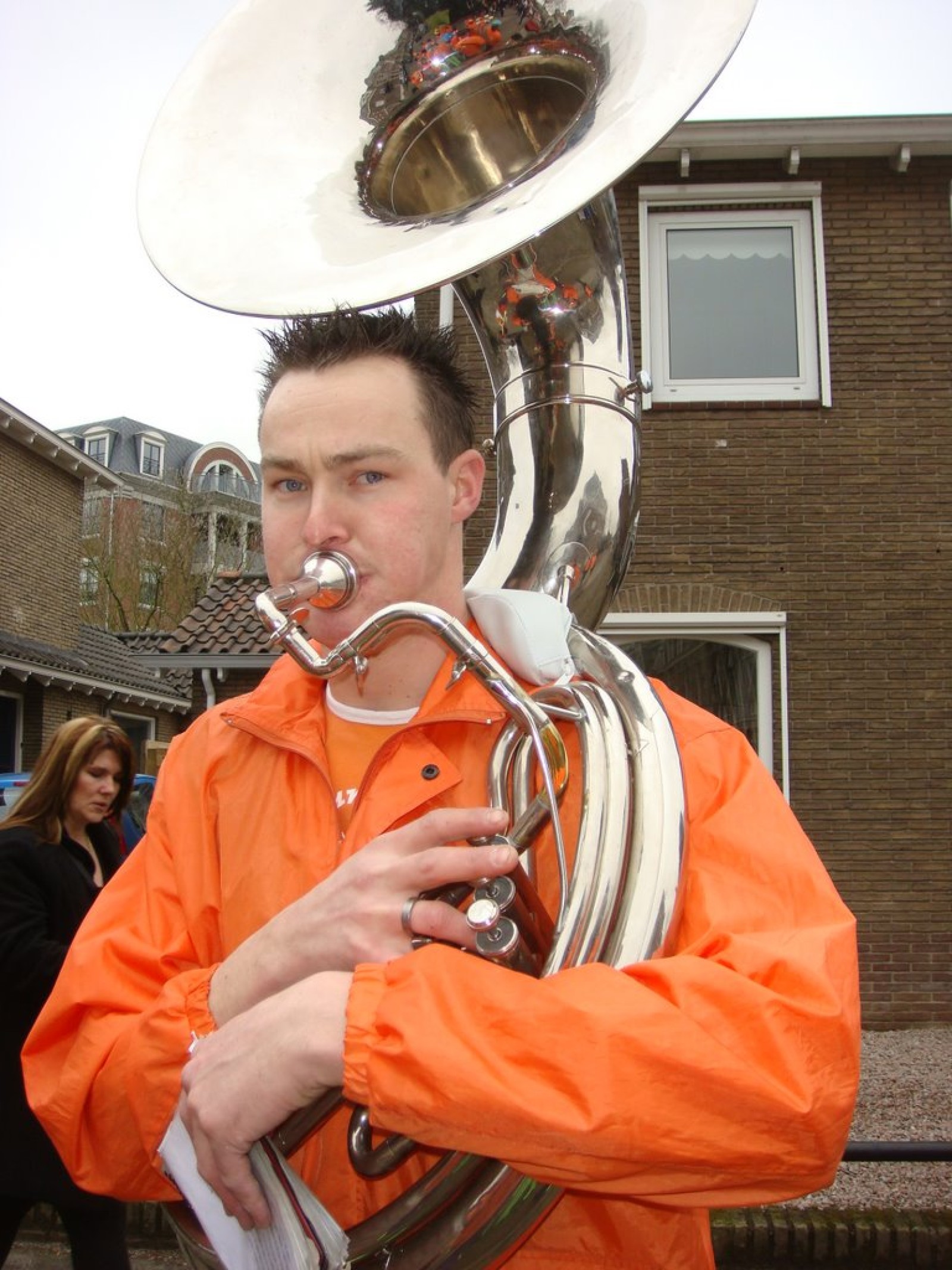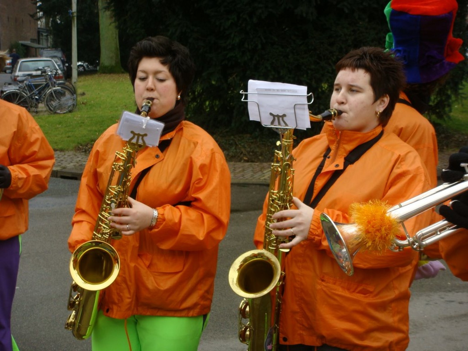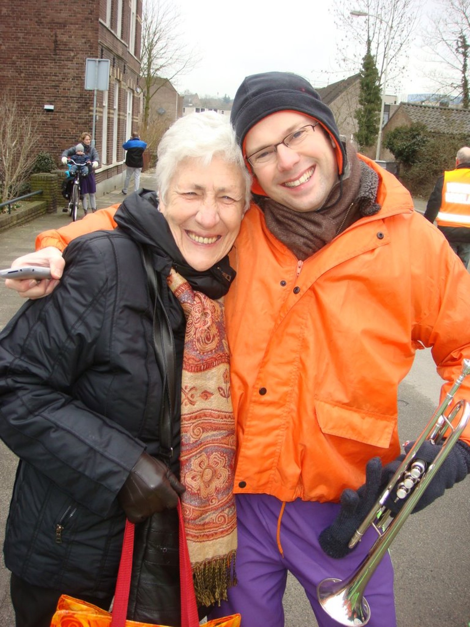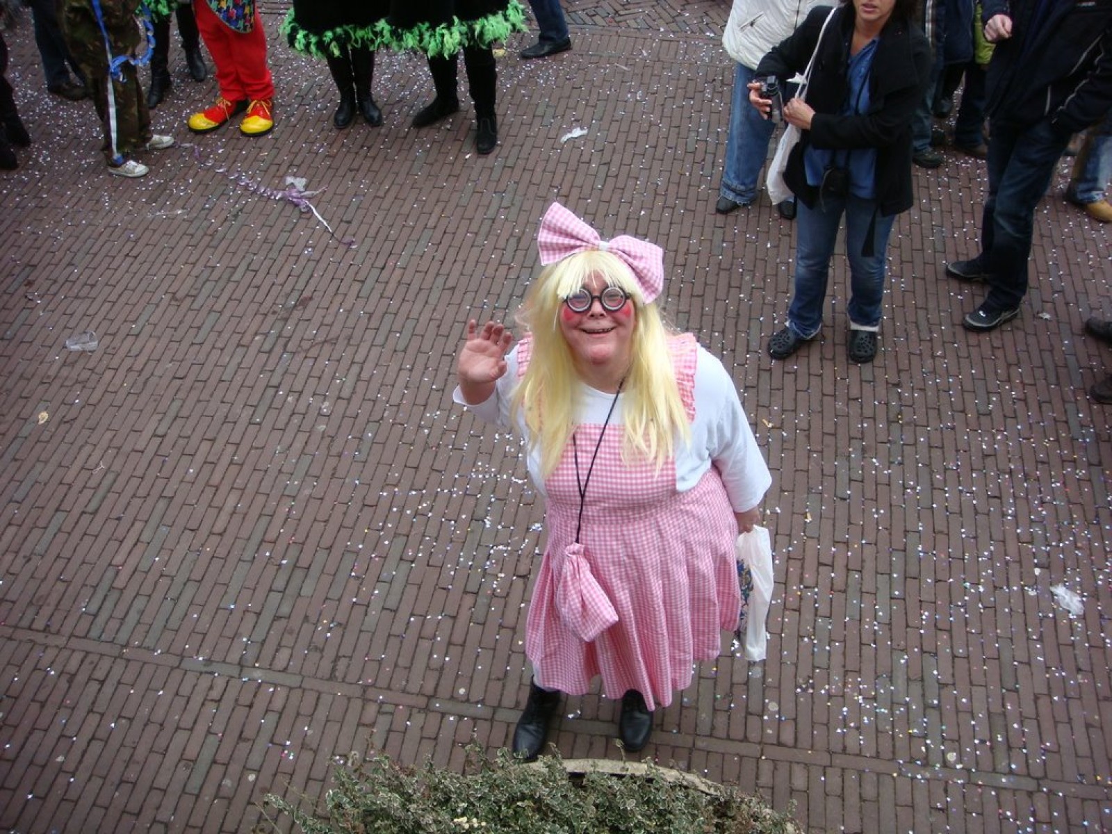 Bij binnenkomst waren er nog niet zoveel mensen. Als dat maar goed komt, dachten we nog, maar tijdens het spelen stroomde de zaal vol! Overal zagen we verkleedde mensen, die hun eerste biertje namen op de carnaval. Het publiek stond wel een beetje verder van het podium af dan de vorige keer, maar na een paar nummertjes spelen, hadden we elkaar toch gevonden. Zo hebben we samen met het publiek het interactieve repertoire tot een succes gemaakt. Tijdens Vlieg met me mee naar de regenboog werd flink mee gevlogen, een paar stoelen gingen de lucht in bij Schatje mag ik je foto en de wave werd (na uitleg van Tijn) weer ingezet van vooruit de zaal tot achterin bij de bar.