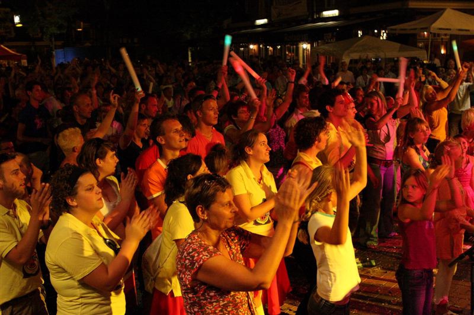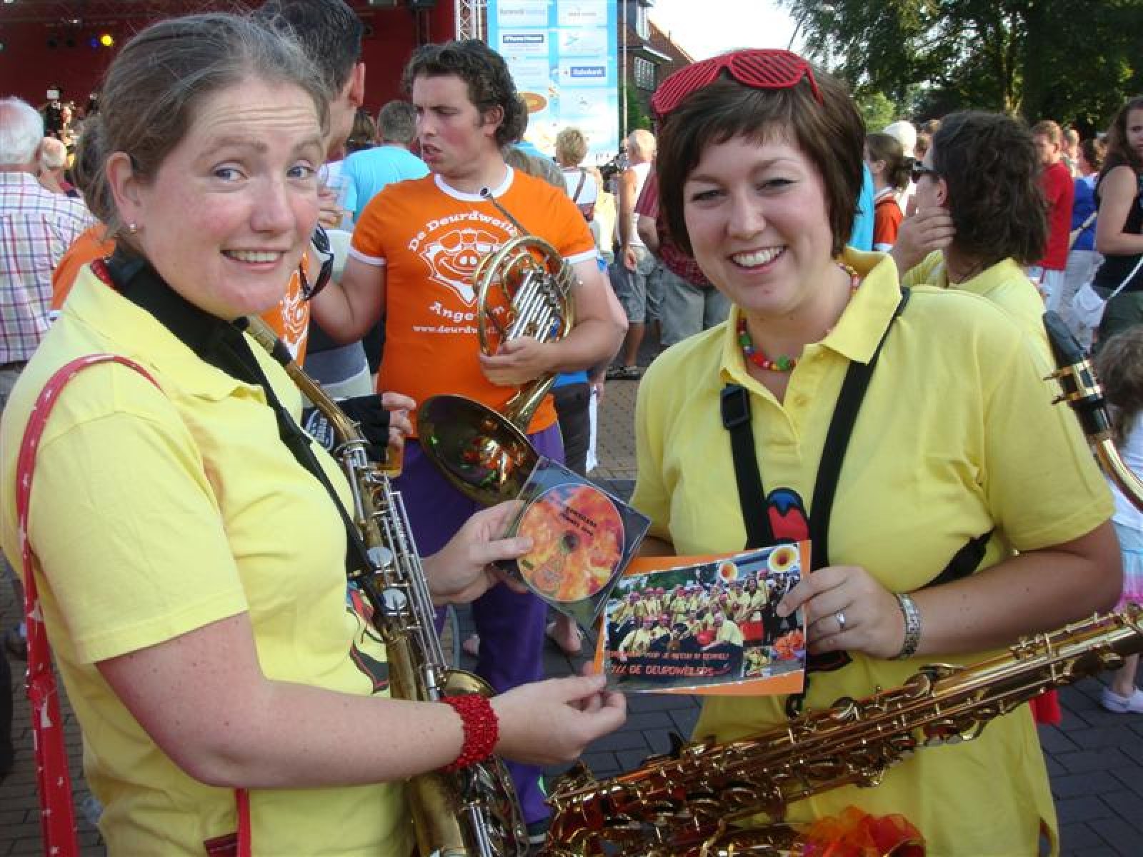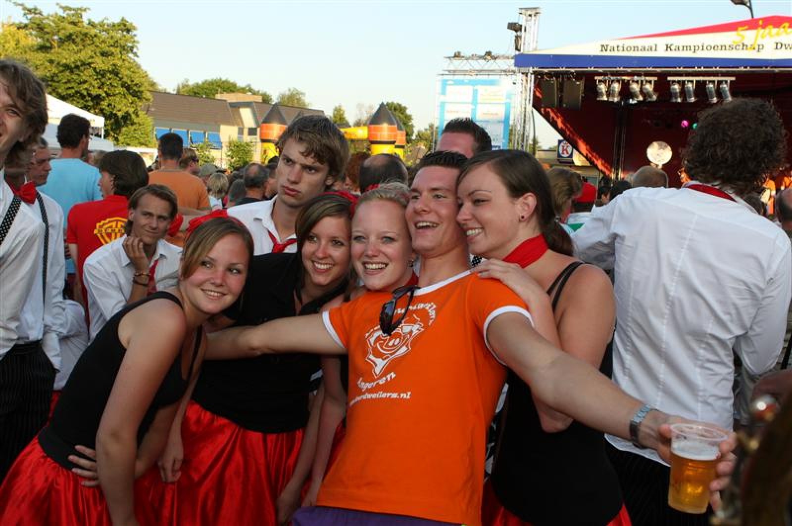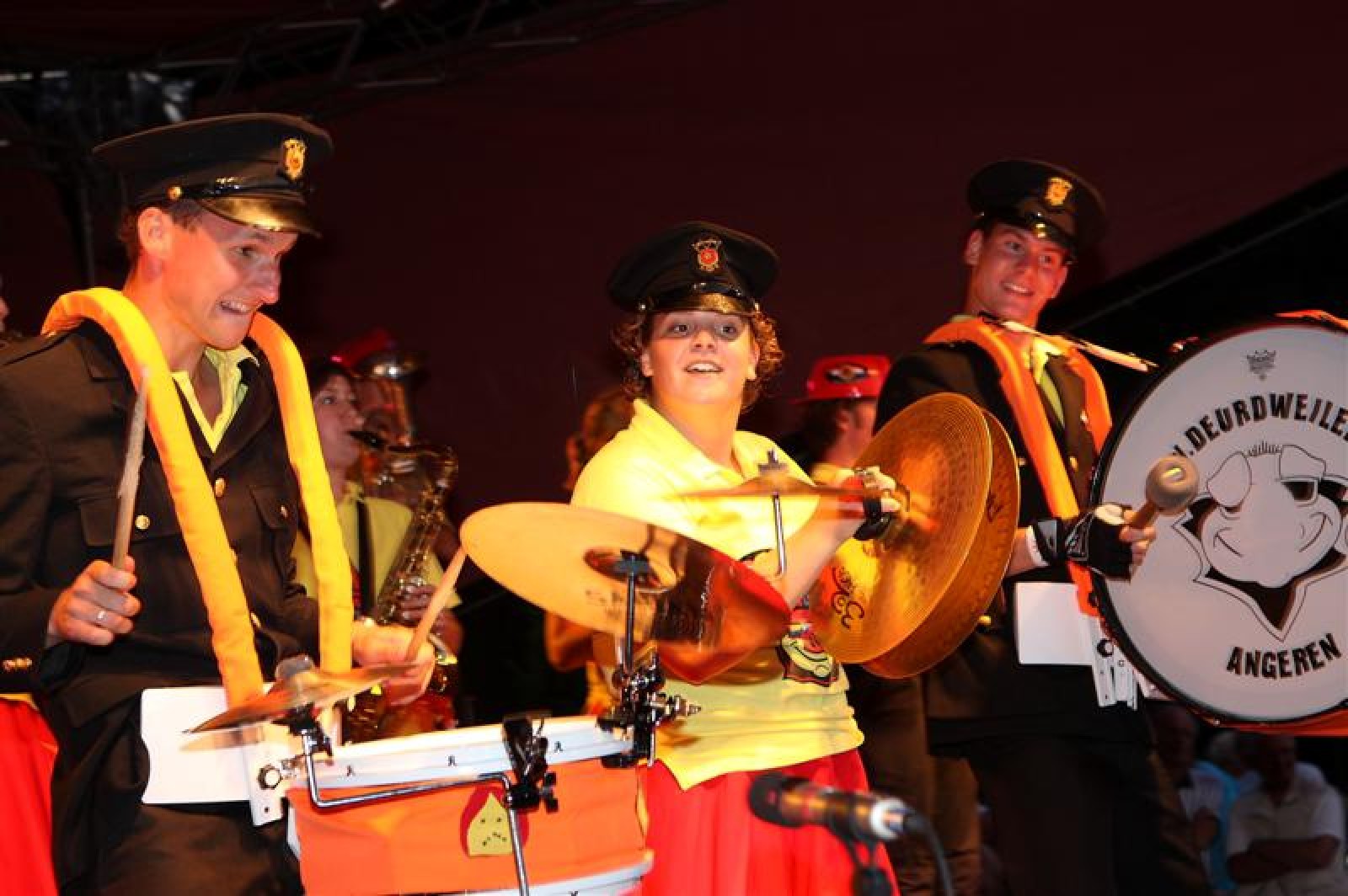 En een leuke avond is het geworden! Acht dweilbands waren vanavond naar Voorthuizen gekomen om te strijden om het Nationaal Kampioenschap Dweilorkesten. Dweilorkest de Deurdweilers uit Angeren mocht als derde orkest het podium op om het publiek te vermaken. Even na 19 uur was dit nog een handje vol mensen. Om 22 uur, bij ons tweede optreden stond het hele plein weer vol! Vooral bij het tweede optreden was er veel publiek dat enthousiast met ons meezwaaide en meezong! Ondanks de wat mindere bezetting, hebben we een mooie show neergezet!