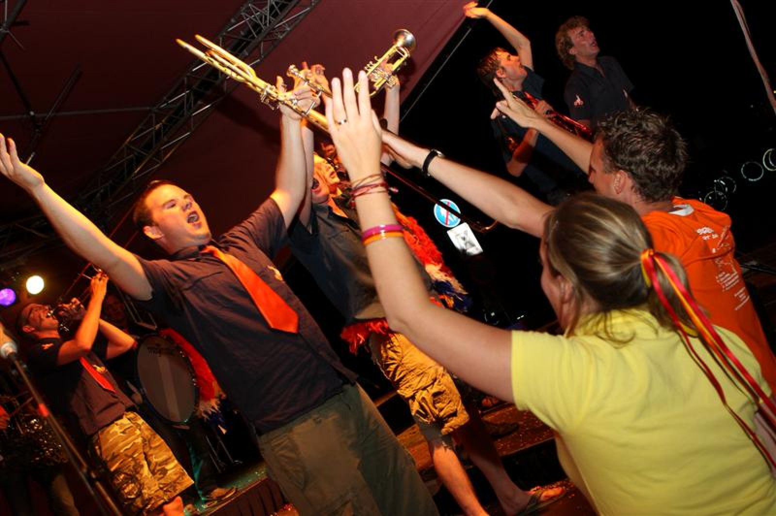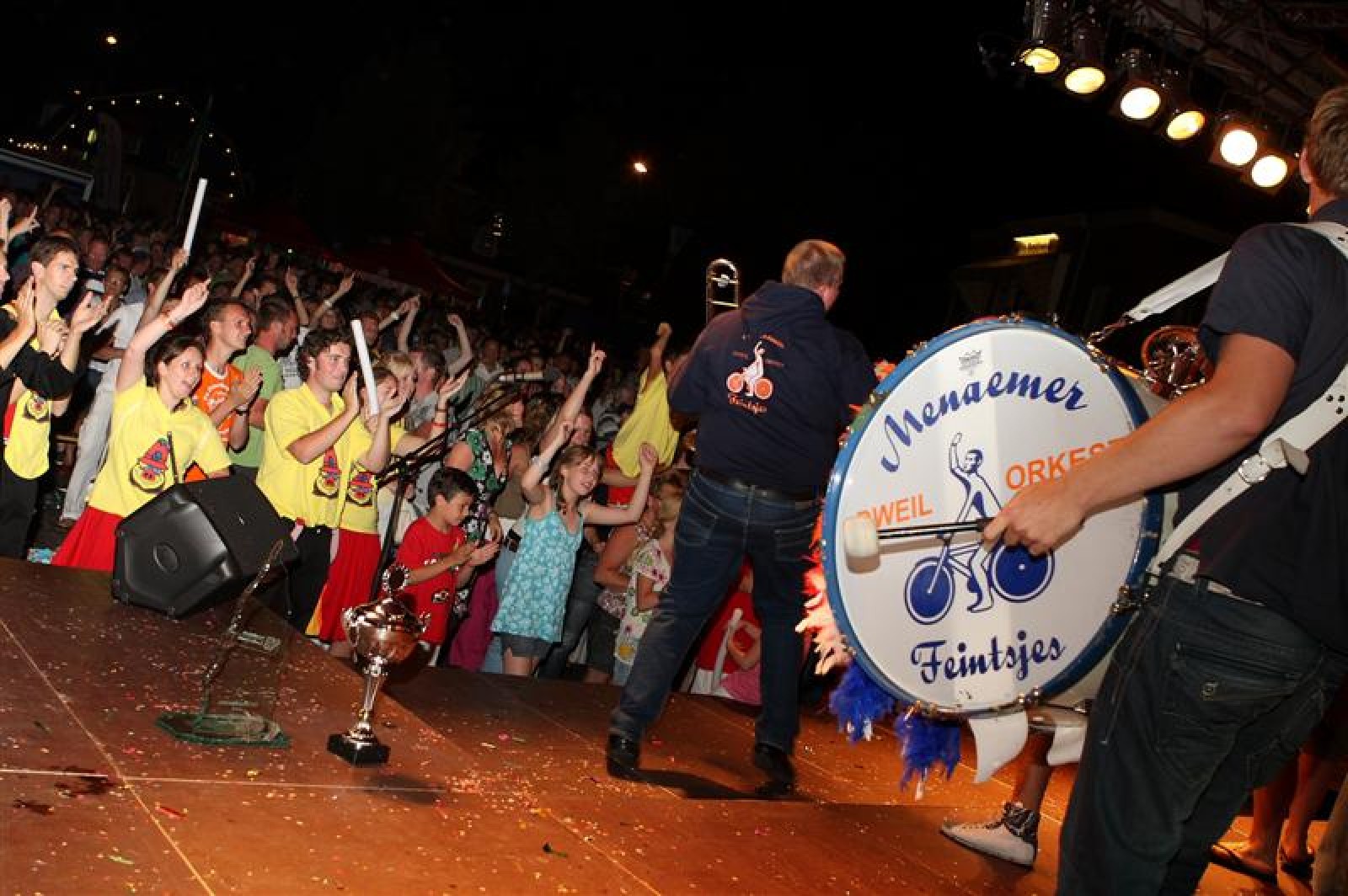 Na ons volgden dus nog vijf orkesten, dus gingen we nog niet naar huis, nee nog langer niet, haha. Wel vroegen we ons de hele tijd af wie er nou een berichtje op Twitter ging zetten, nu Tom op vakantie is. De rest van de avond hebben we lekker staan feesten. Vooral bij de Menaemer Feintsjes, die weer een perfecte Army-show neerzetten, en in hun tweede optreden volledig uit hun dak gingen met hun feestrepertoire. Ze werden verdiend 1e! Dweilorkest de Deurdweilers eindigde vanavond op de 7e plaats. Erg jammer, want je hoopt toch altijd op meer, maar voor vanavond een terechte plek.