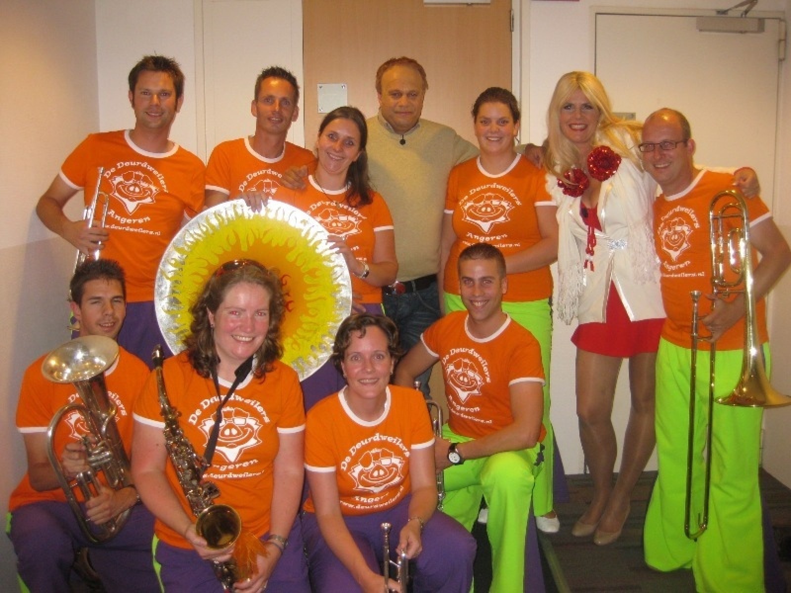 Tijdens het wachten hebben we even ingeblazen. Of we ook ‘worstjes op mijn borstjes’ kunnen spelen, want Ria Valk komt zo ook nog? We kijken even bedenkelijk, maar 10 minuten later (en een paar zoekacties via de telefoon) kunnen we het refreintje spelen. Een uurtje later gaan we dan echt naar de studio en gaat het feest beginnen. Het gaat er strak aan toe en na 3 keer staat de scene er toch erg leuk op.