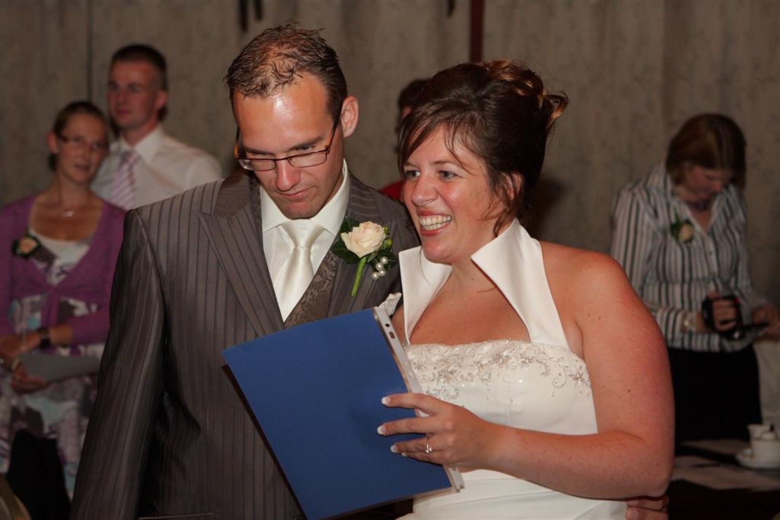 Voor de receptie heeft iedereen weer zijn mooiste outfit aangedaan, wat zien die deurdweilermannen er toch weer strak uit in pak!